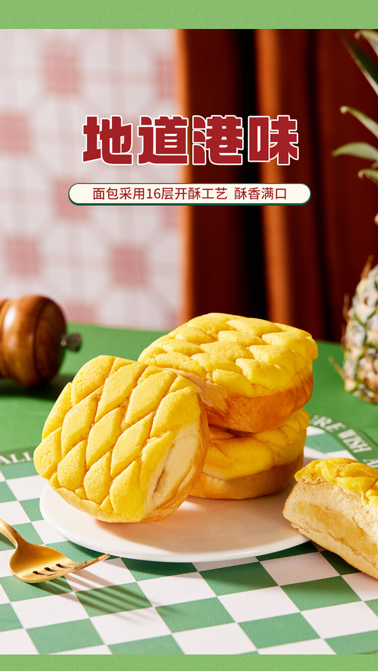 盼盼 菠萝包 早餐手撕面包休闲零食港式风味夹心小吃 1020g/箱