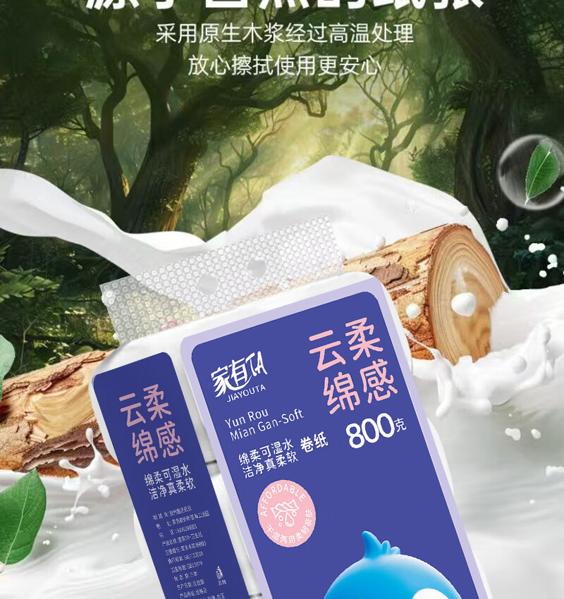 【官方直降】家有TA 无芯卷纸【8卷/提】卫生纸厕纸卷筒纸 4层 100g/卷*8卷 1提约1.6斤
