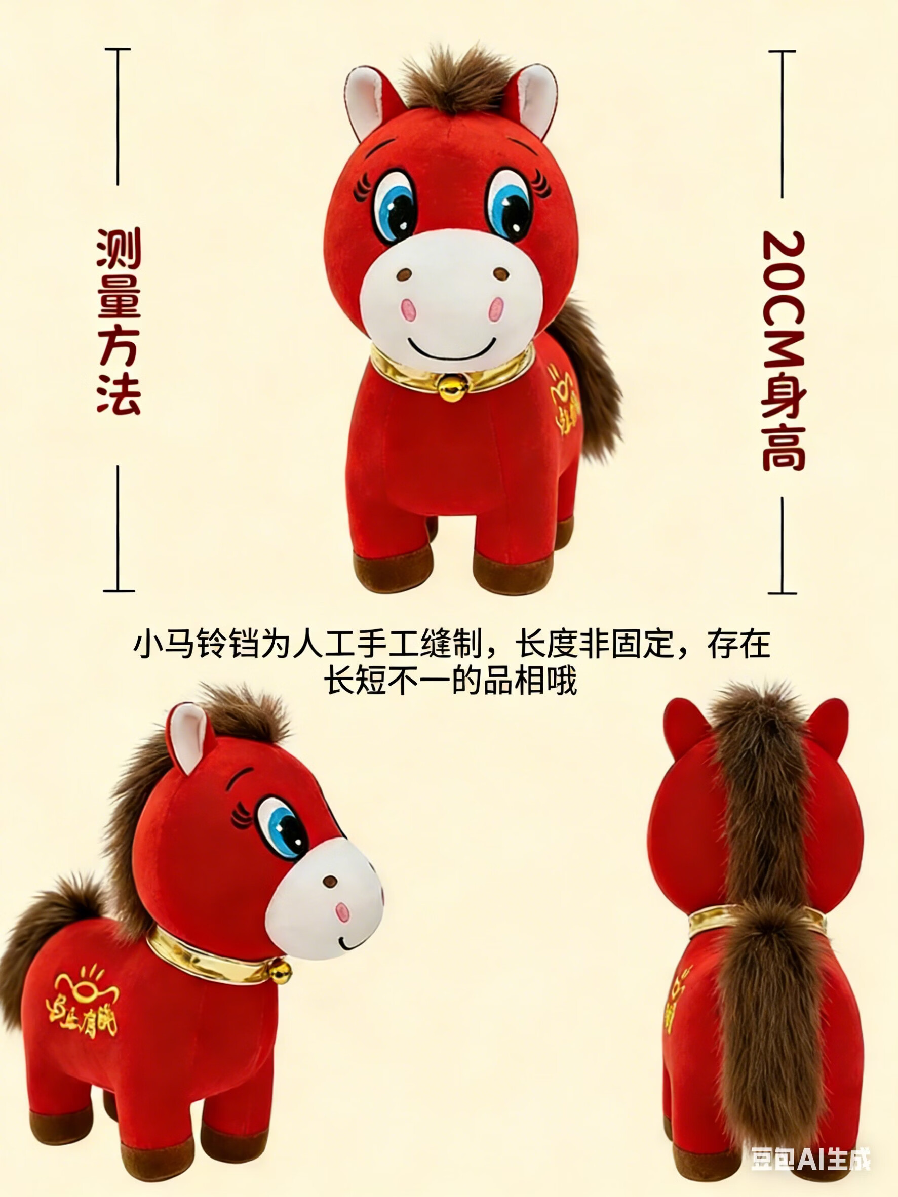 【哭哭马+开心马】公仔2026年马年文创摆件新年礼物毛绒玩具抱枕 笑笑马【下班马】2026玩具公仔1只 20cm-25cm