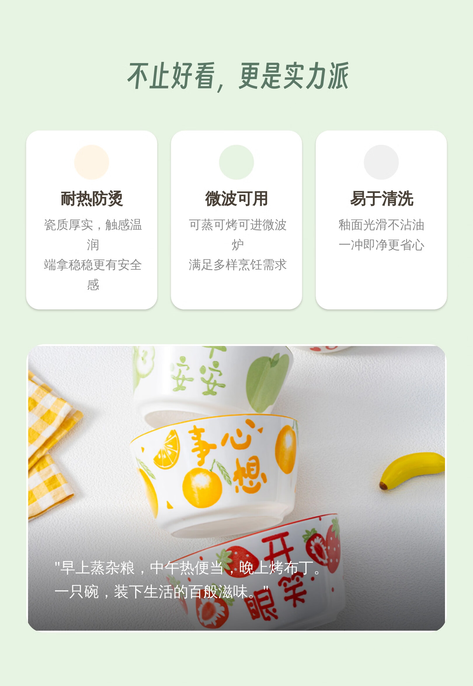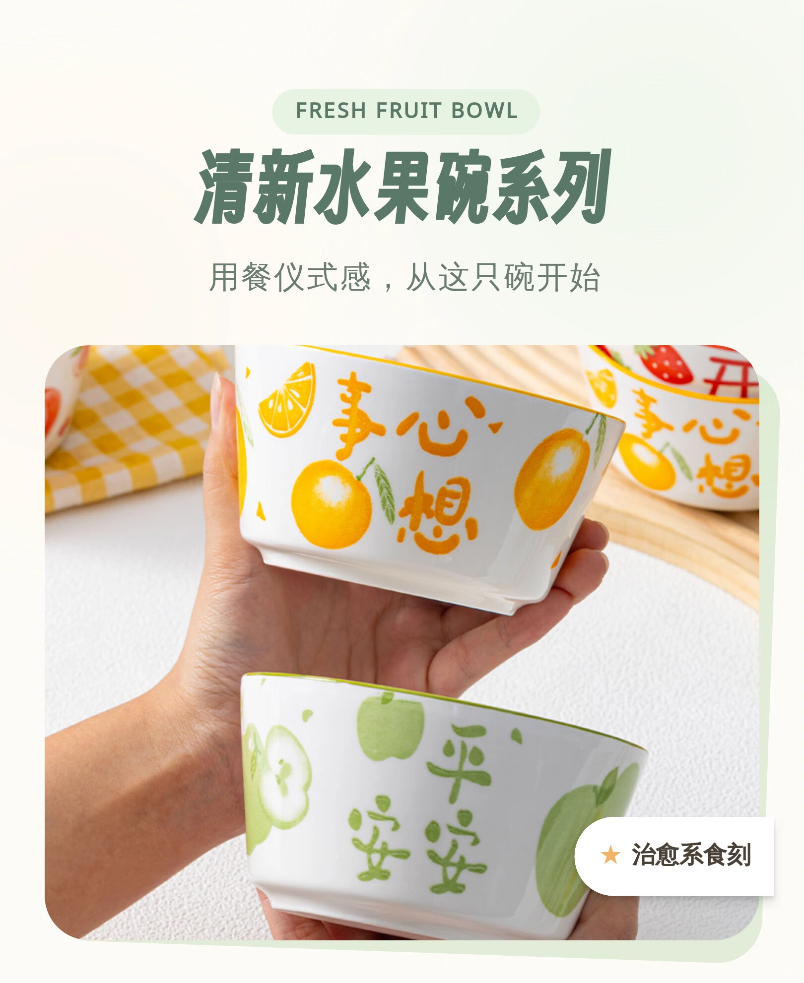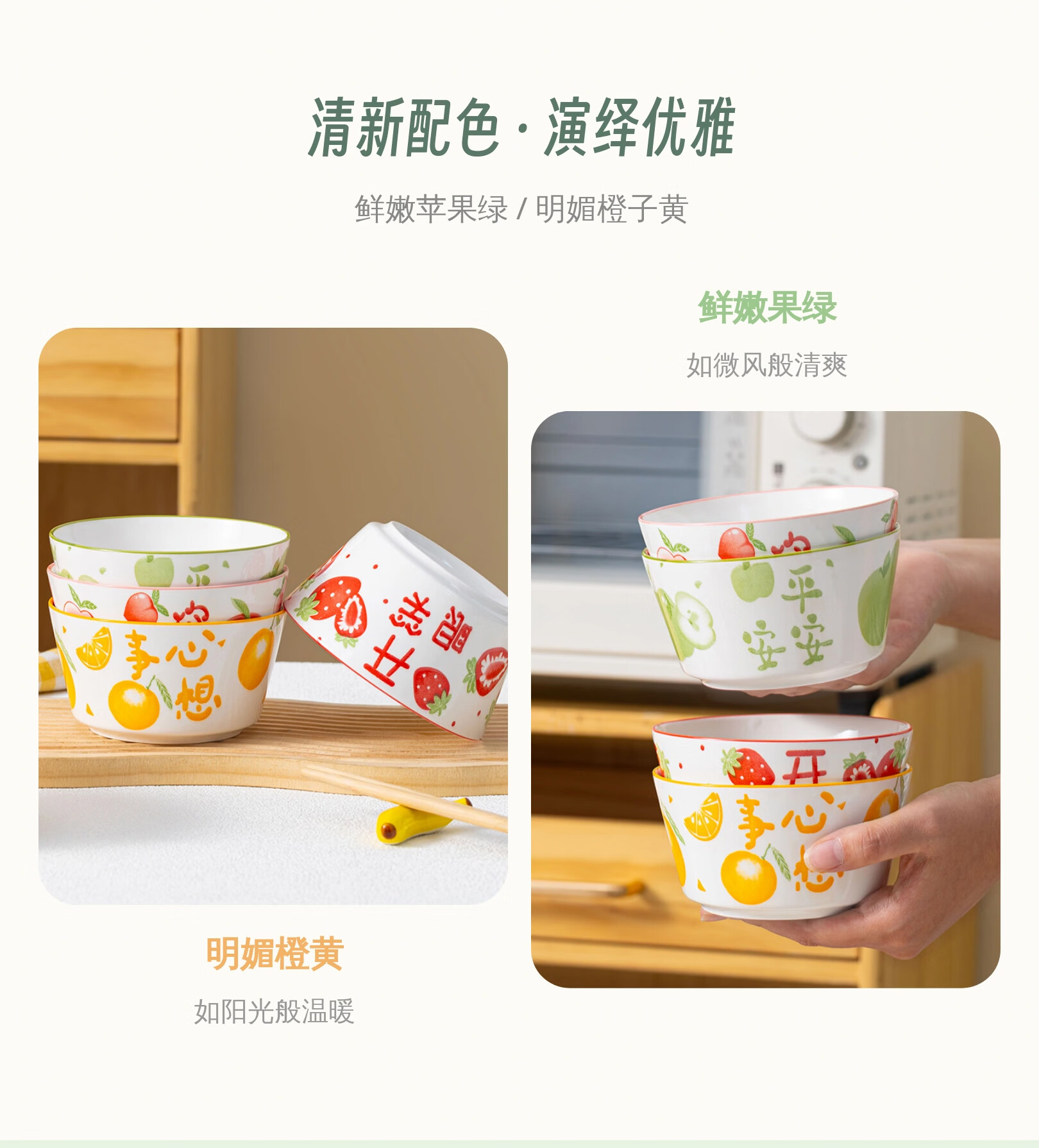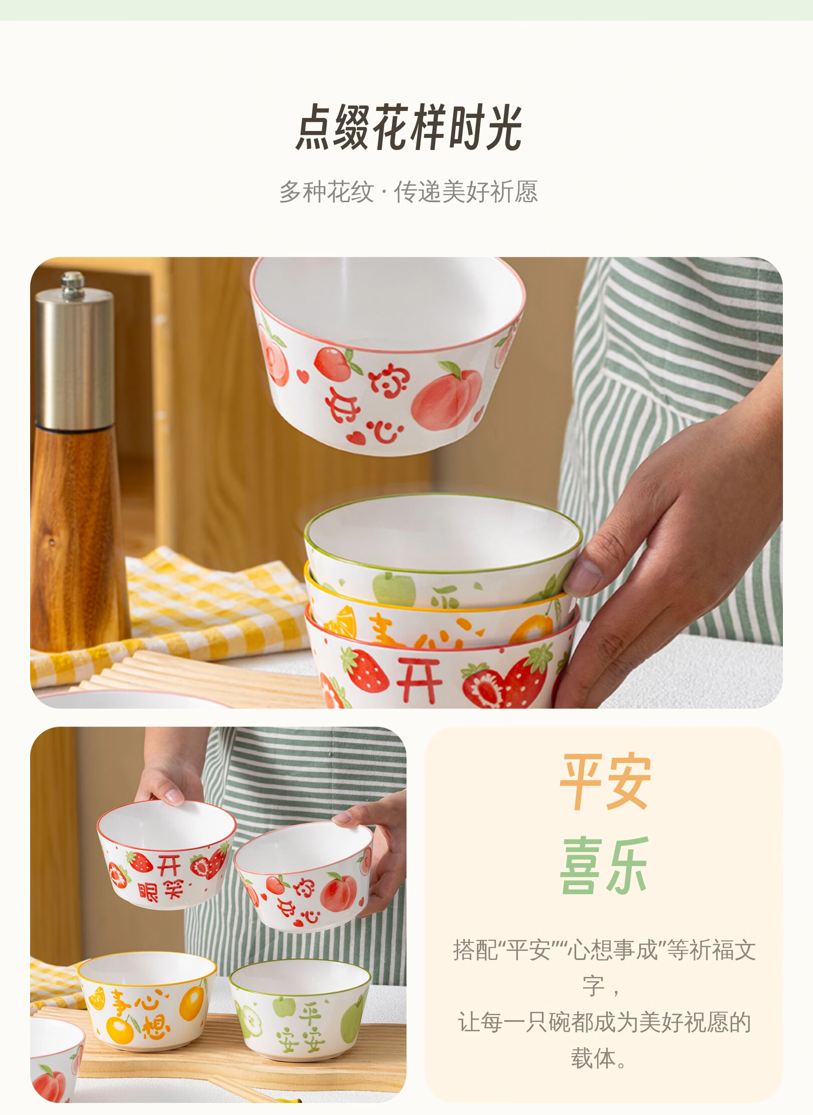 陶瓷新款可爱釉下彩高颜值ins风饭碗陶瓷餐具家用陶瓷饭碗 4.5英寸清新水果碗4只装【花色随机】