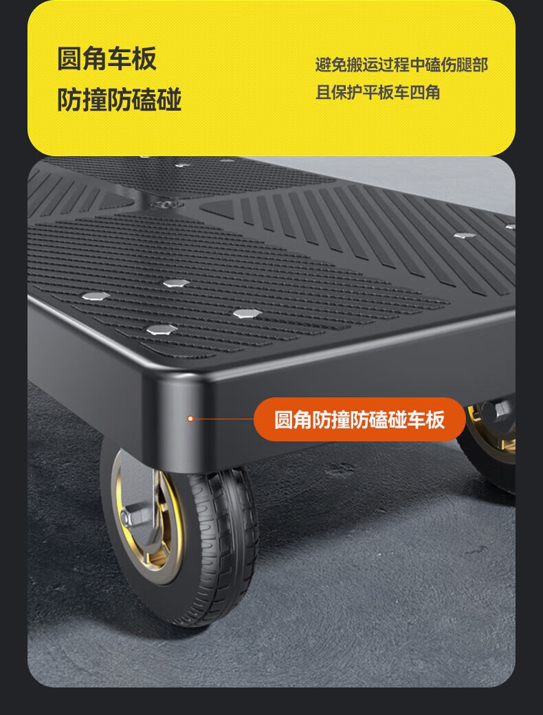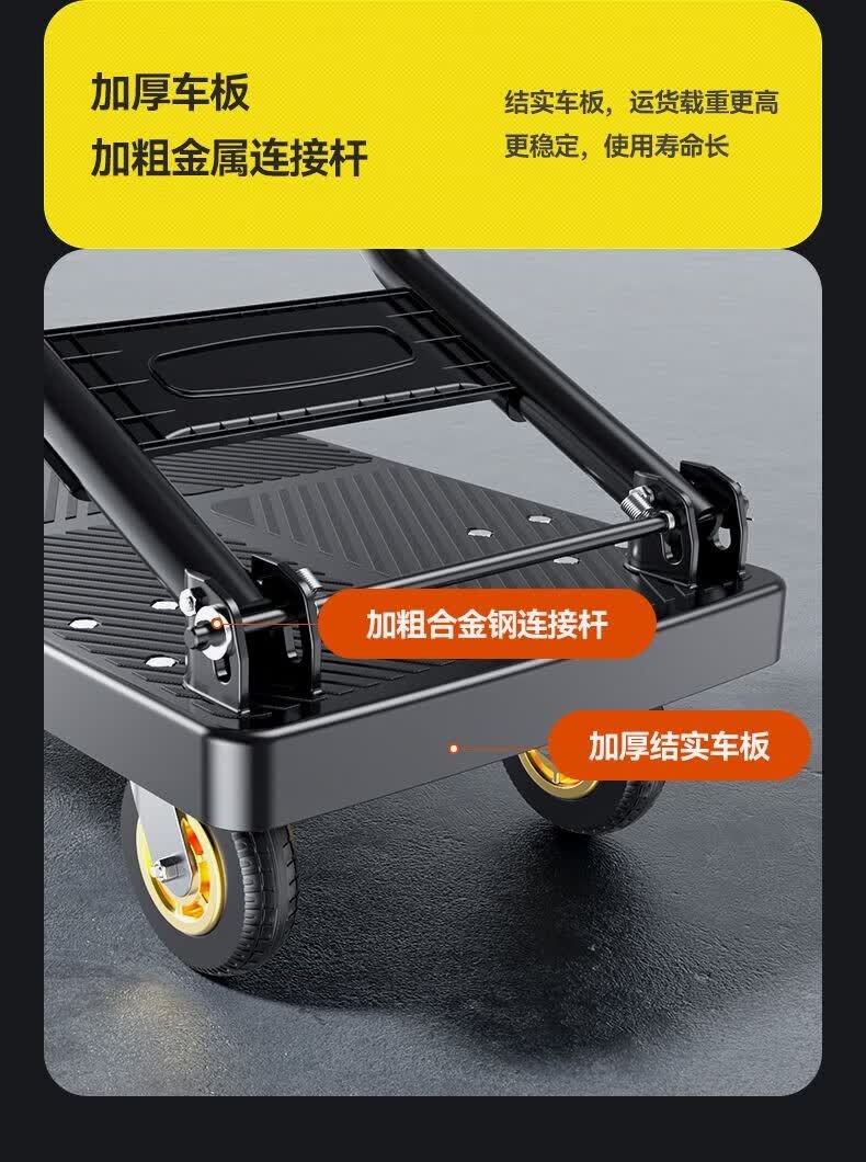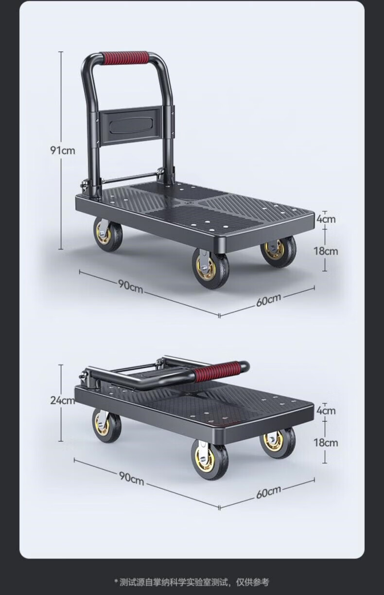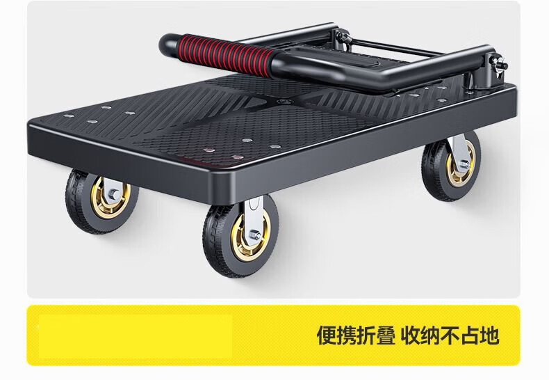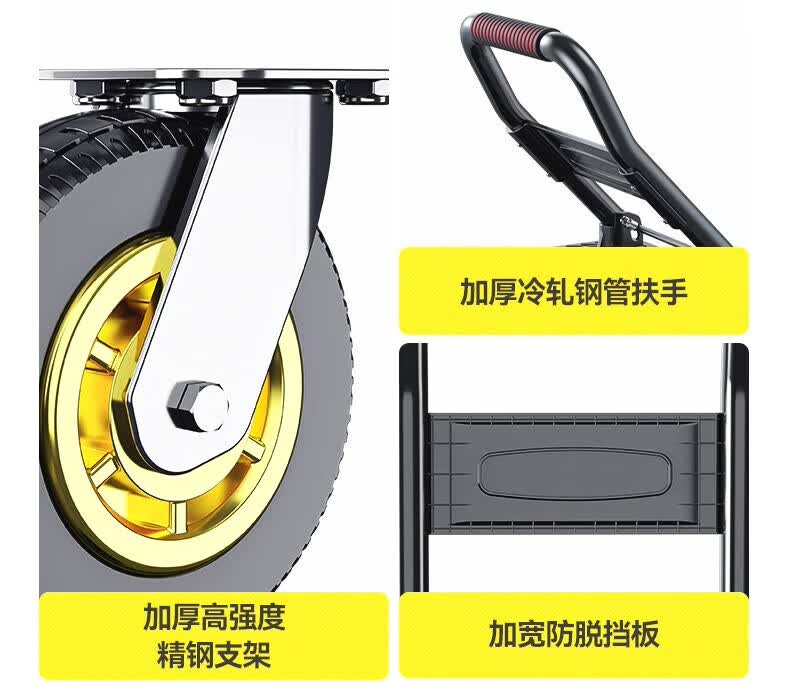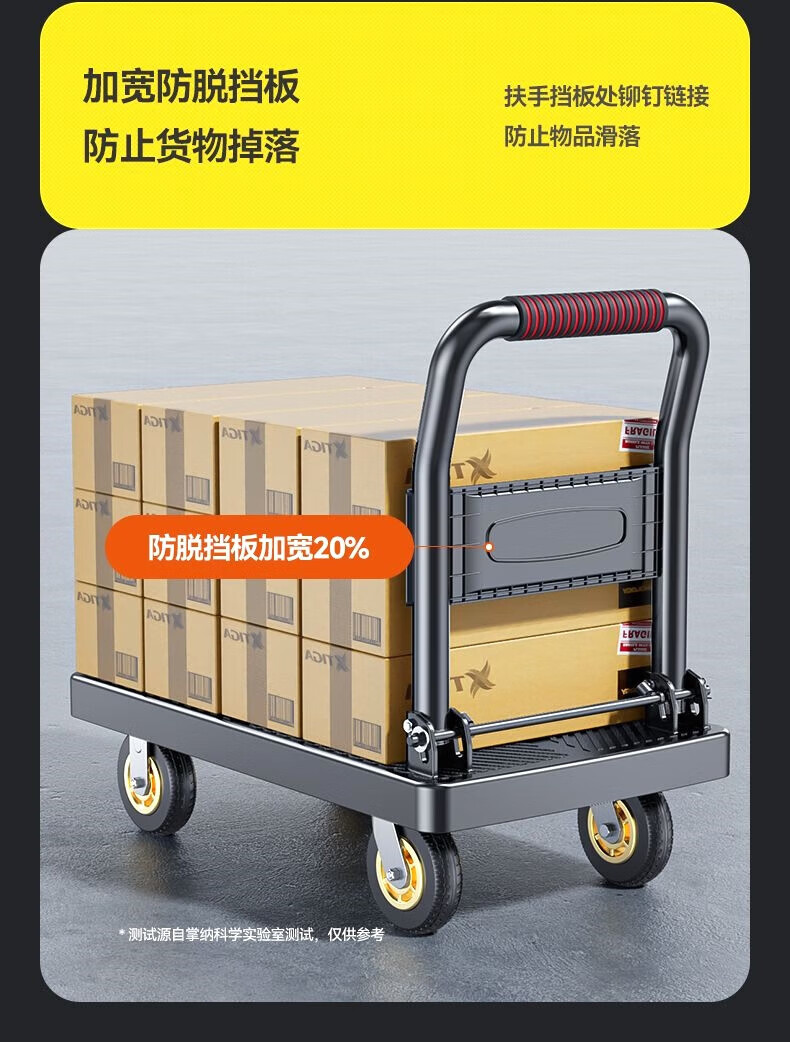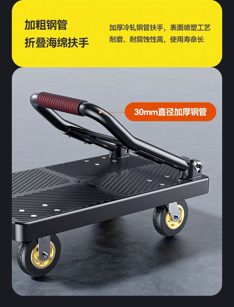 亚伦大力士小推车拉货拖车折叠轻便携手拉车搬运平板车家用取快递手推车神器 特厚钢梁【72*48】双承重钢梁 5寸TPR轮