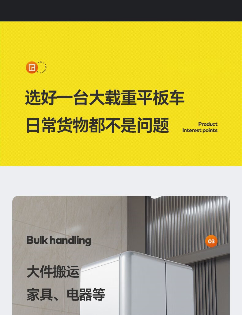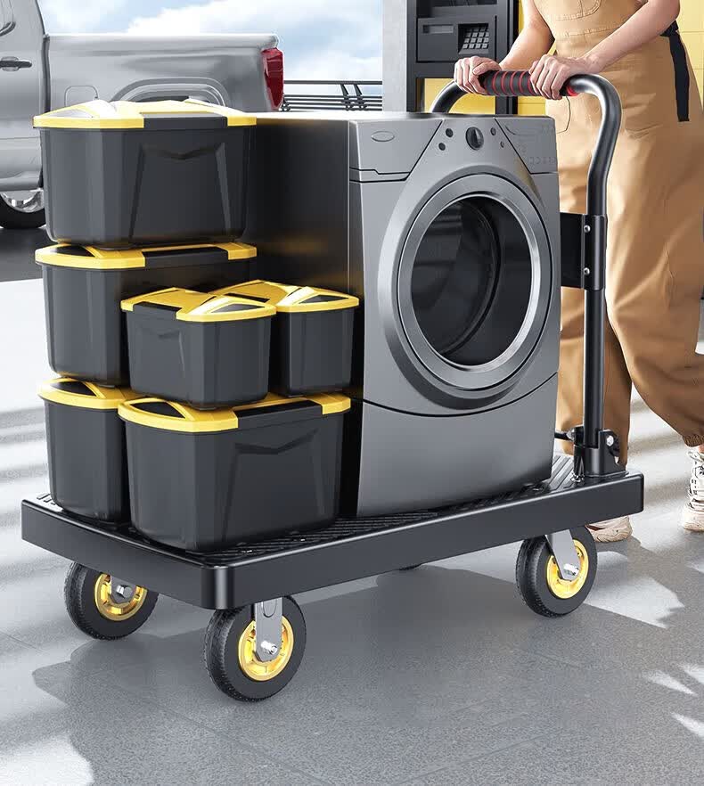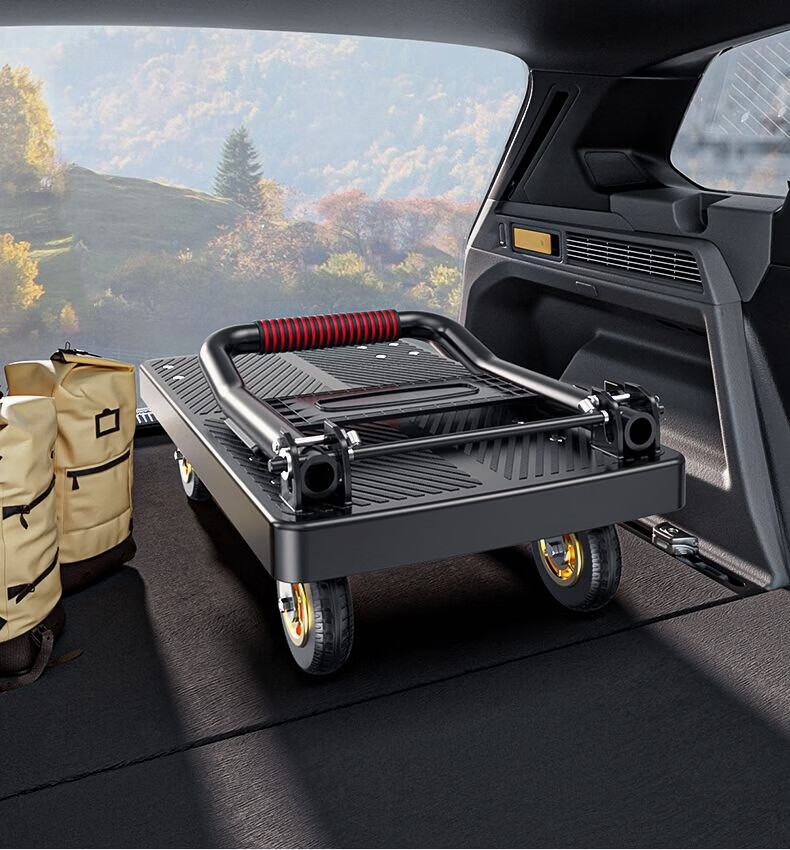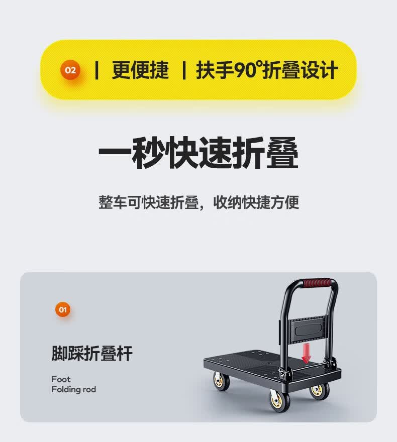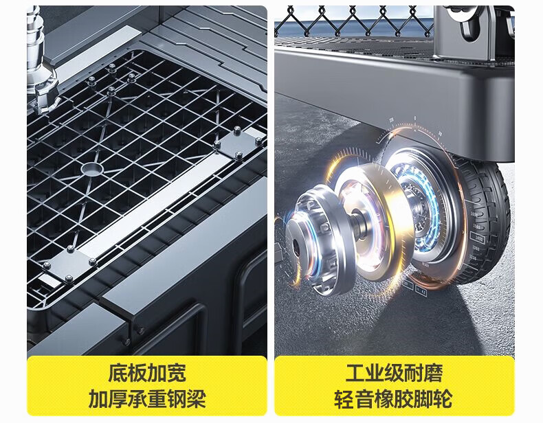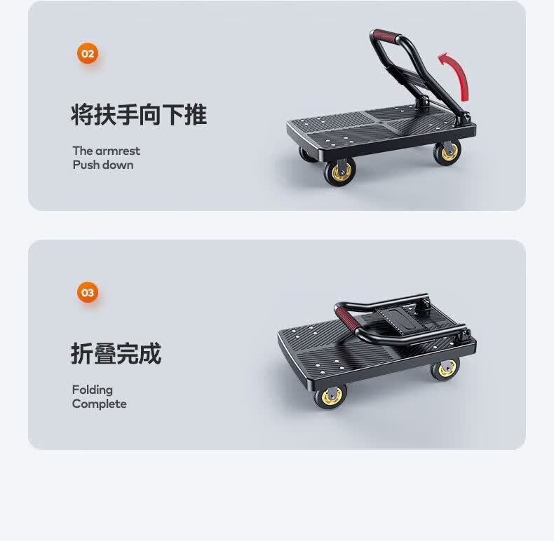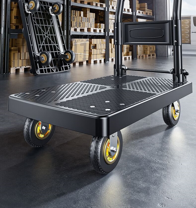 亚伦大力士小推车拉货拖车折叠轻便携手拉车搬运平板车家用取快递手推车神器 特厚钢梁【72*48】双承重钢梁 5寸TPR轮