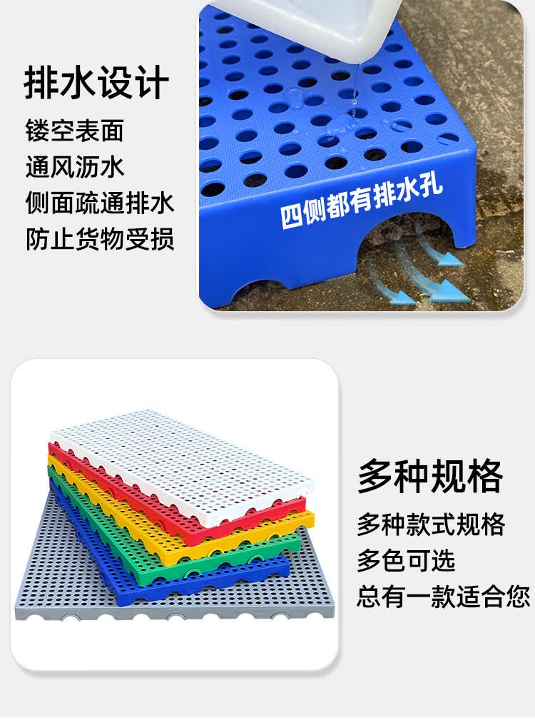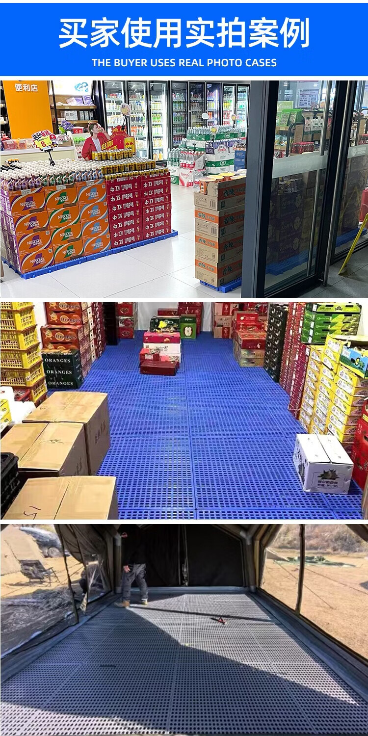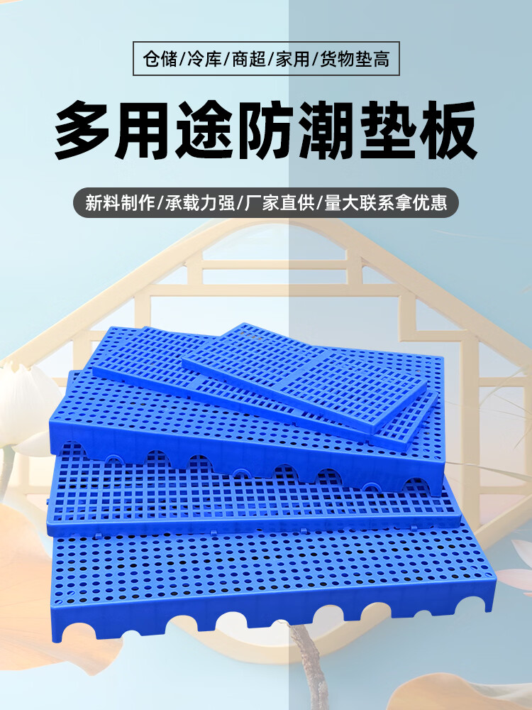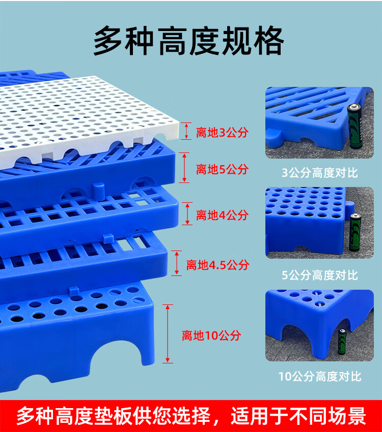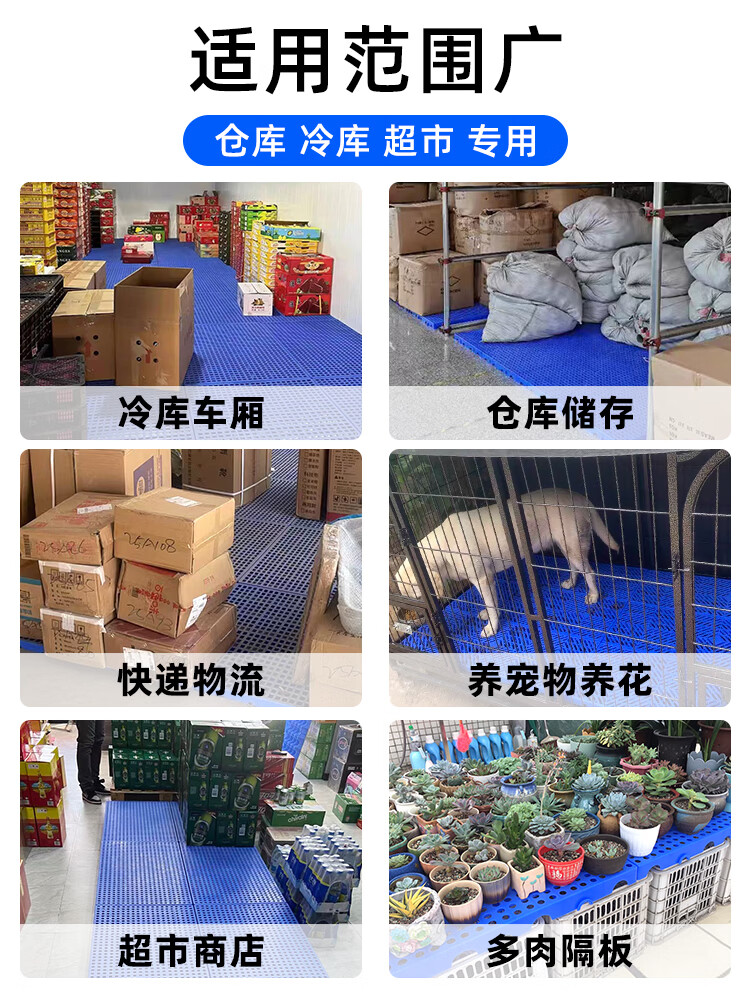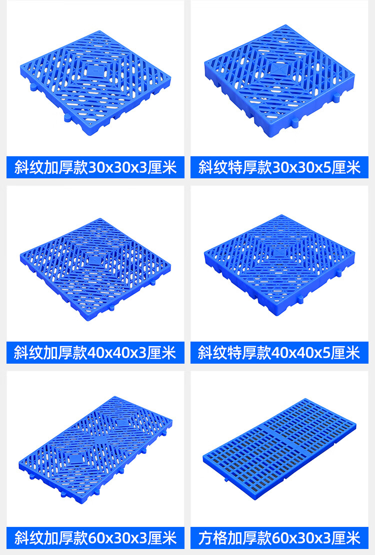 防水塑料地垫拼接防潮仓库隔板货物托盘超市物流垫板库房地垫货架 【蓝色】60*40*5cm斜纹加厚防潮板