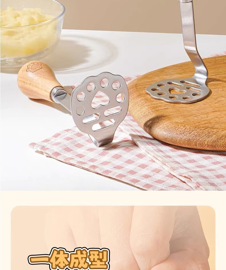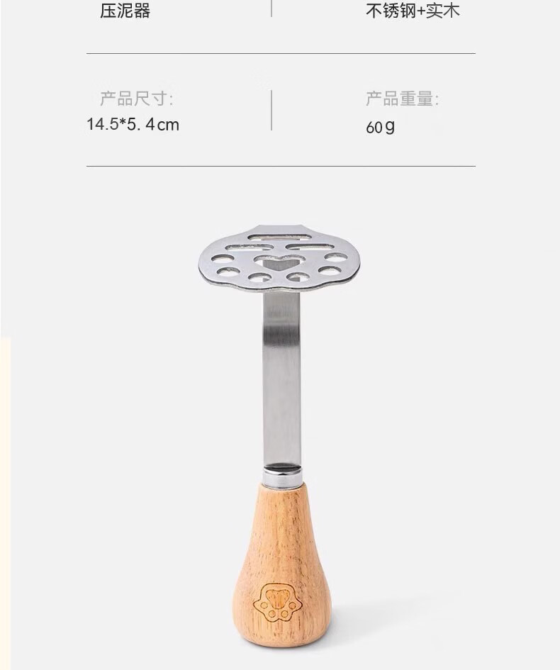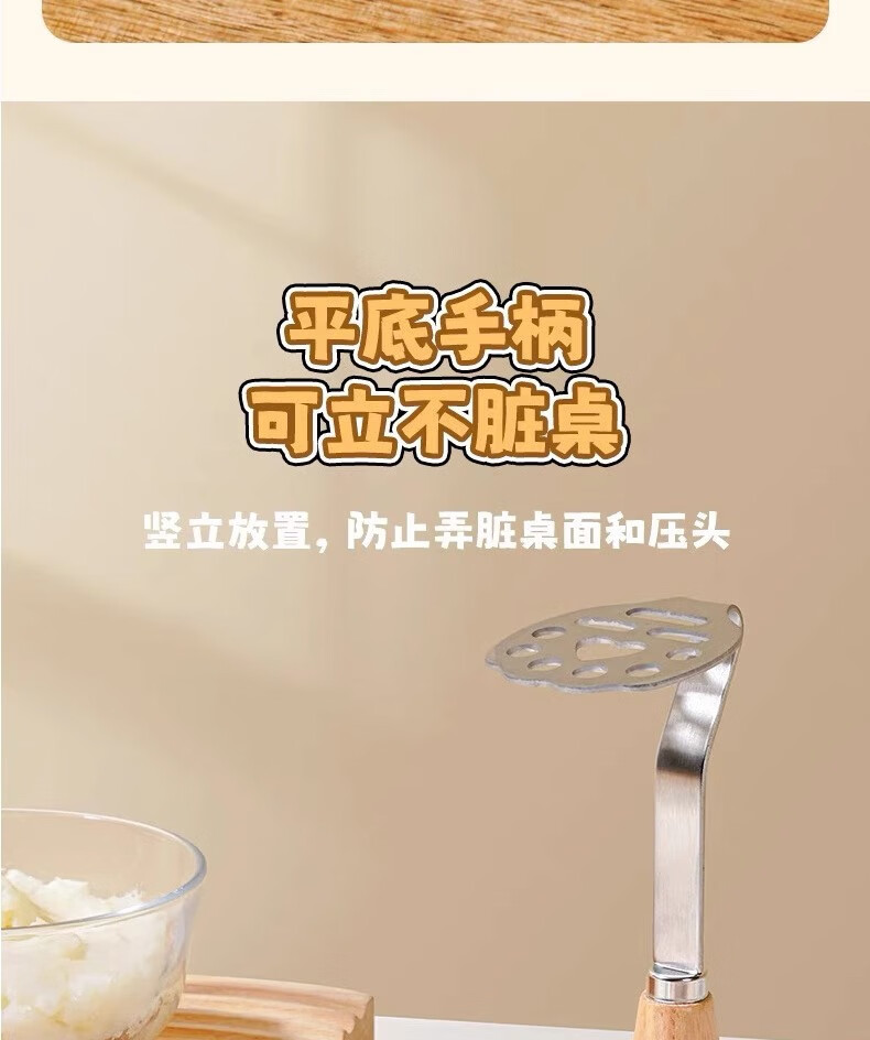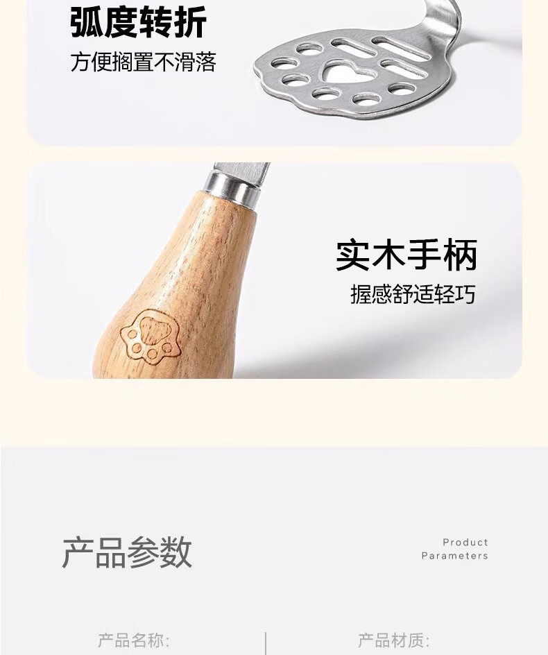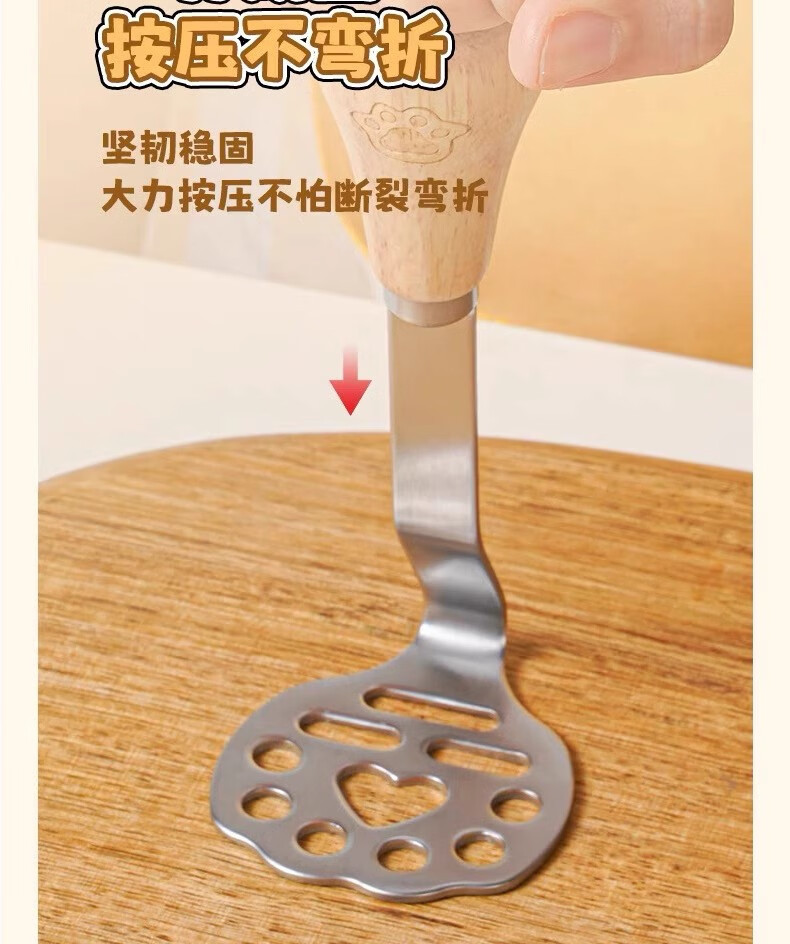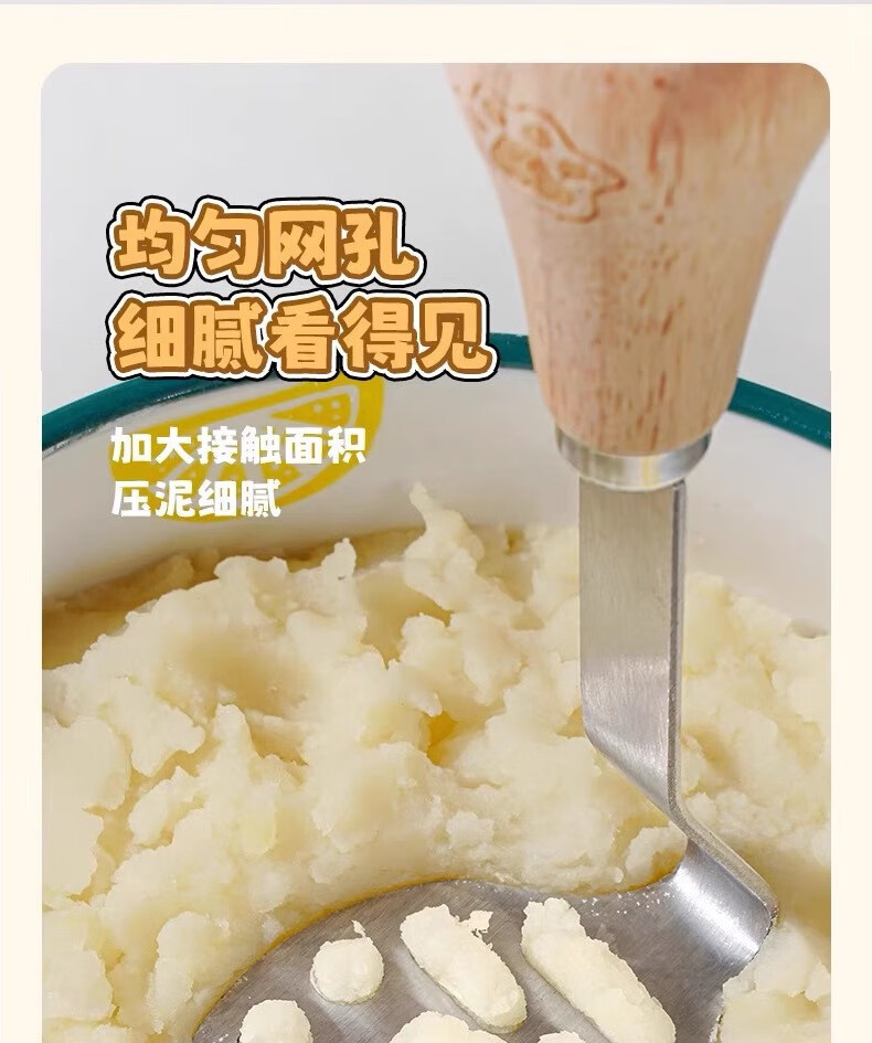 优赏小熊加厚不锈钢土豆泥压泥器儿童器芋泥薯泥厨房多功能辅食捣碎器 轻松出泥-小熊网孔-加厚款实木可立压泥器 【1个装】