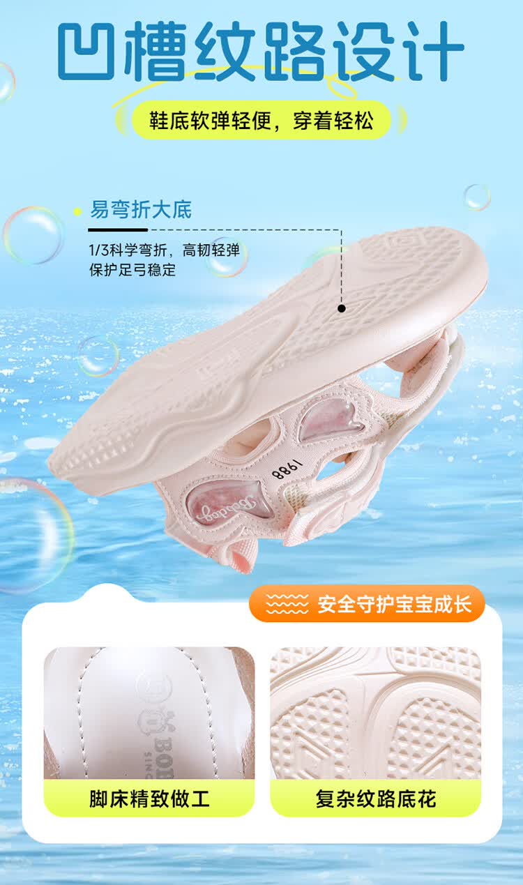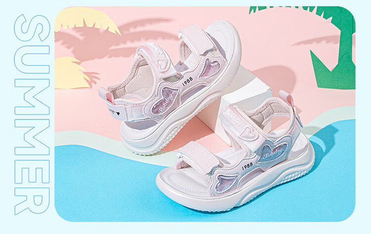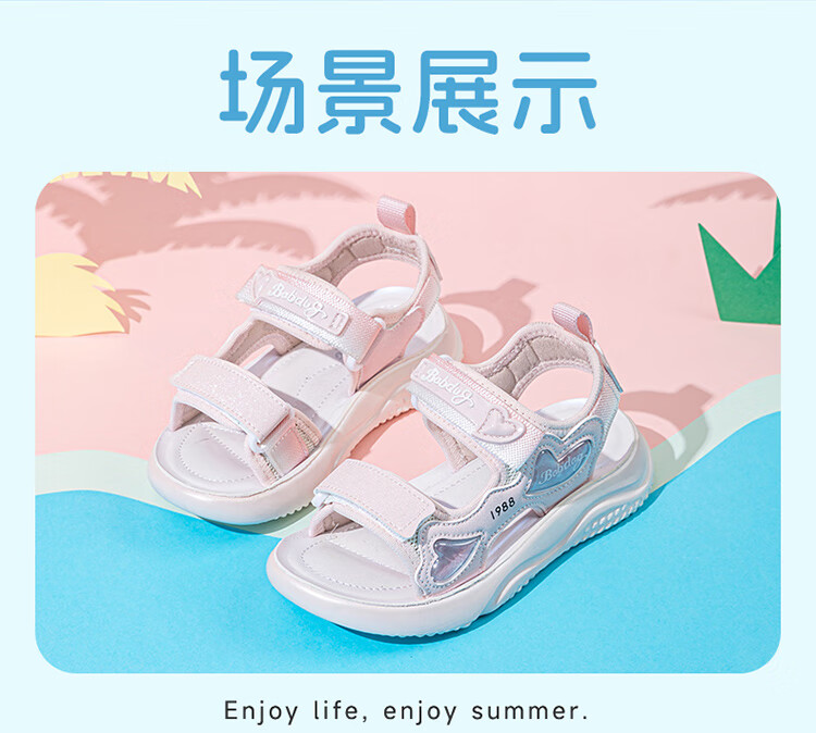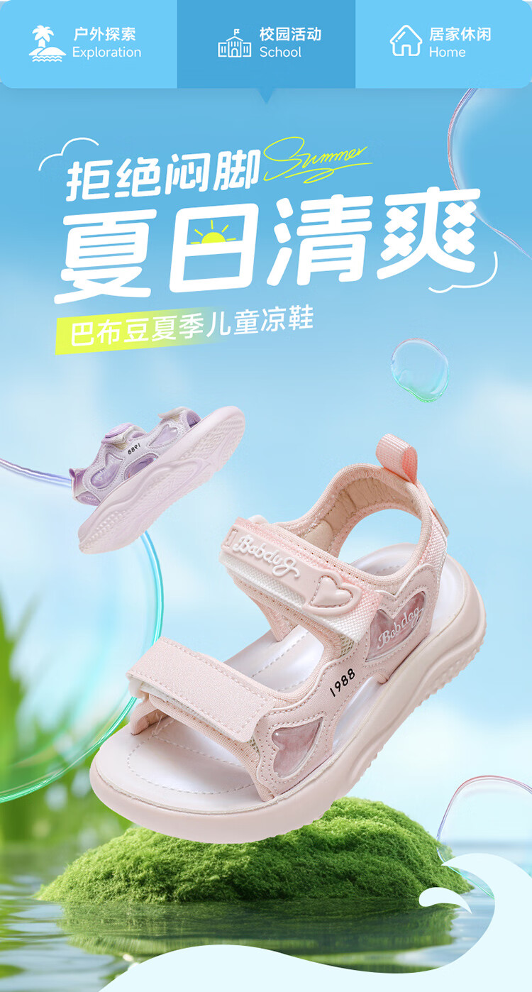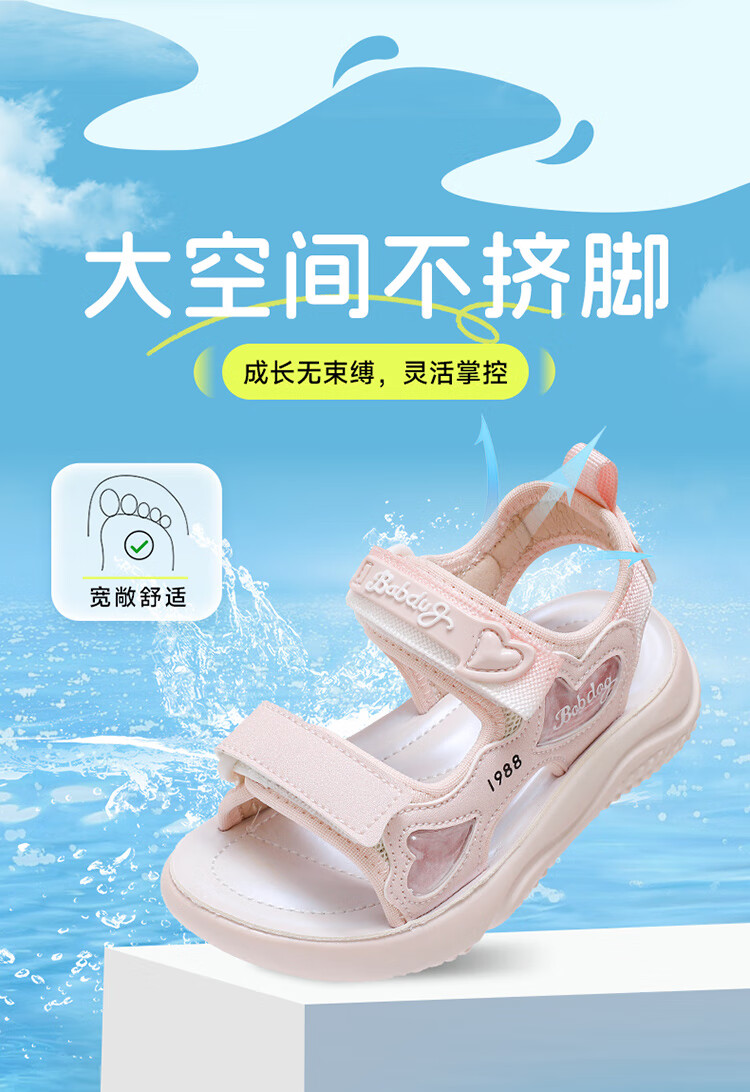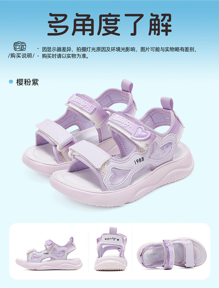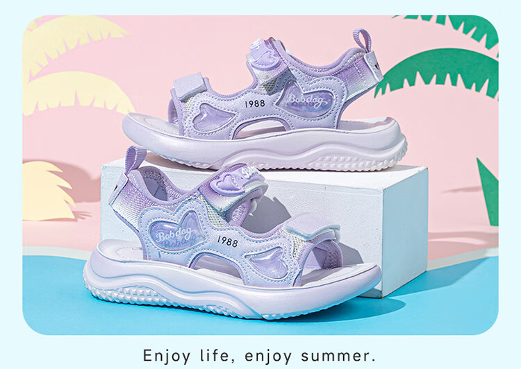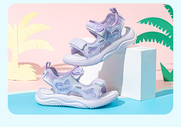 巴布豆童鞋女童2025夏季新款时尚公主鞋轻便透气儿童凉鞋软底休闲沙滩鞋 樱粉紫 30 适合脚长19.3cm