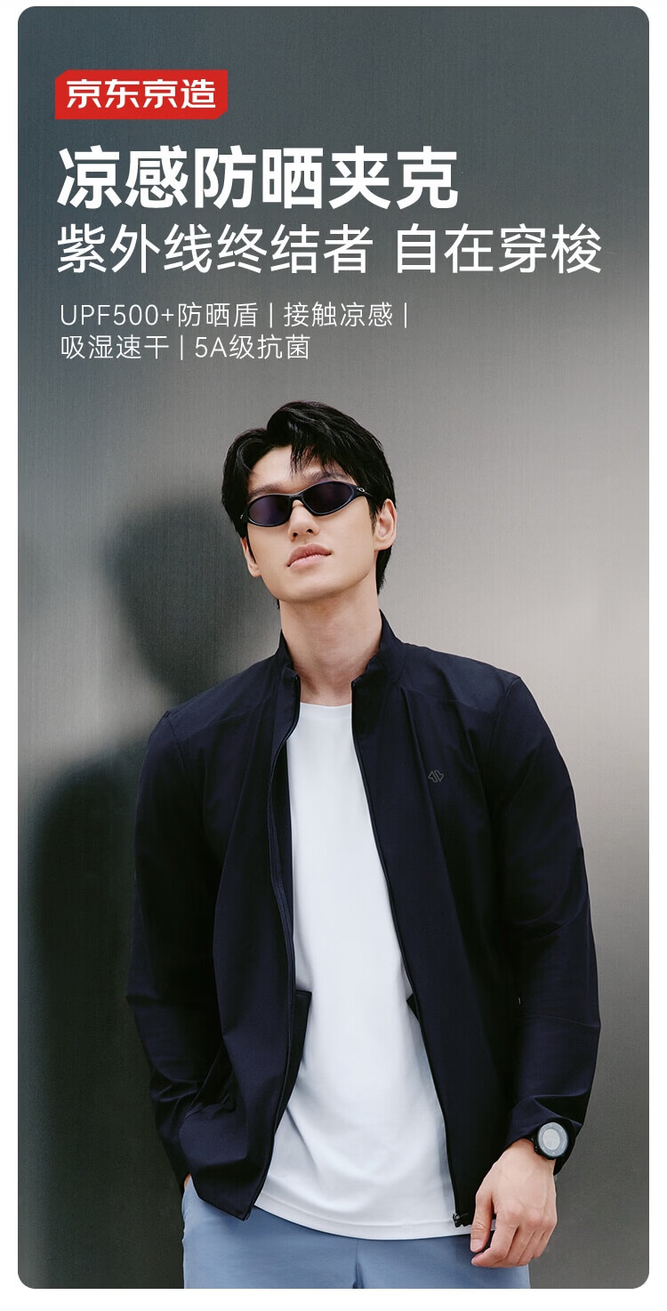 京东京造【热销10W+】防晒衣男士外套夏季防紫外线男女同款 活性黑 2XL