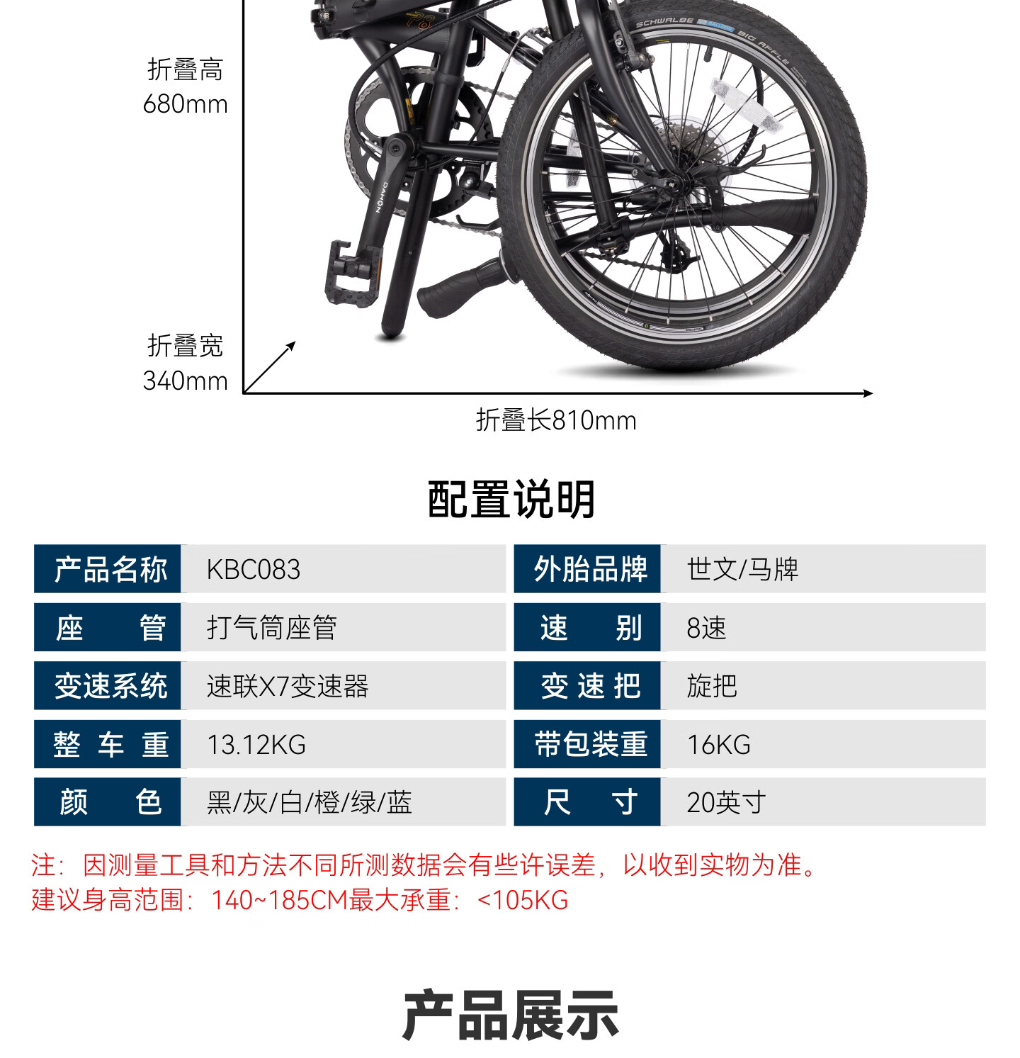 大行(DAHON)P8折叠自行车经典成人20英寸8速折叠车男女式运动单车KBC083 消光黑【经典版】