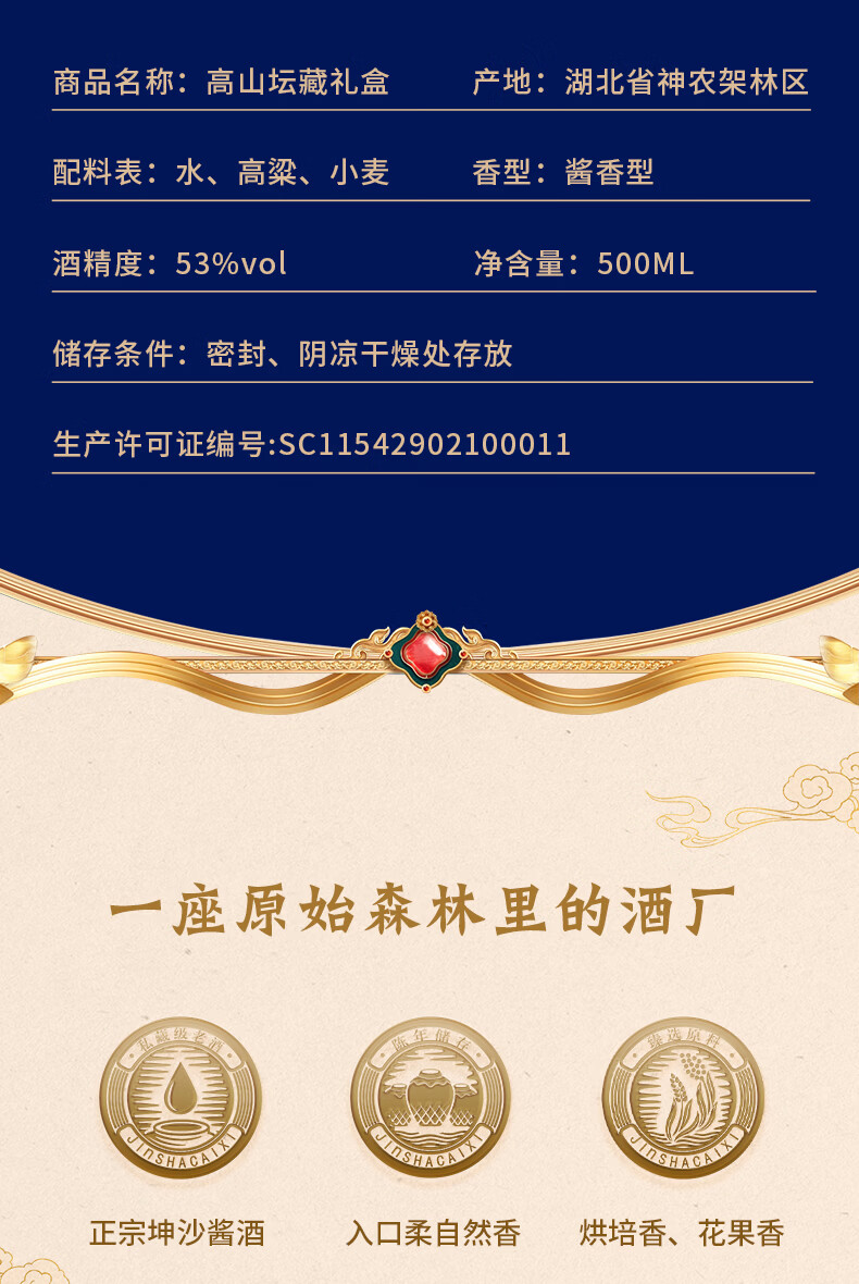 神农架酱香型白酒53度500ml高山坛藏酱酒坤沙工艺酱酒送礼整箱礼盒装 500mL 2瓶 送4套150ml生态小酒礼盒装