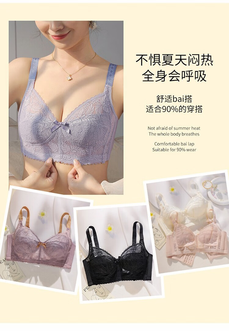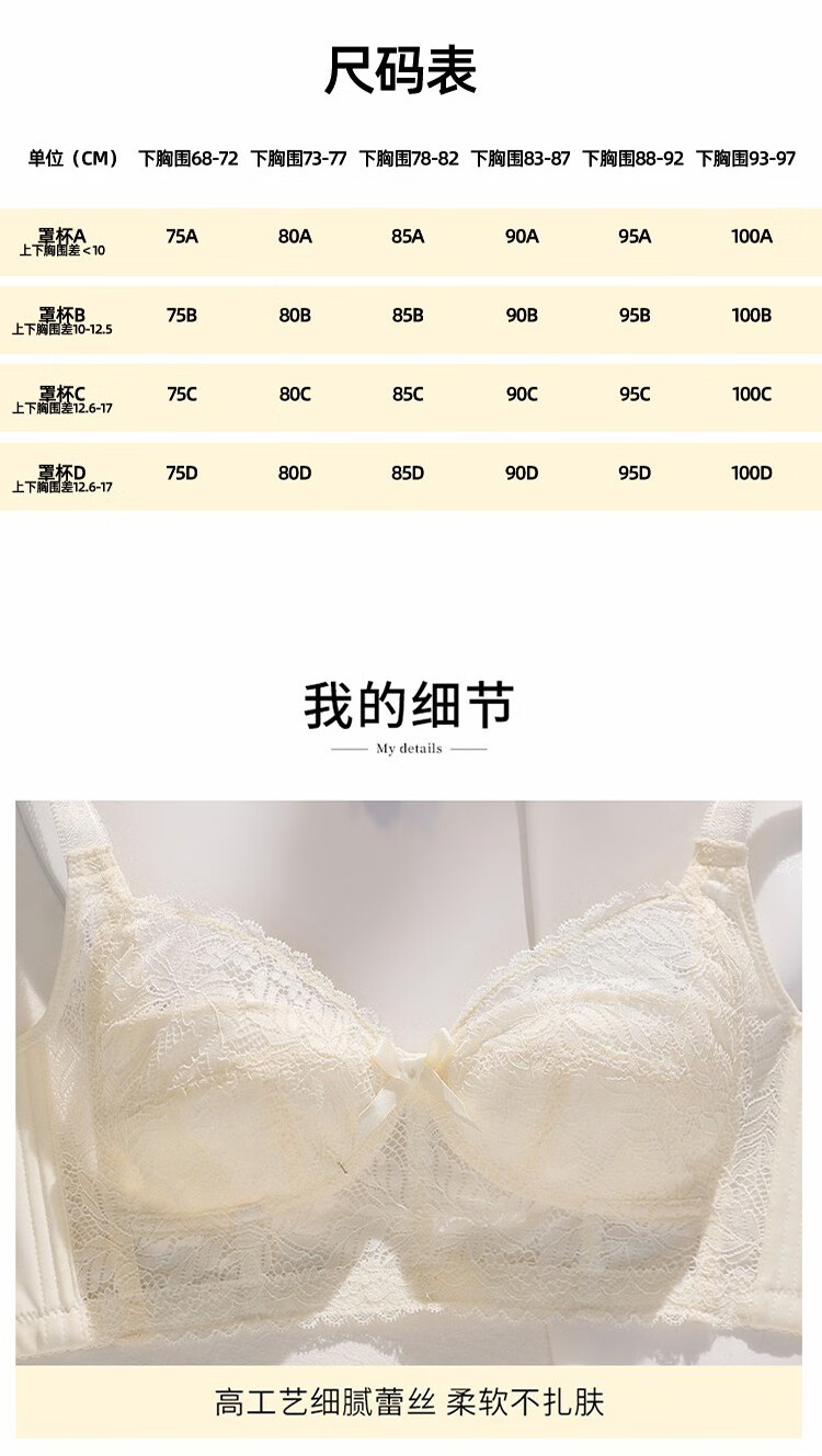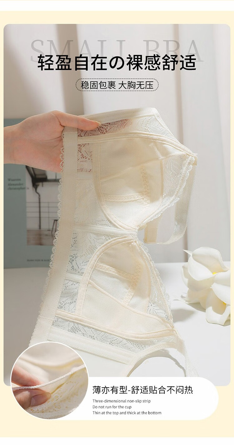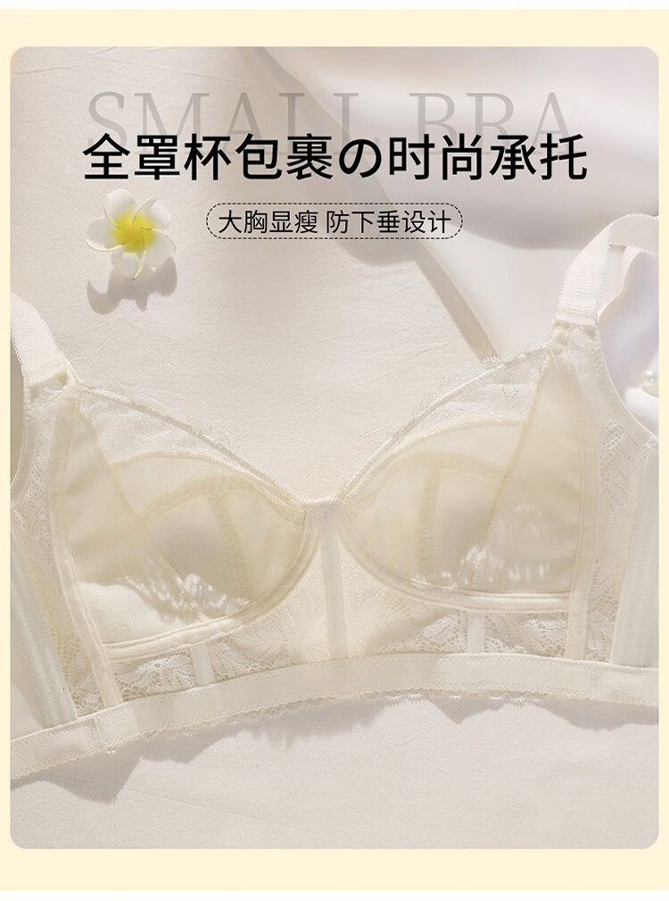 华婷露(Huatinglu) 调整型内衣女收副乳无钢圈文胸蕾丝胸罩大胸显小超薄全罩杯bra薄 简爱款-奶茶肤 85C