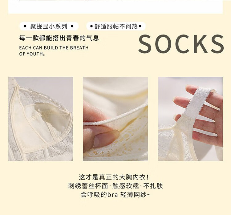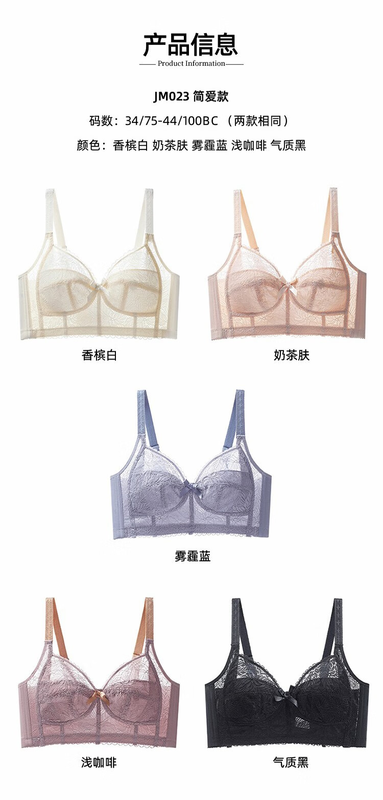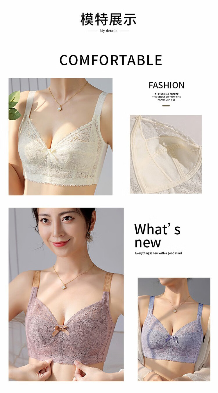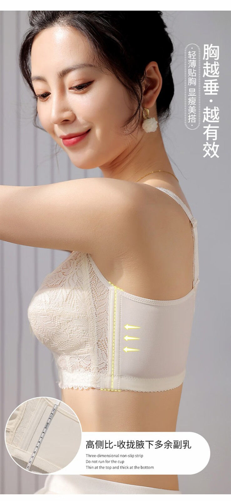 华婷露(Huatinglu) 调整型内衣女收副乳无钢圈文胸蕾丝胸罩大胸显小超薄全罩杯bra薄 简爱款-奶茶肤 85C