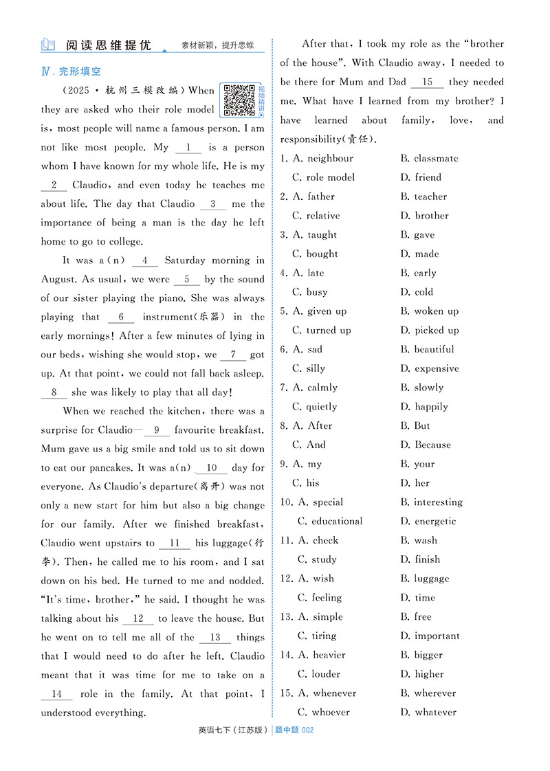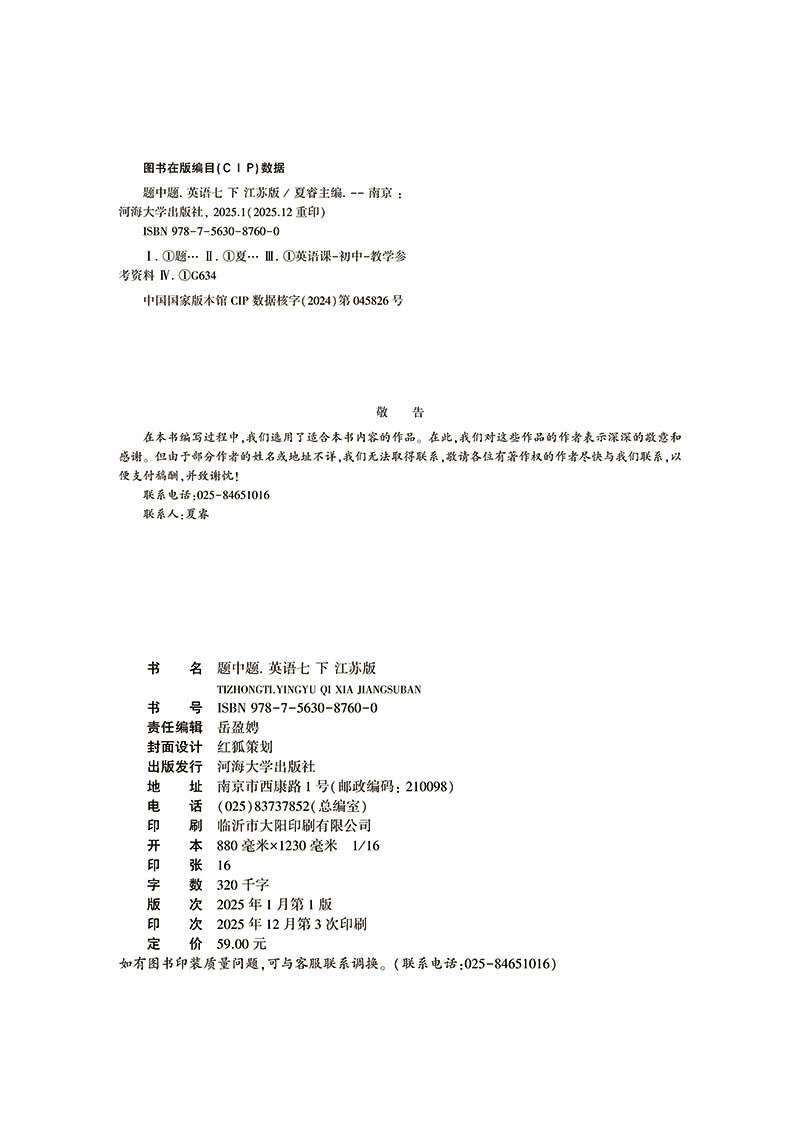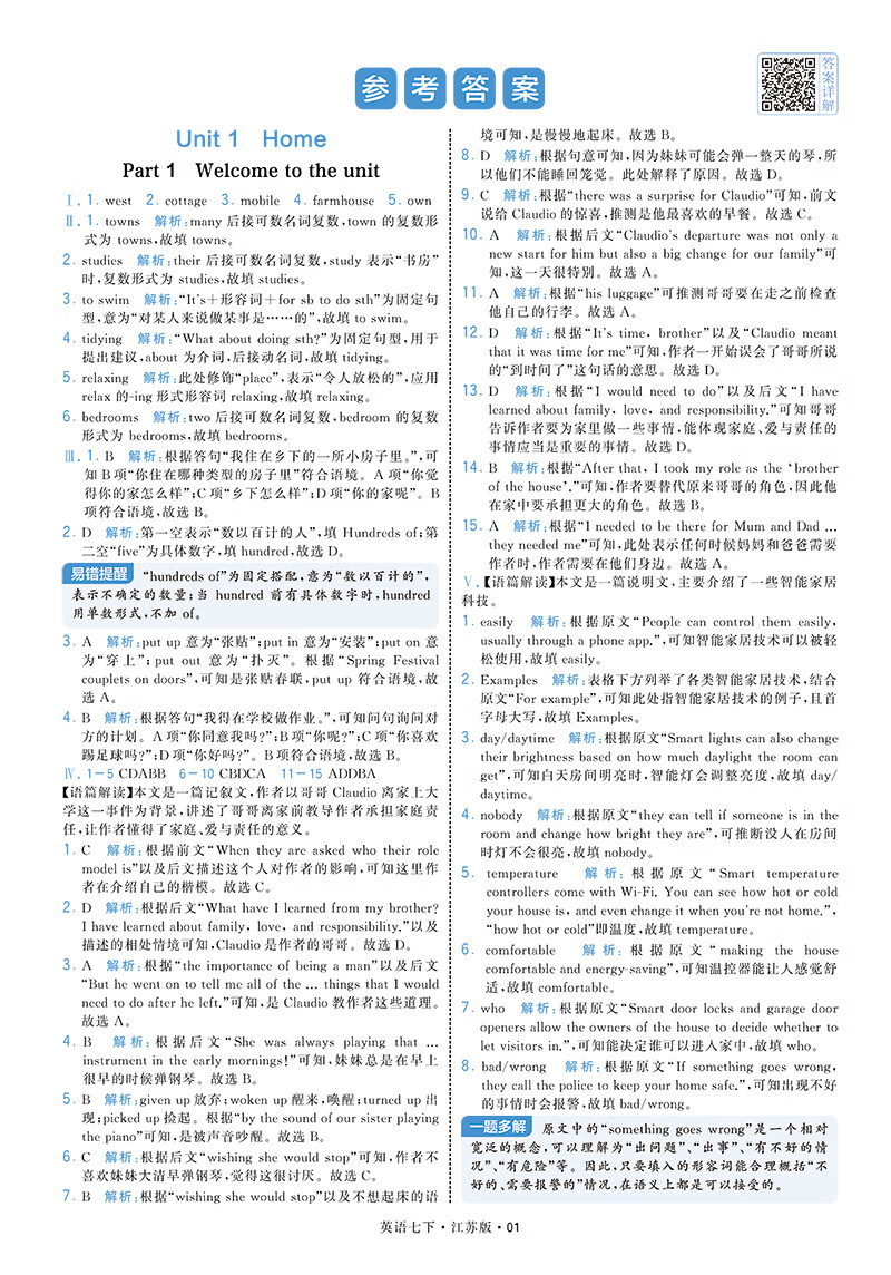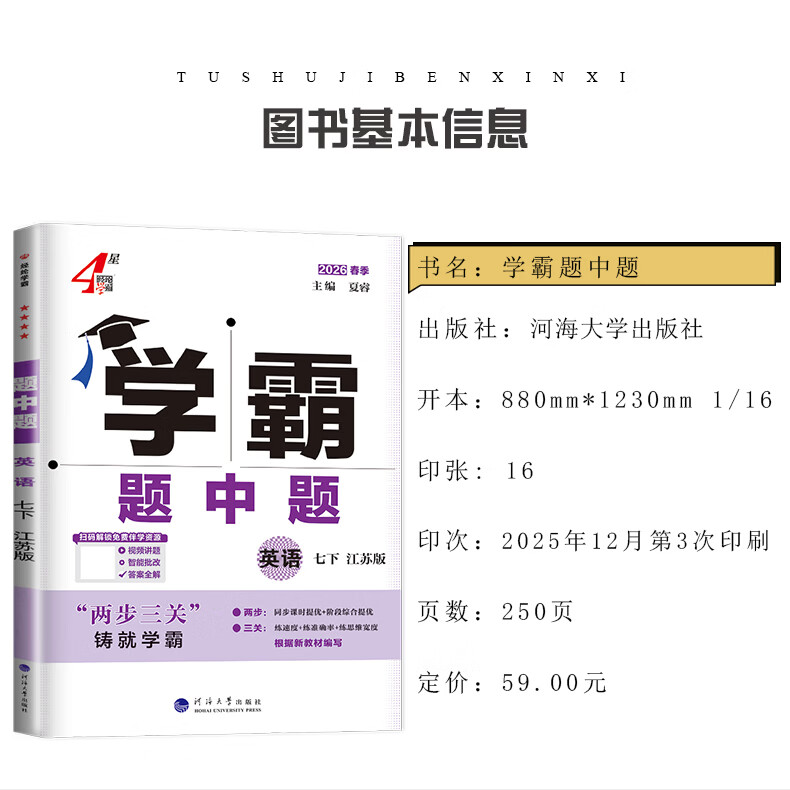 2026学霸题中题七年级上册下册数学英语苏科版人教北师沪科版苏教版同步课时作业本练习册 【2026春】英语- 江苏版(译林) 七下