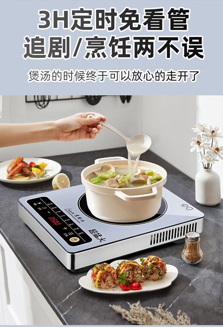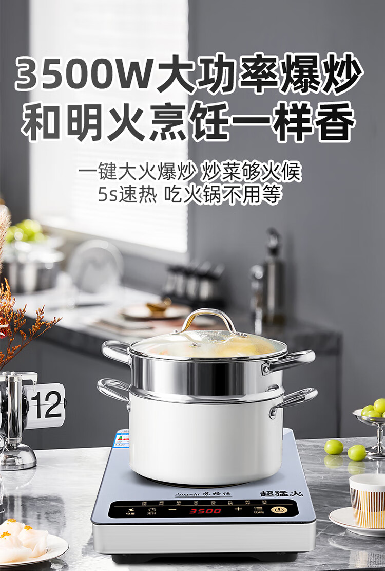 苏格仕电磁炉3500W大功率新款家用电池灶商用一体灶防水多功能正品猛火 3500W单机+汤煲+炒锅
