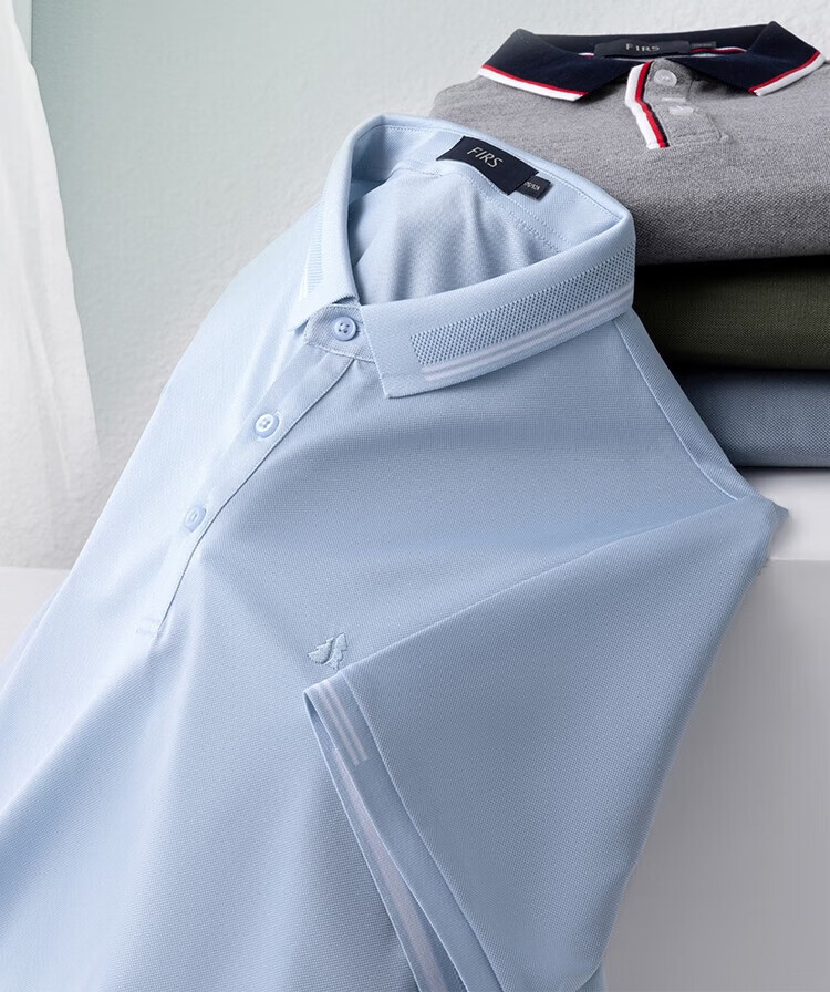 杉杉(FIRS)【凉感速干】POLO衫男夏季新款商务休闲半袖纯色透气提花翻领短袖 F1113P1D207403 M (170/88A)