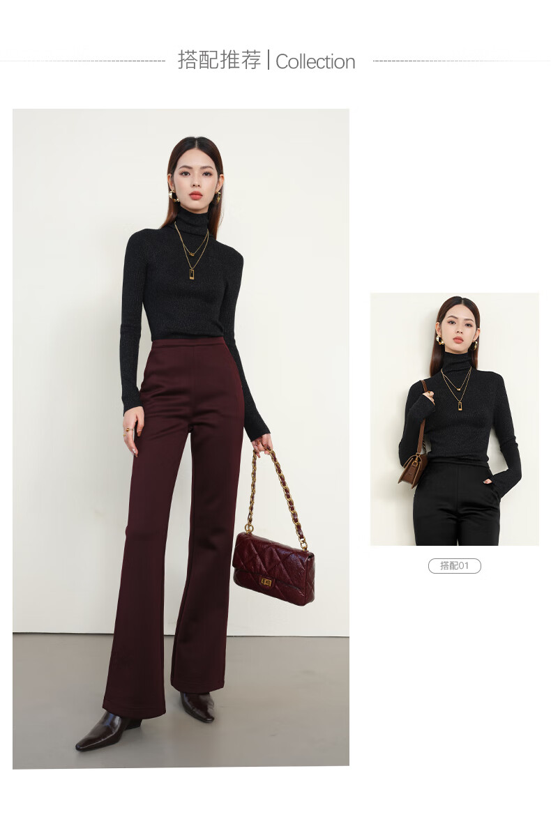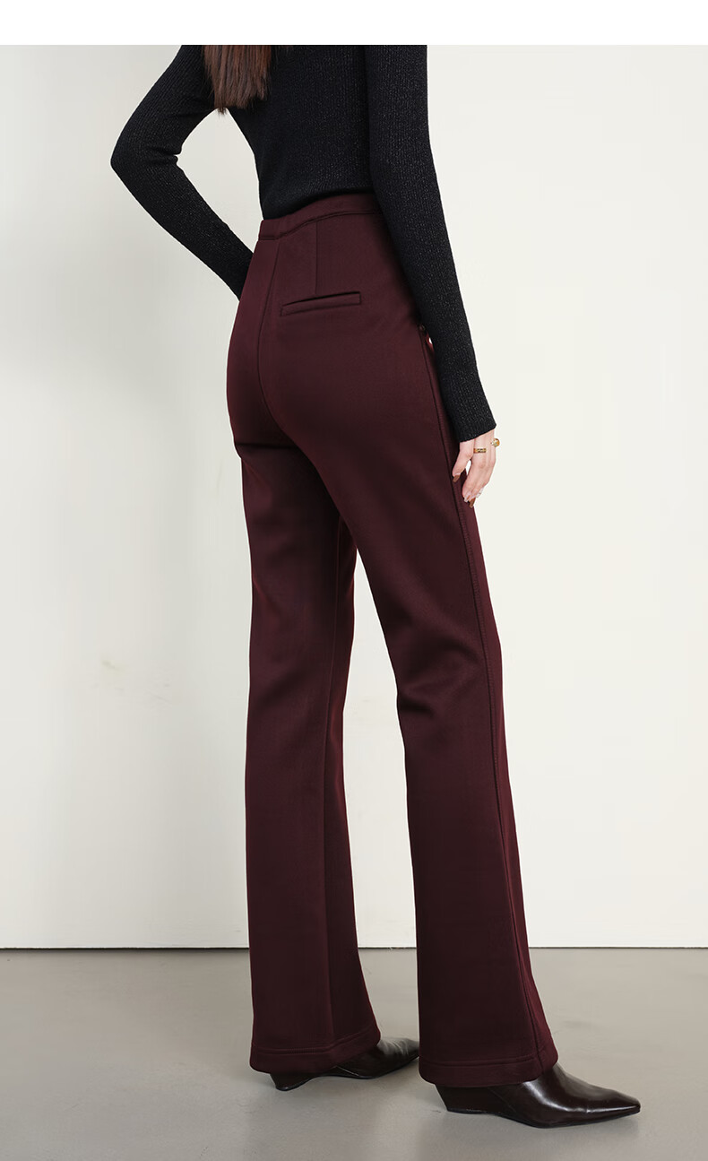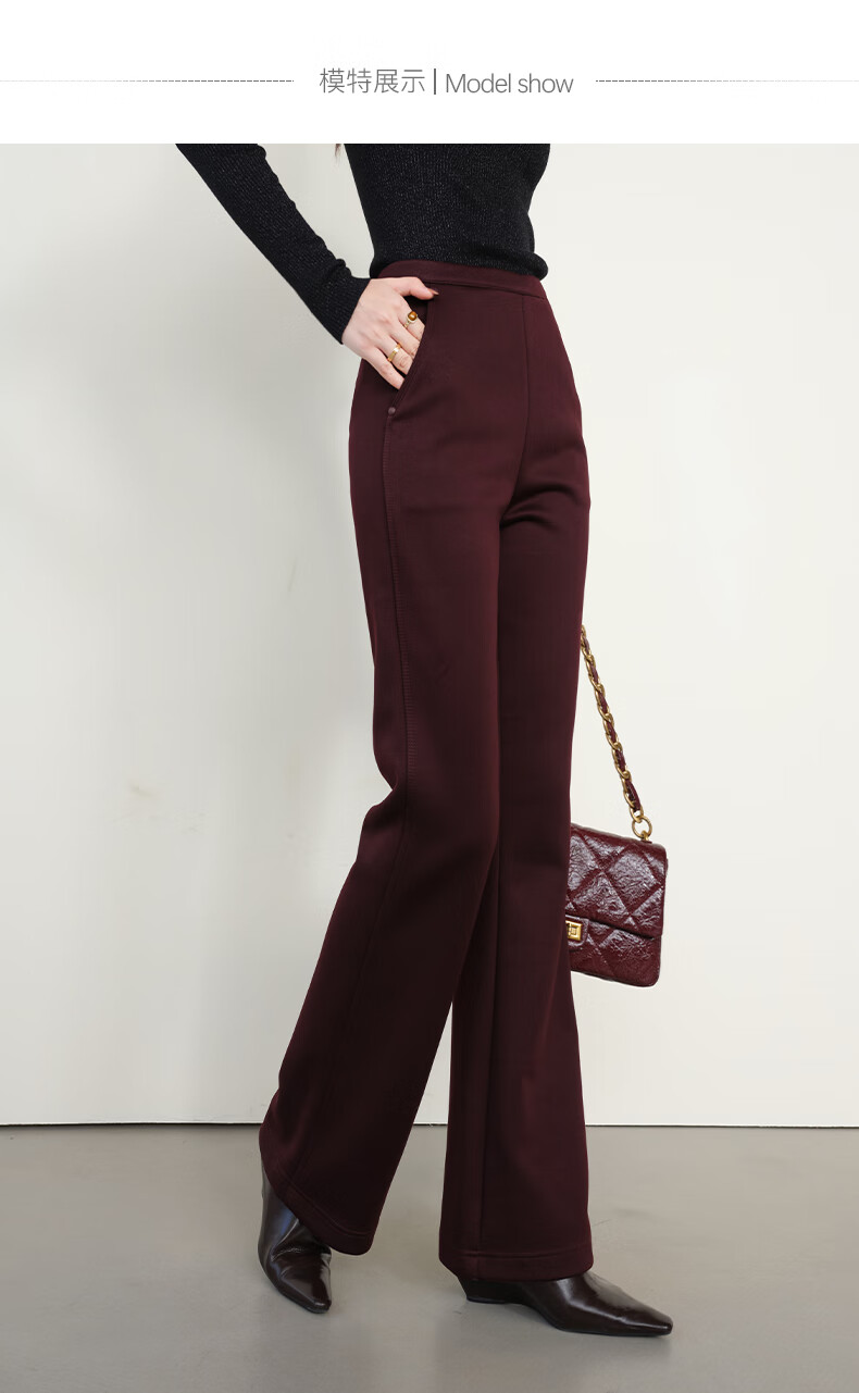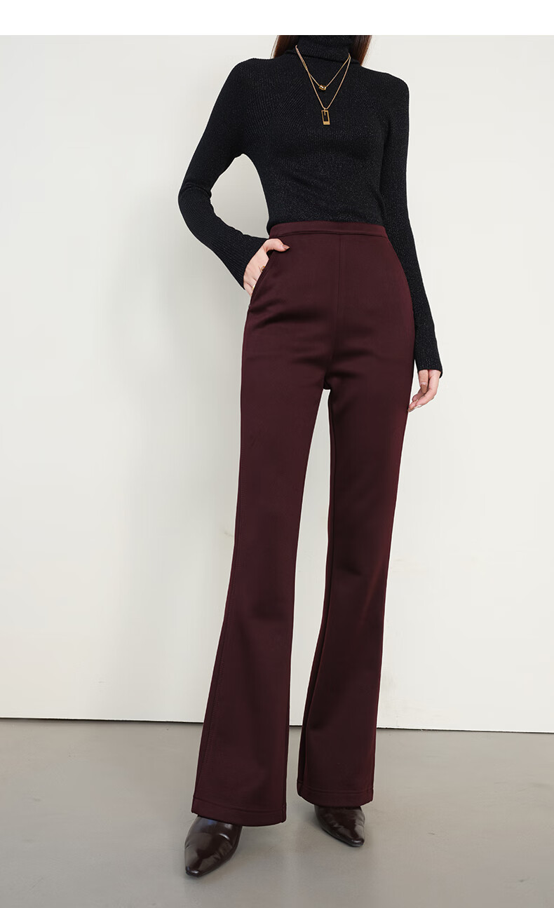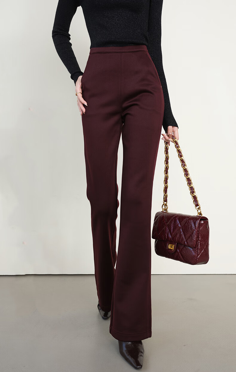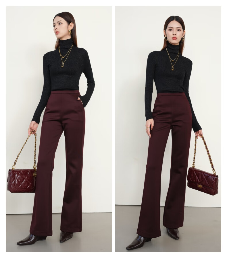 晚白【断码清仓】冬款时尚骐骥红新年穿搭裤子高腰加绒微喇休闲裤女 安可拉红 26