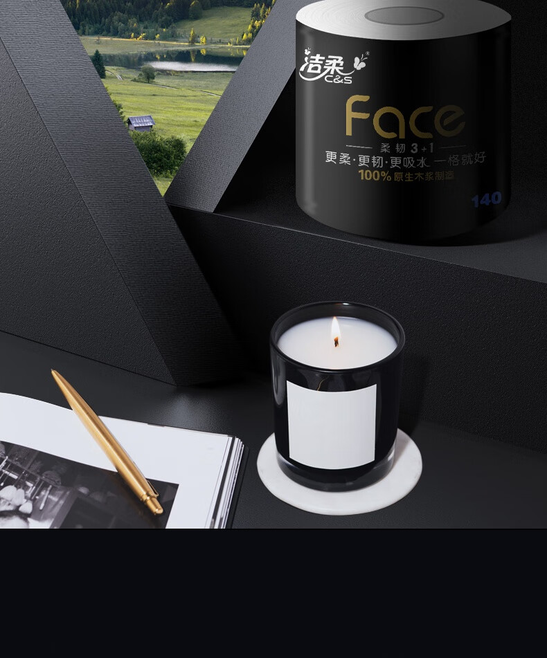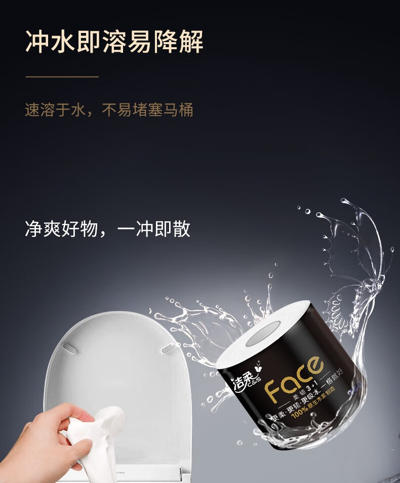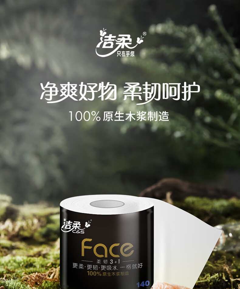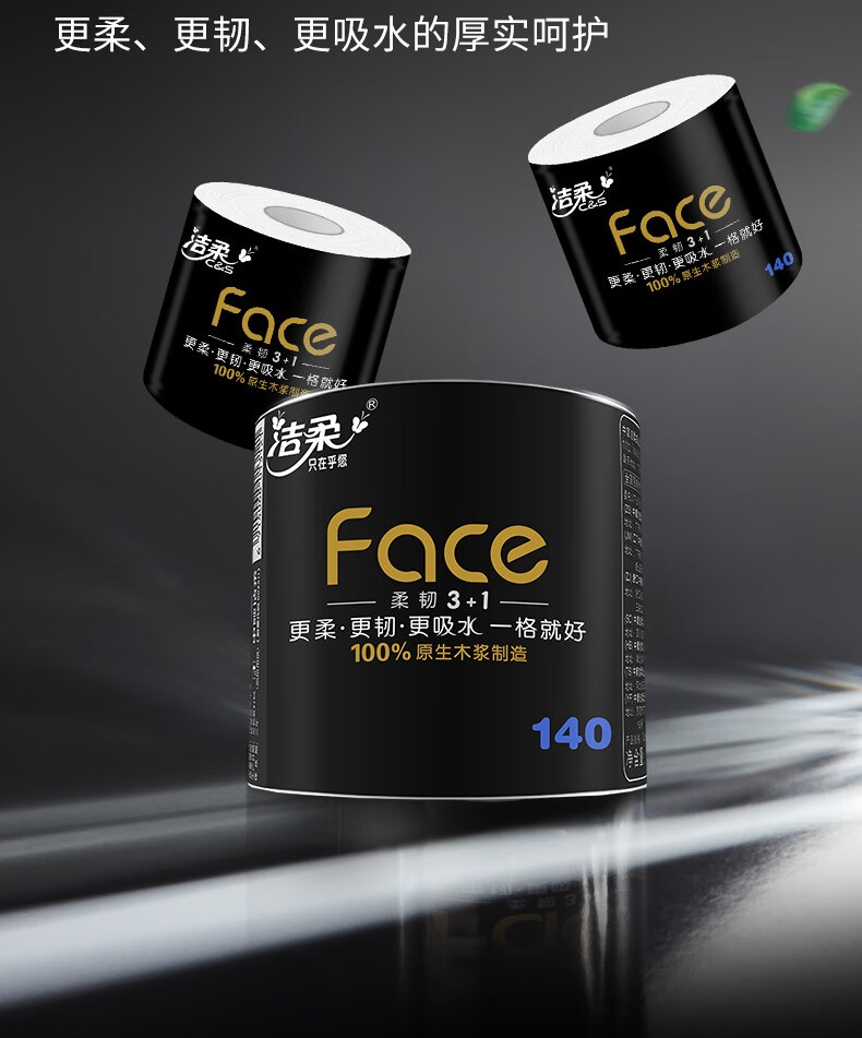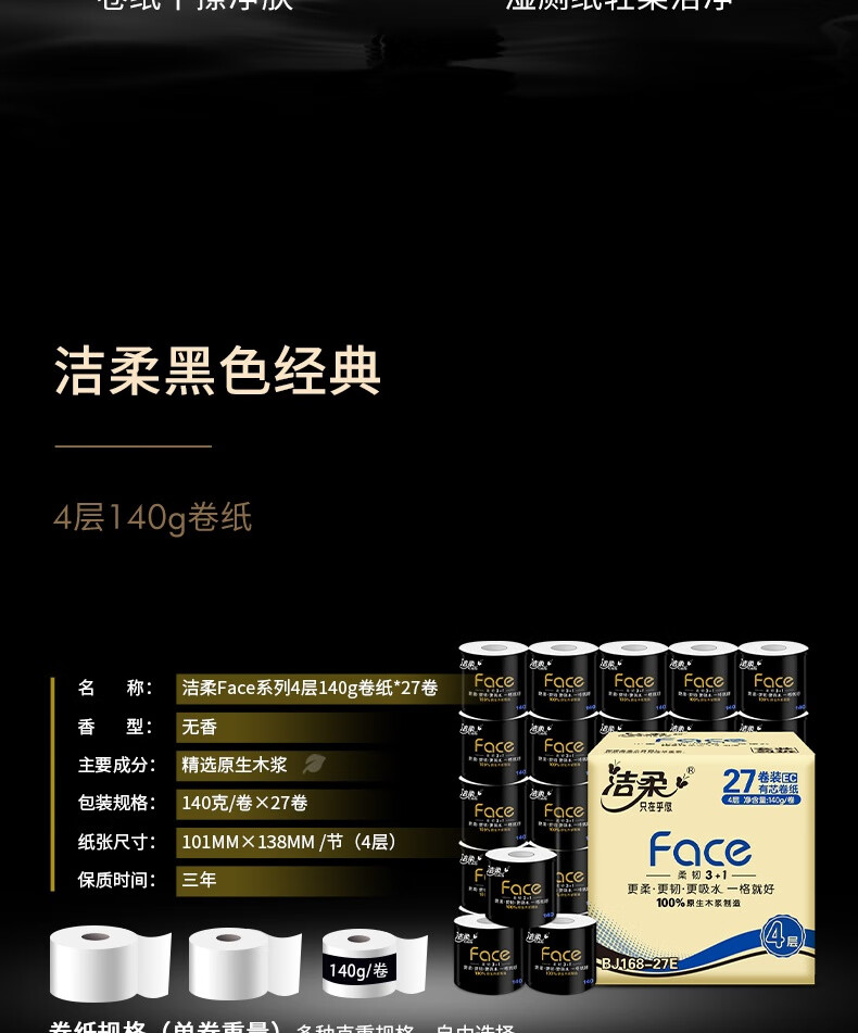 洁柔有芯卷纸 黑Face加厚4层140g卫生纸*27卷 卫生纸卷筒纸纸巾整箱