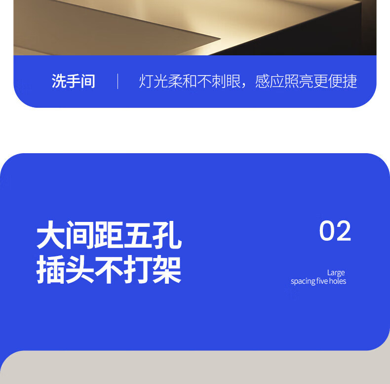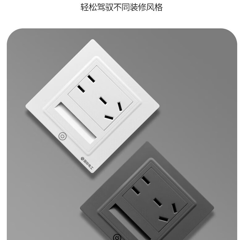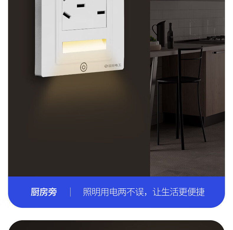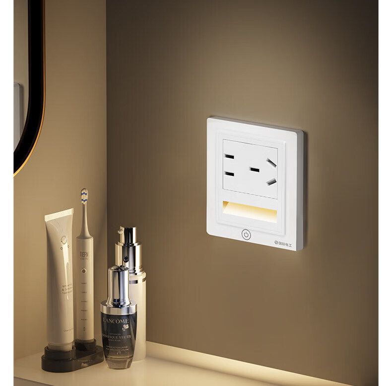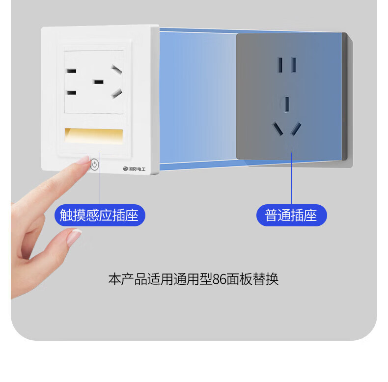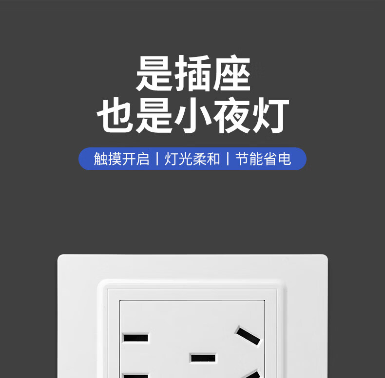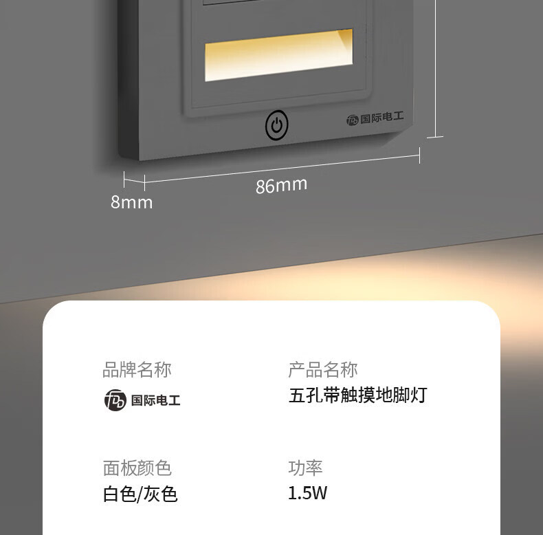 国际电工触摸五孔插座地脚灯86型暗装LED小夜灯嵌入式家用楼梯走廊暖光灯 国标横向五孔插座+触摸小夜灯