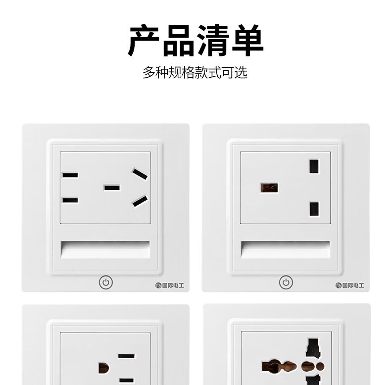 国际电工直插式扩展插座家用厨房分控带开关排插多功能带线拓展插板插线板 白色2.1A快充-五开35孔-向右扩展