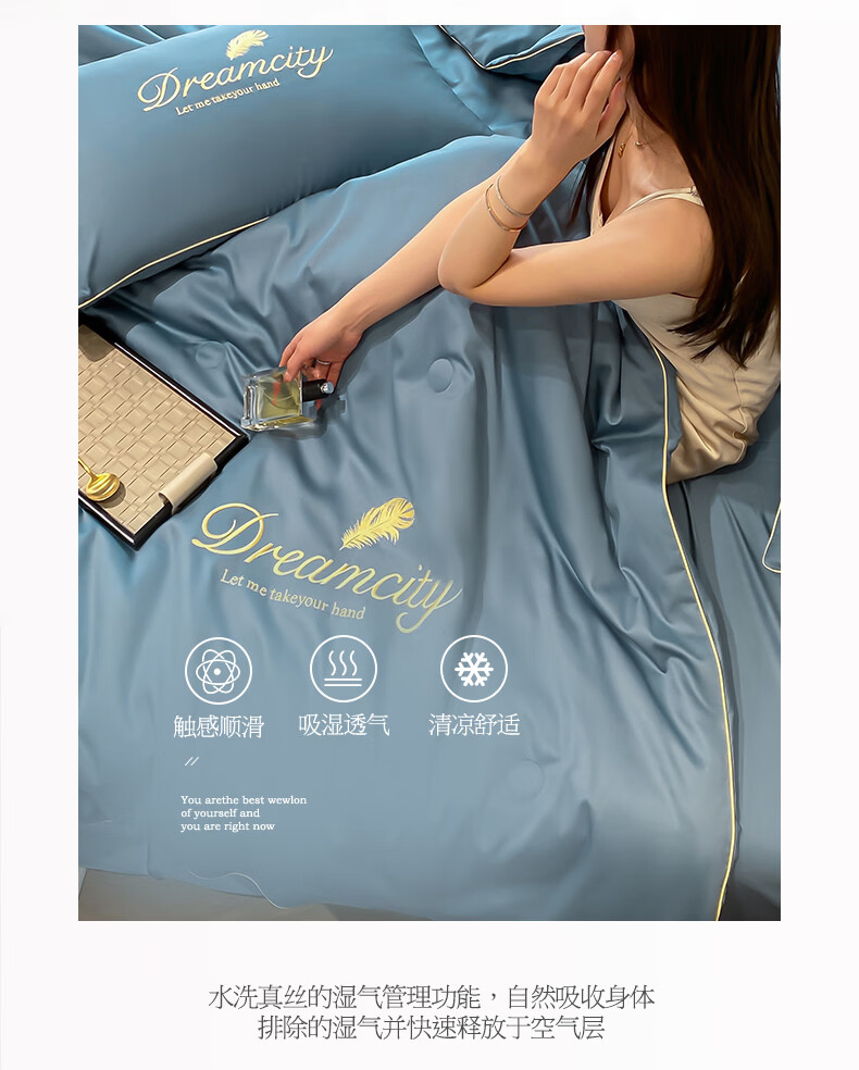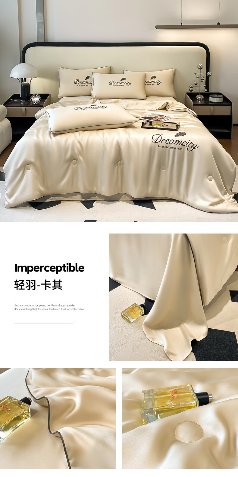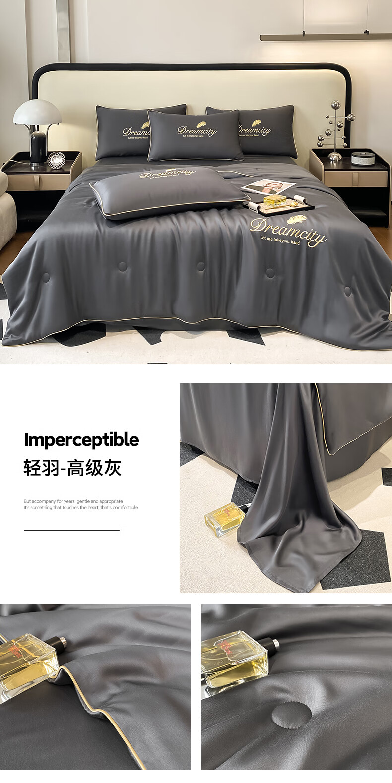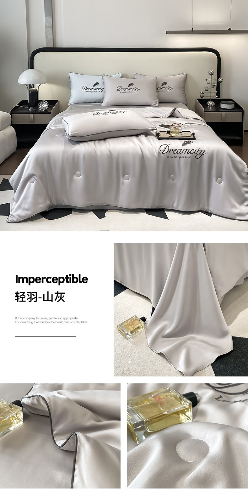 苏萱2026新款热卖水洗冰丝夏被四件套夏季夏凉被空调被可机水洗单双人 亚丁绿+冰川灰 单人夏被-150*200cm