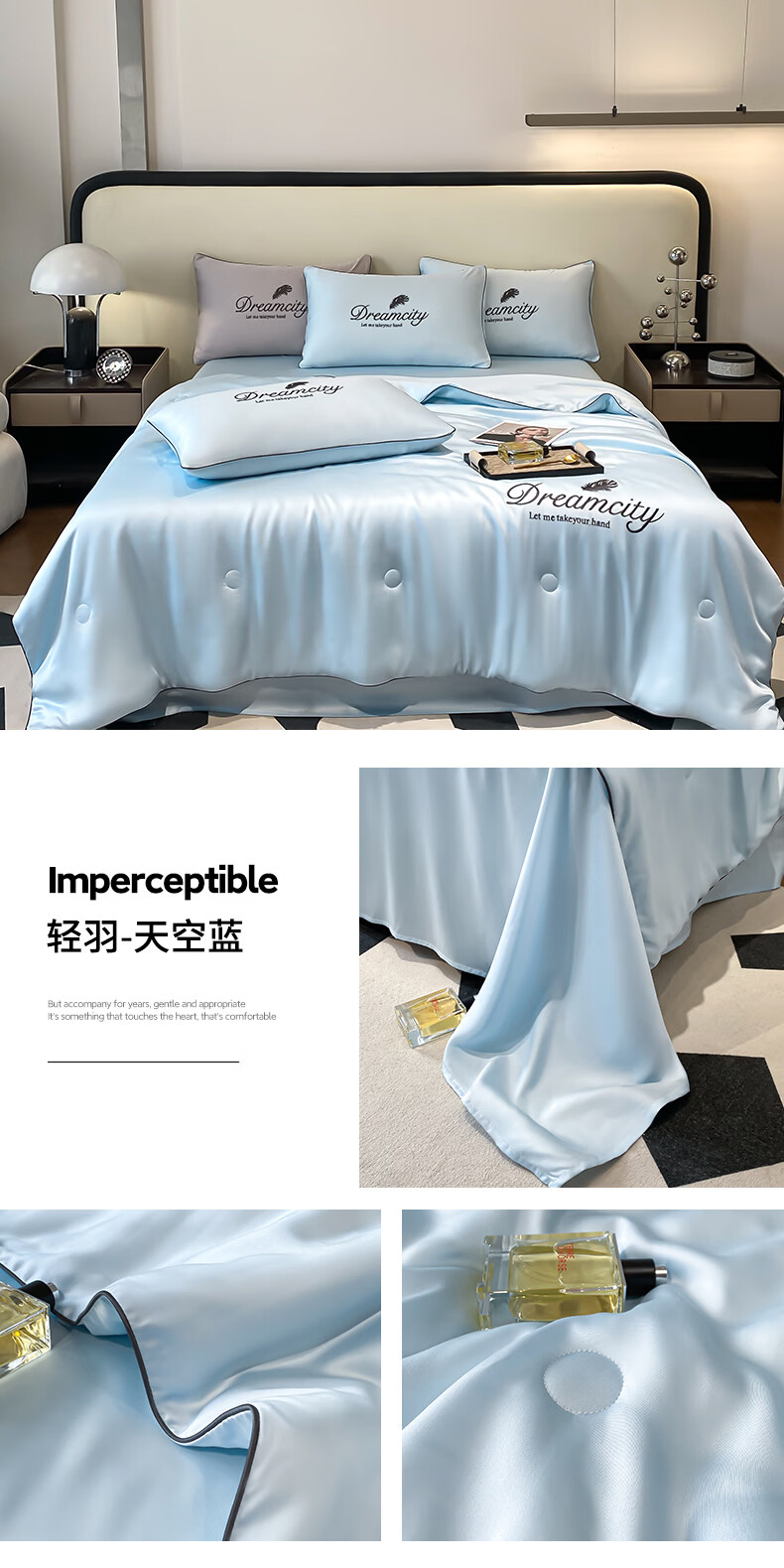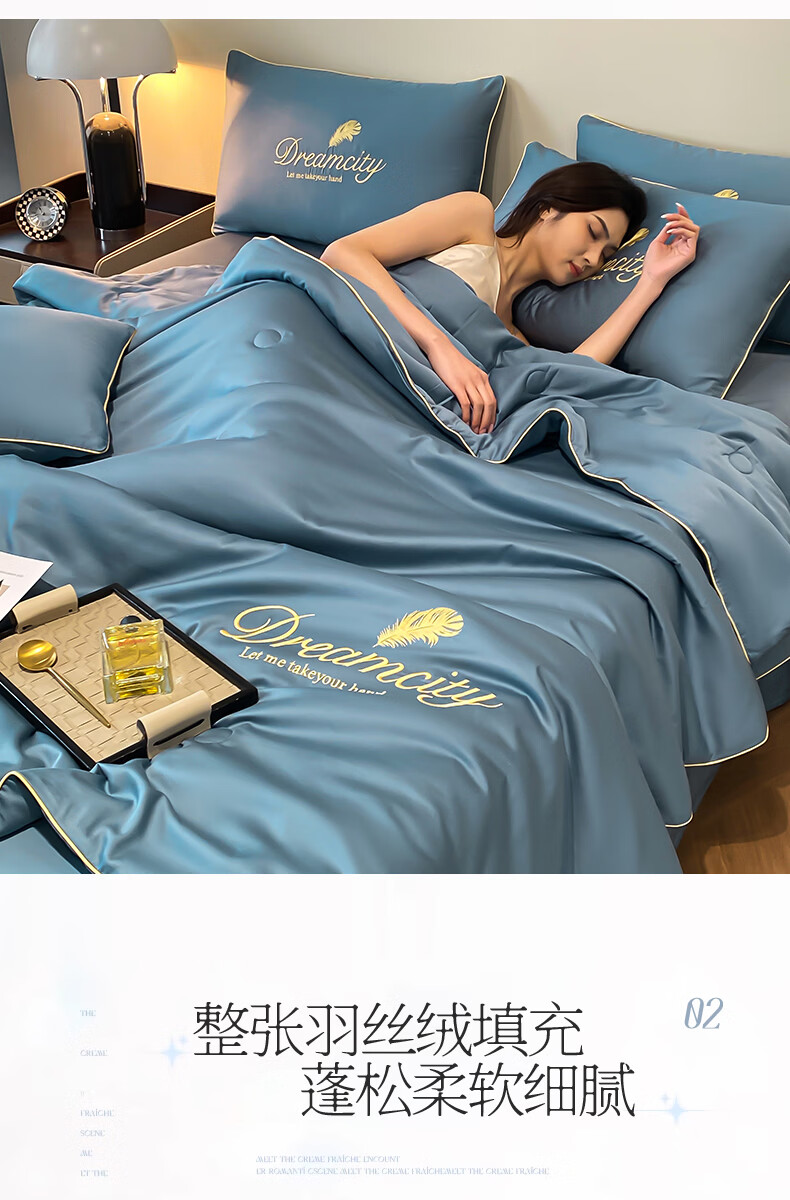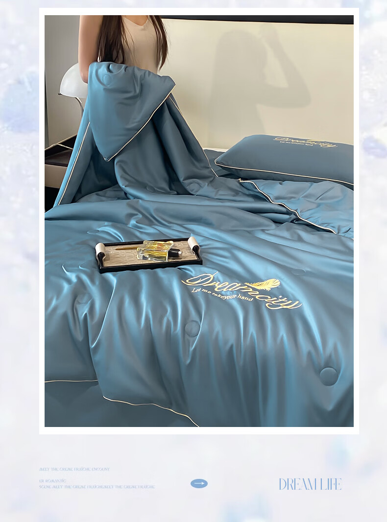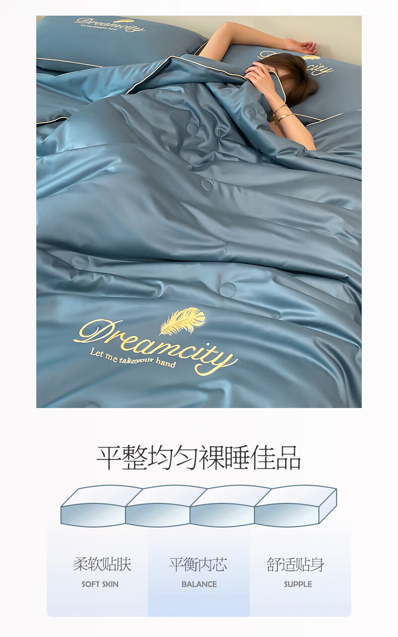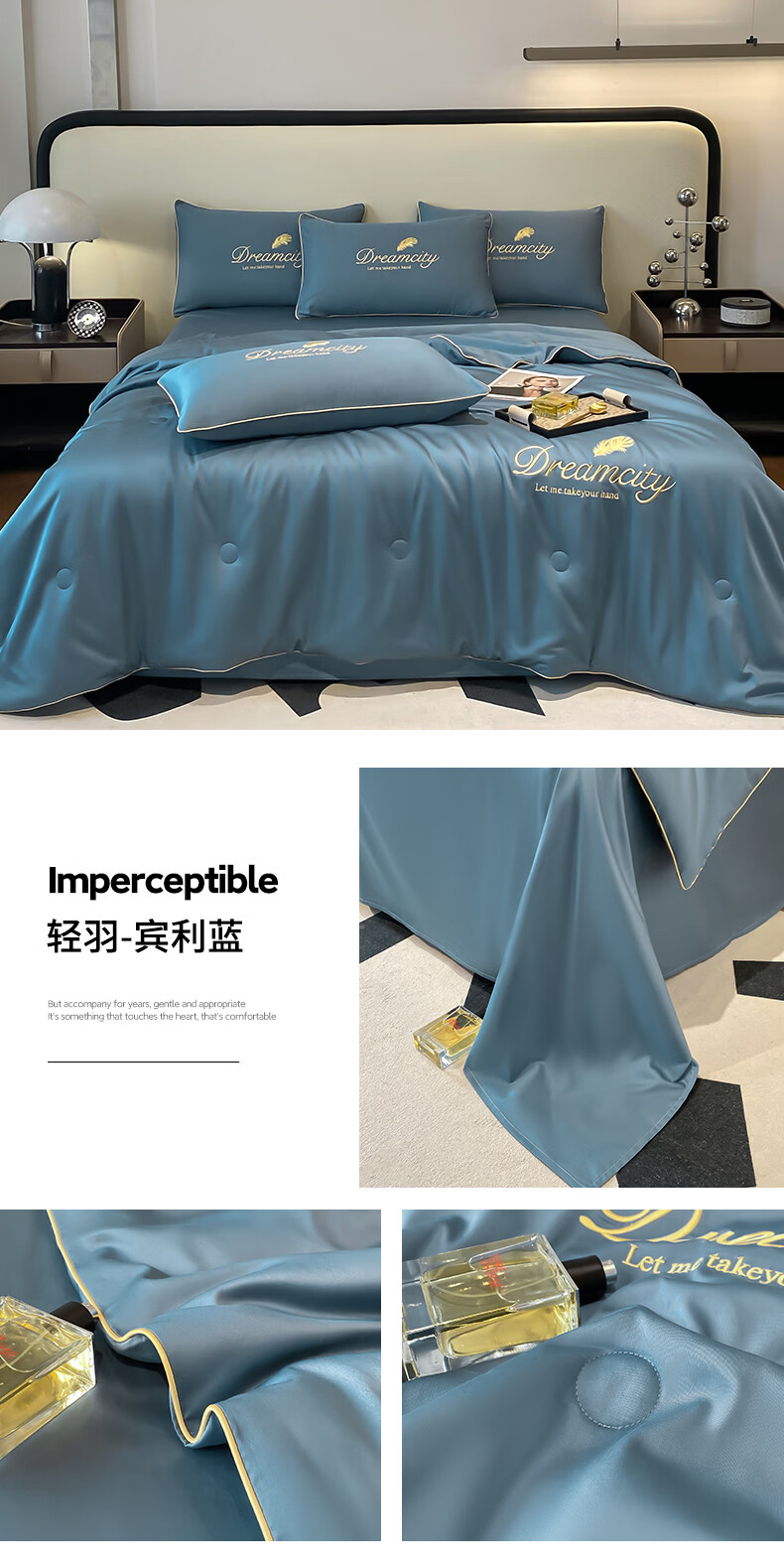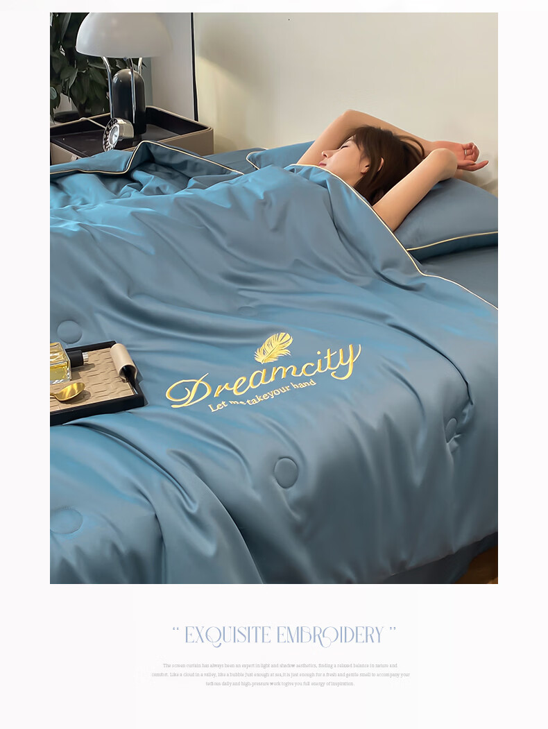 无印良品冰丝夏季空调被200x230cm双人凉感亲肤刺绣薄夏被家用可机洗裸睡 轻羽-宾利蓝【凉而不冰 适合裸睡】 150cmx200cm -单人夏被