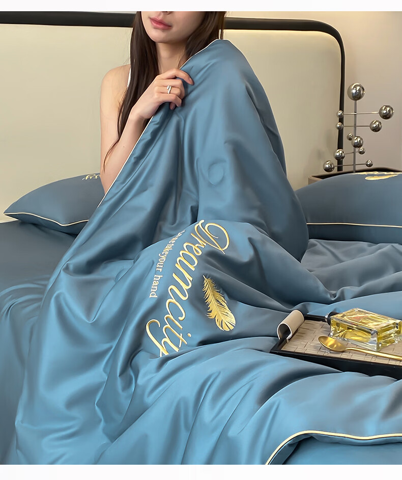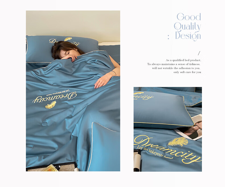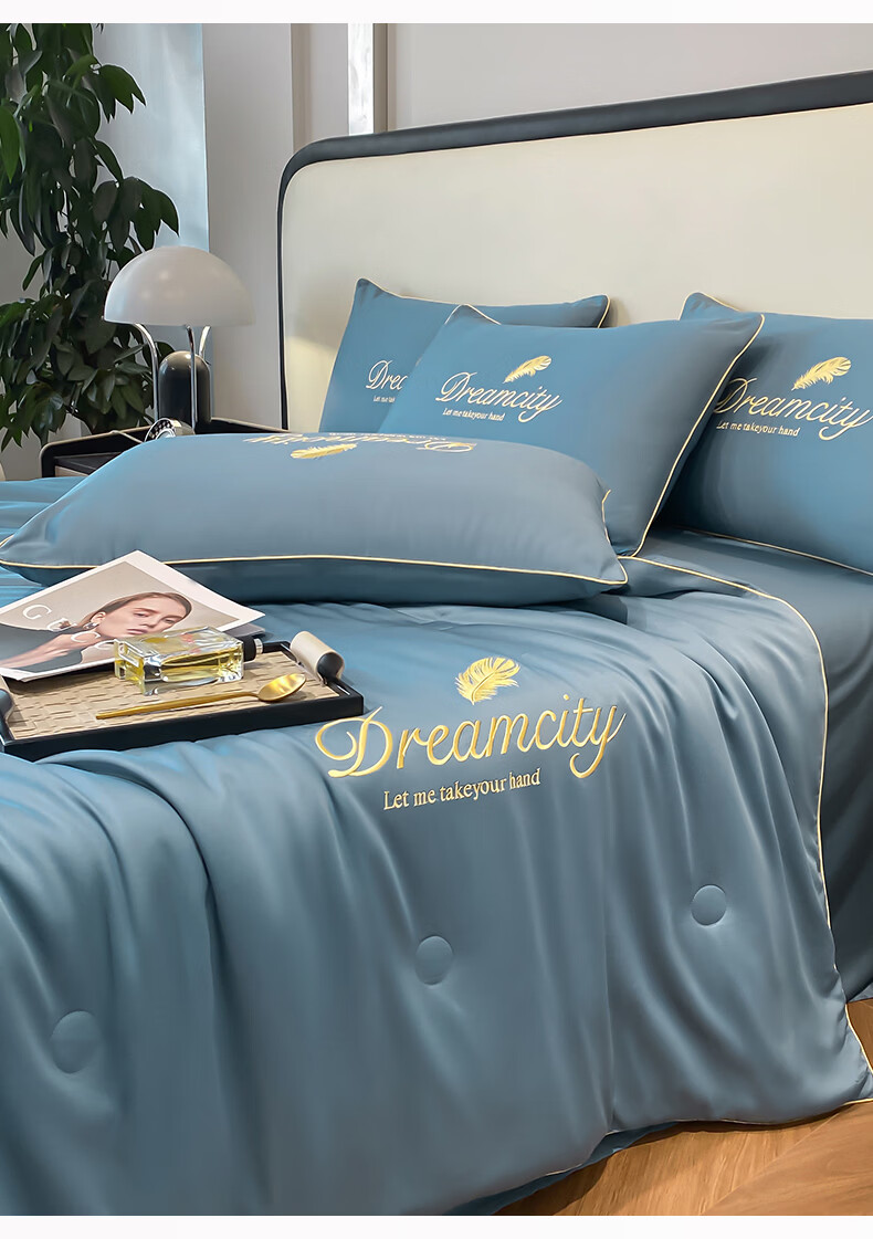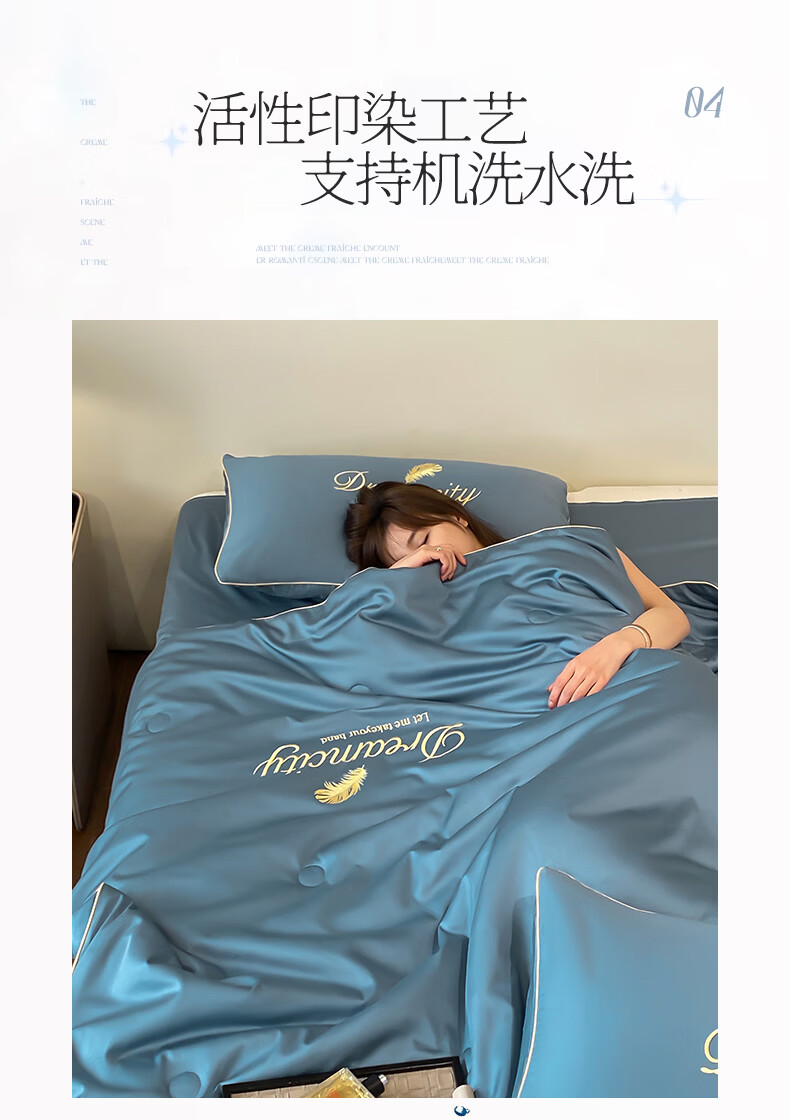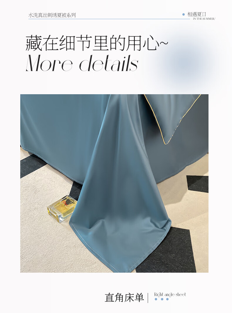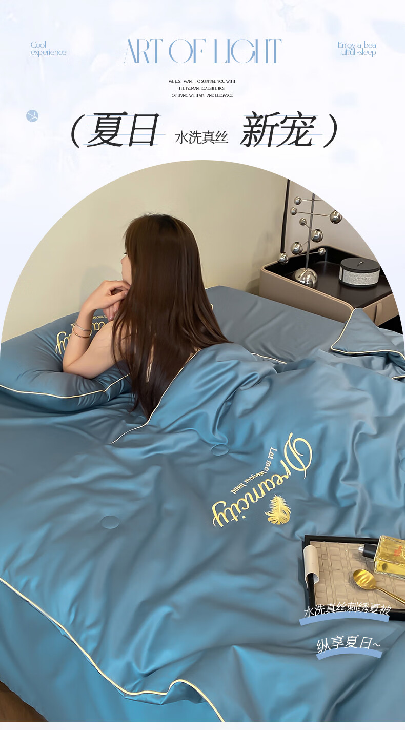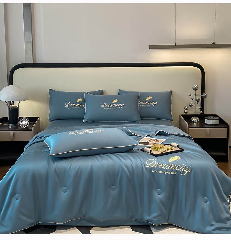无印良品冰丝夏季空调被200x230cm双人凉感亲肤刺绣薄夏被家用可机洗裸睡 轻羽-宾利蓝【凉而不冰 适合裸睡】 150cmx200cm -单人夏被