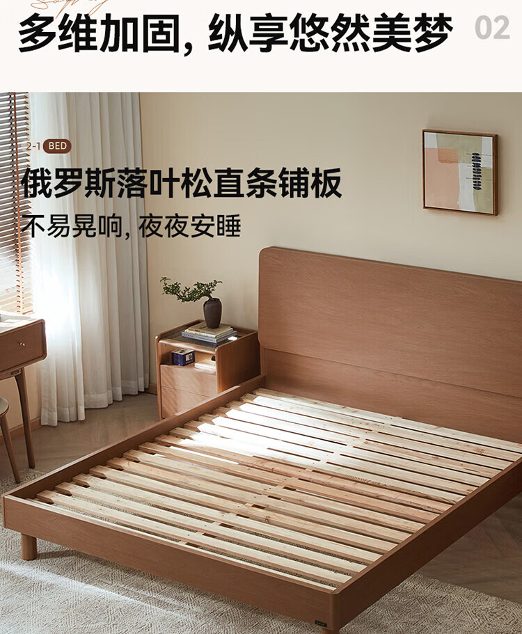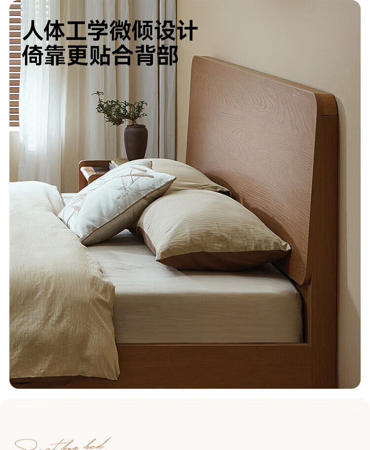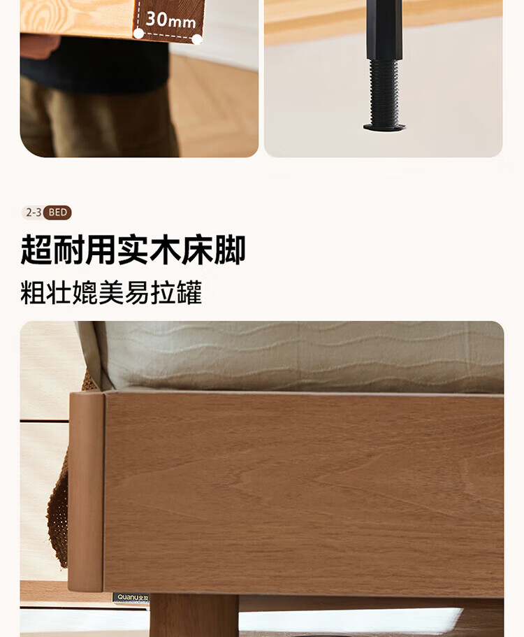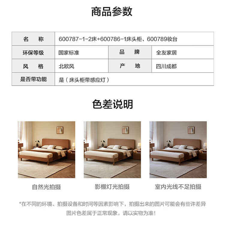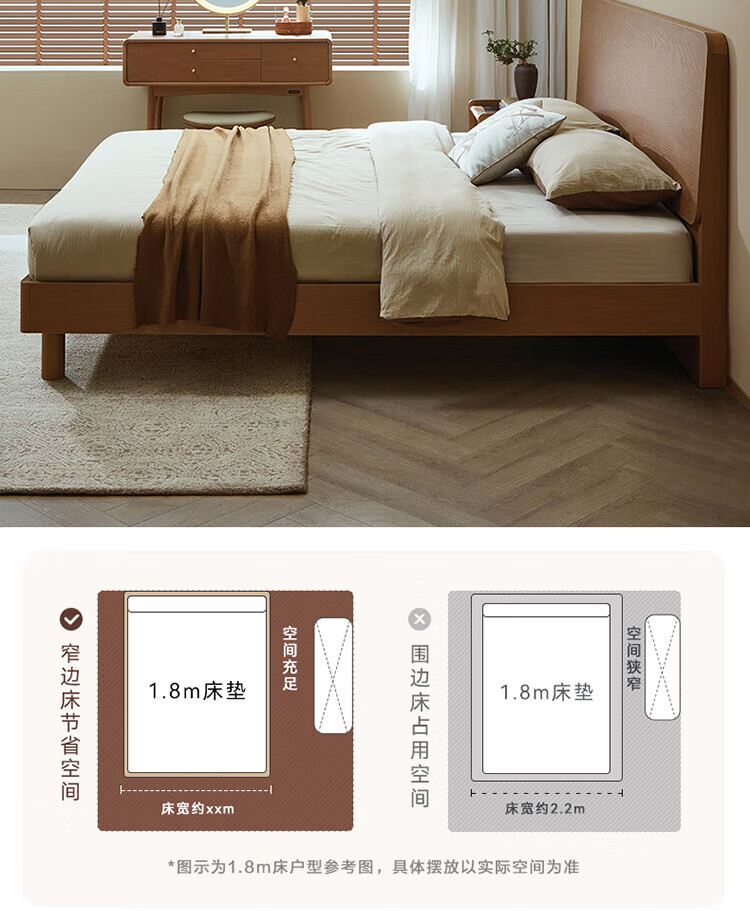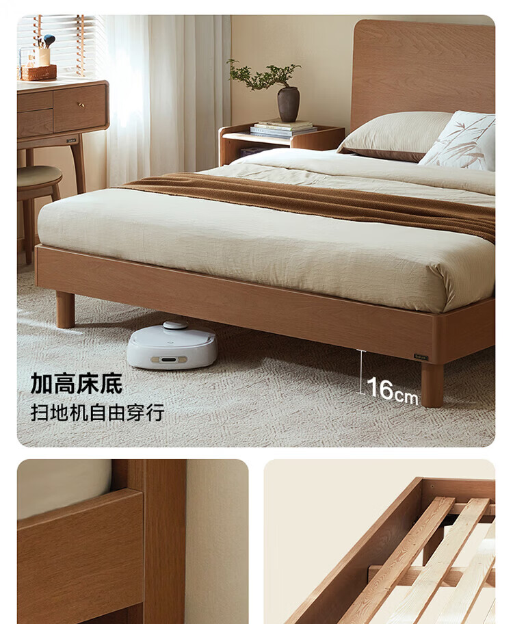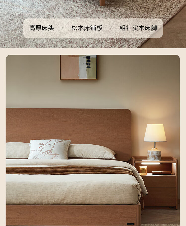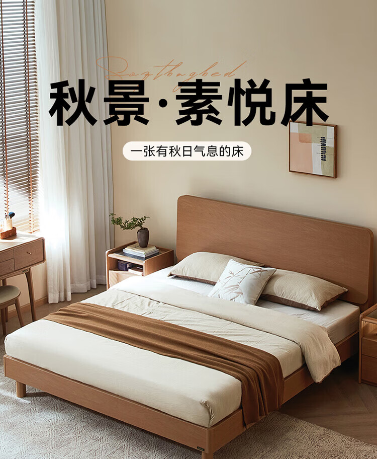 全友家居北欧风实木床主卧室双人大床1.8米x2米床高脚床家具 【雀茶色】单床 1.5米|高床头+窄边设计+实木床脚