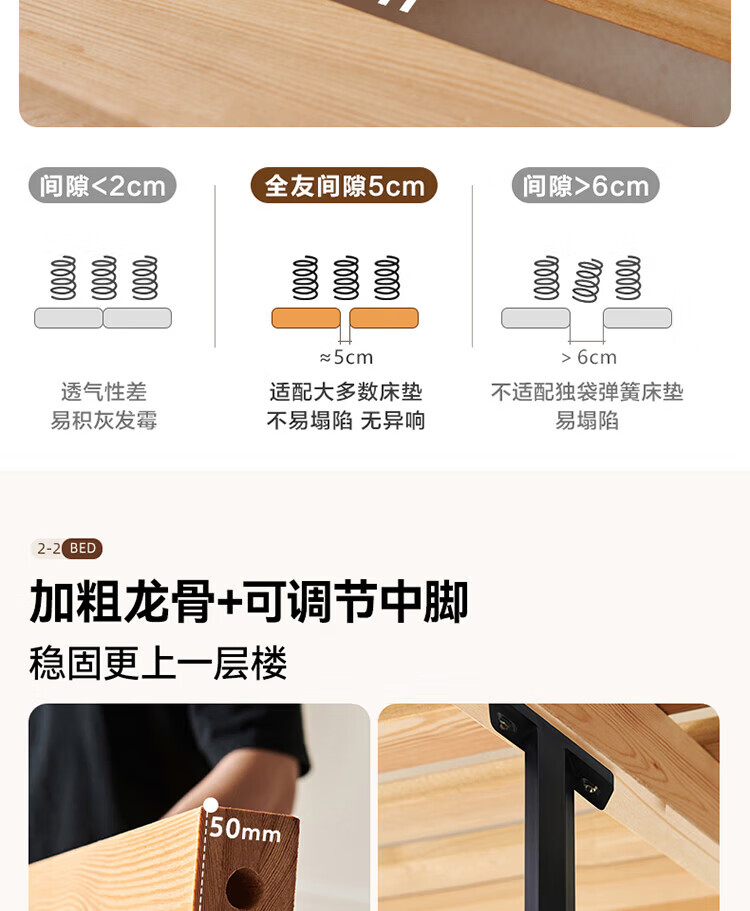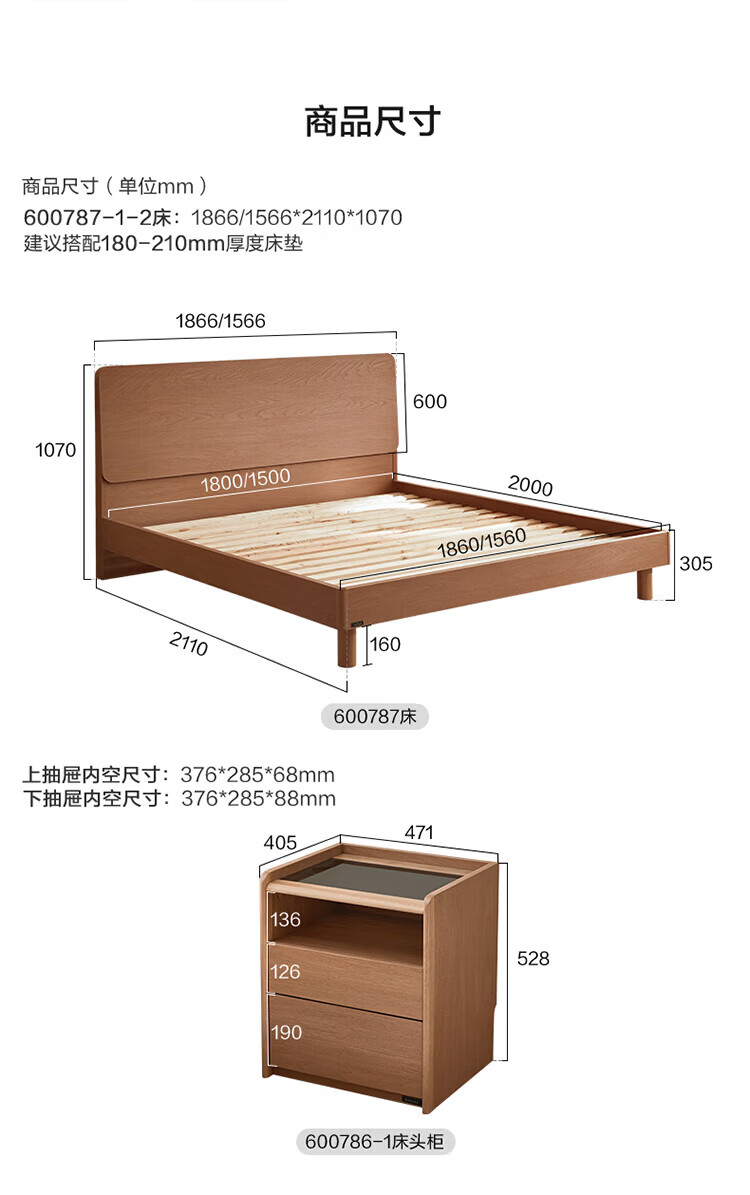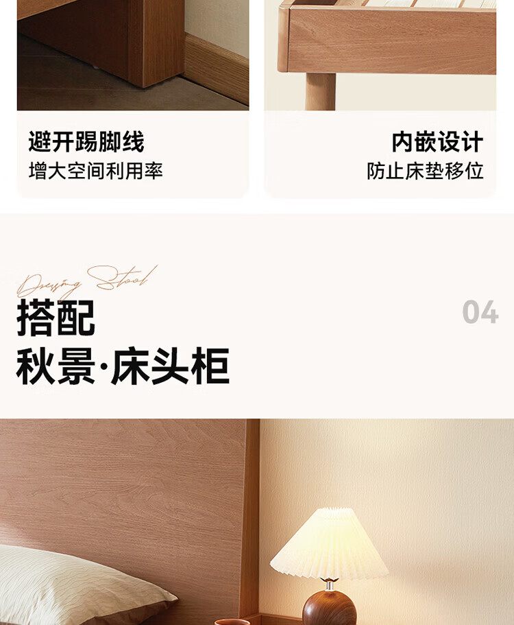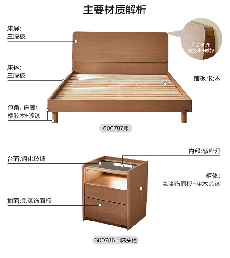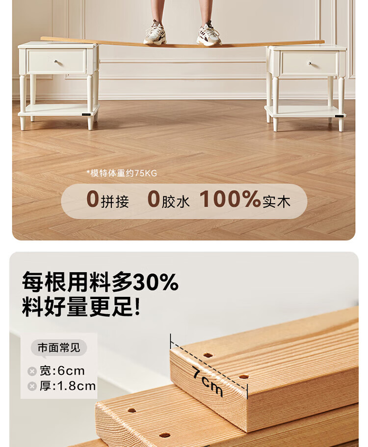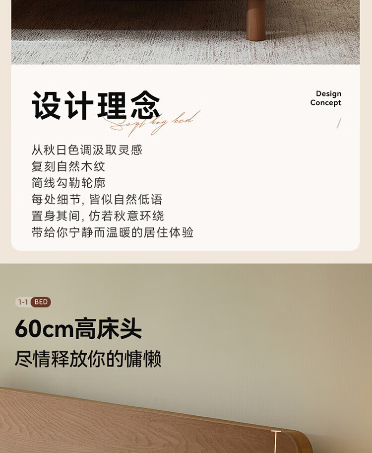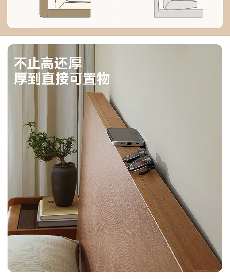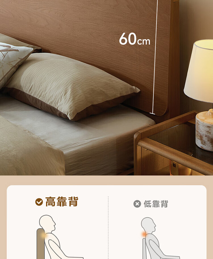 全友家居北欧风实木床主卧室双人大床1.8米x2米床高脚床家具 【雀茶色】单床 1.5米|高床头+窄边设计+实木床脚
