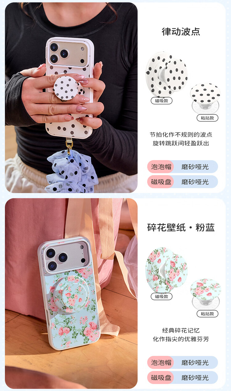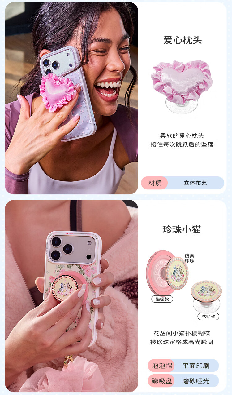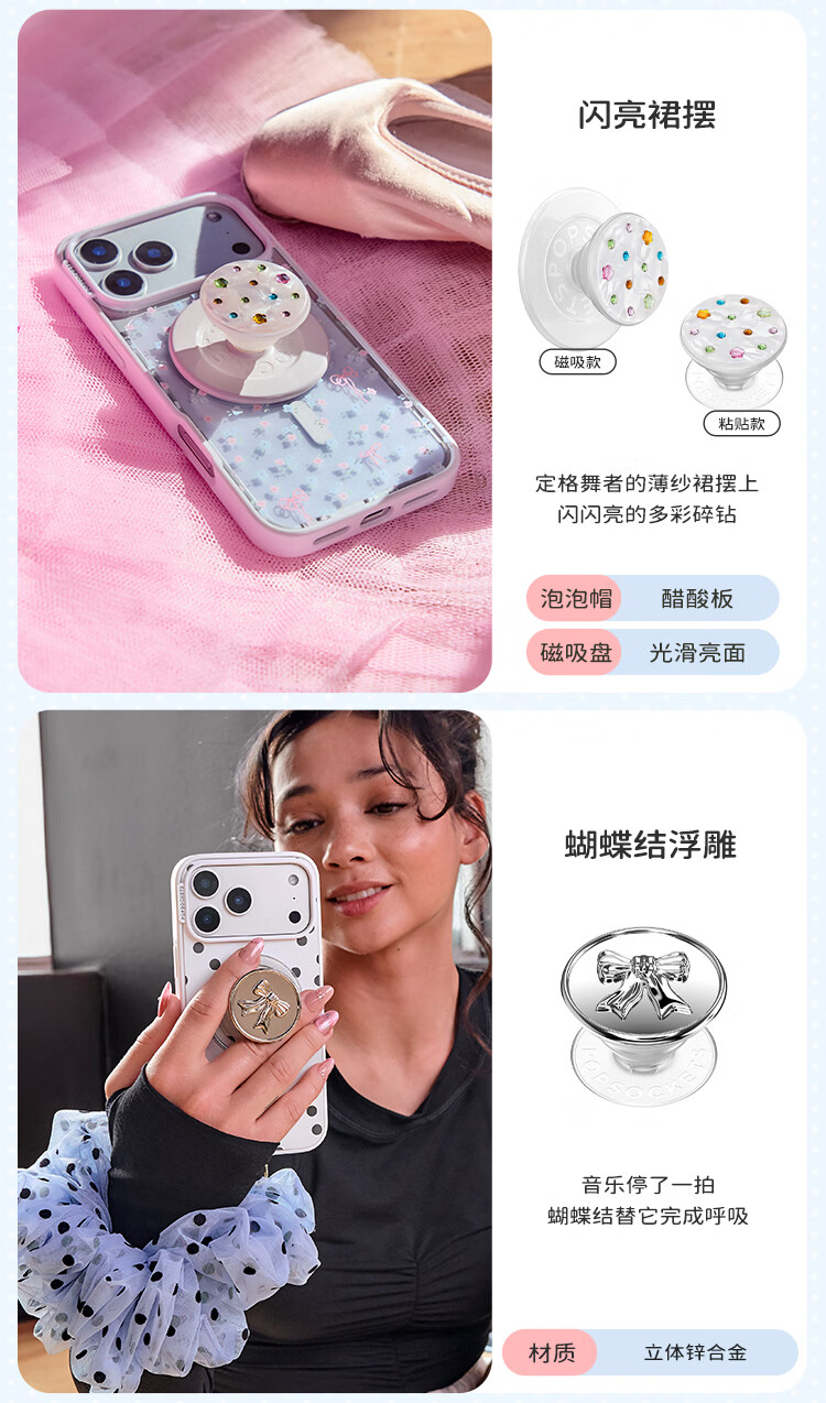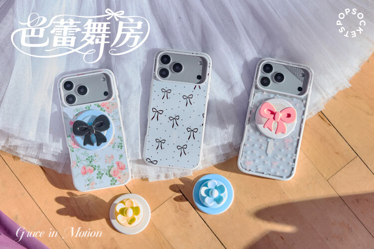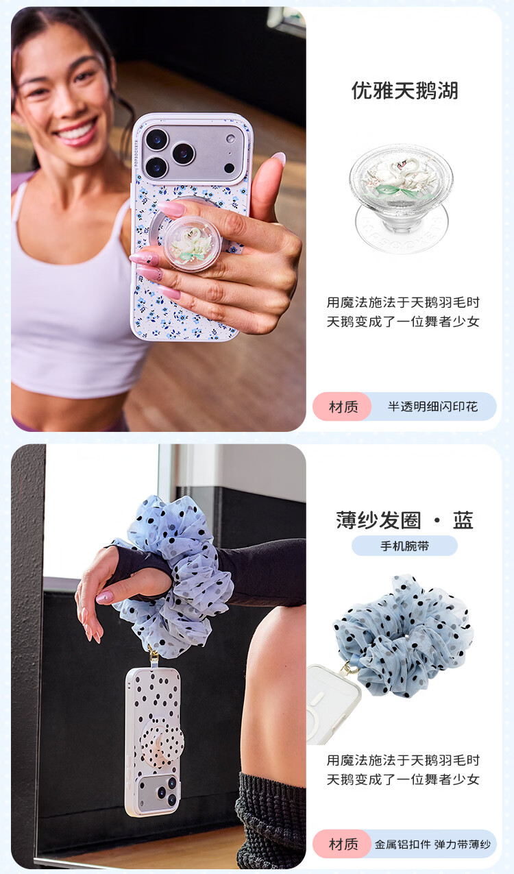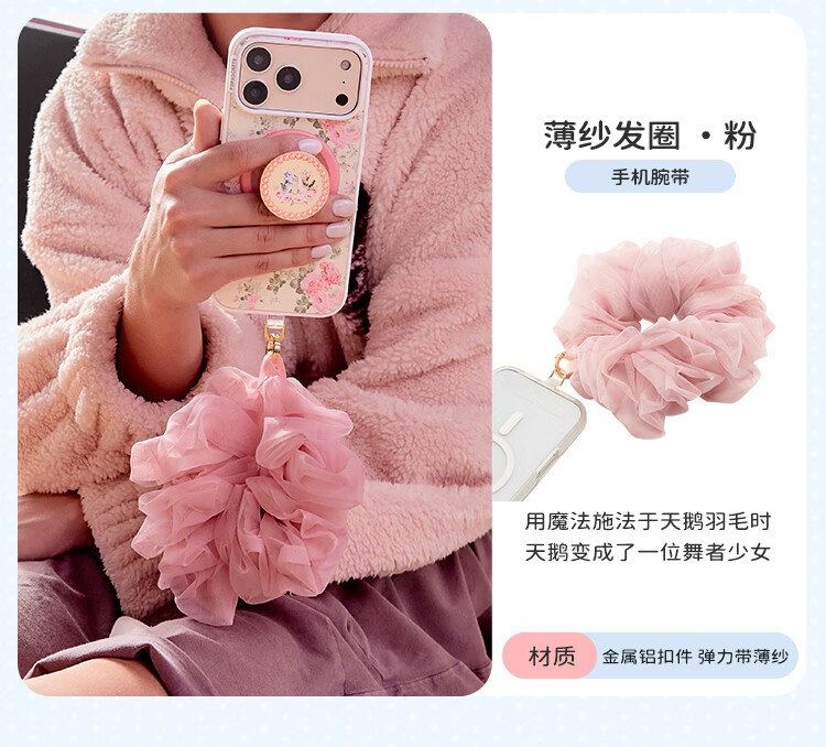 PopSockets【芭蕾舞房·手机链】泡泡骚手机绳手机链 手机挂绳 手机背带 手机腕带 便携户外斜挎手机配件发圈 薄纱发圈手机腕带· 粉