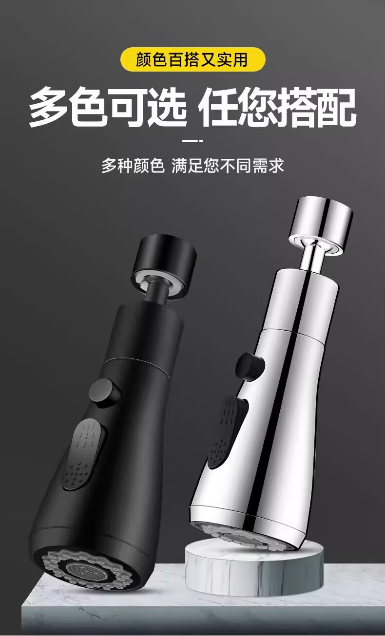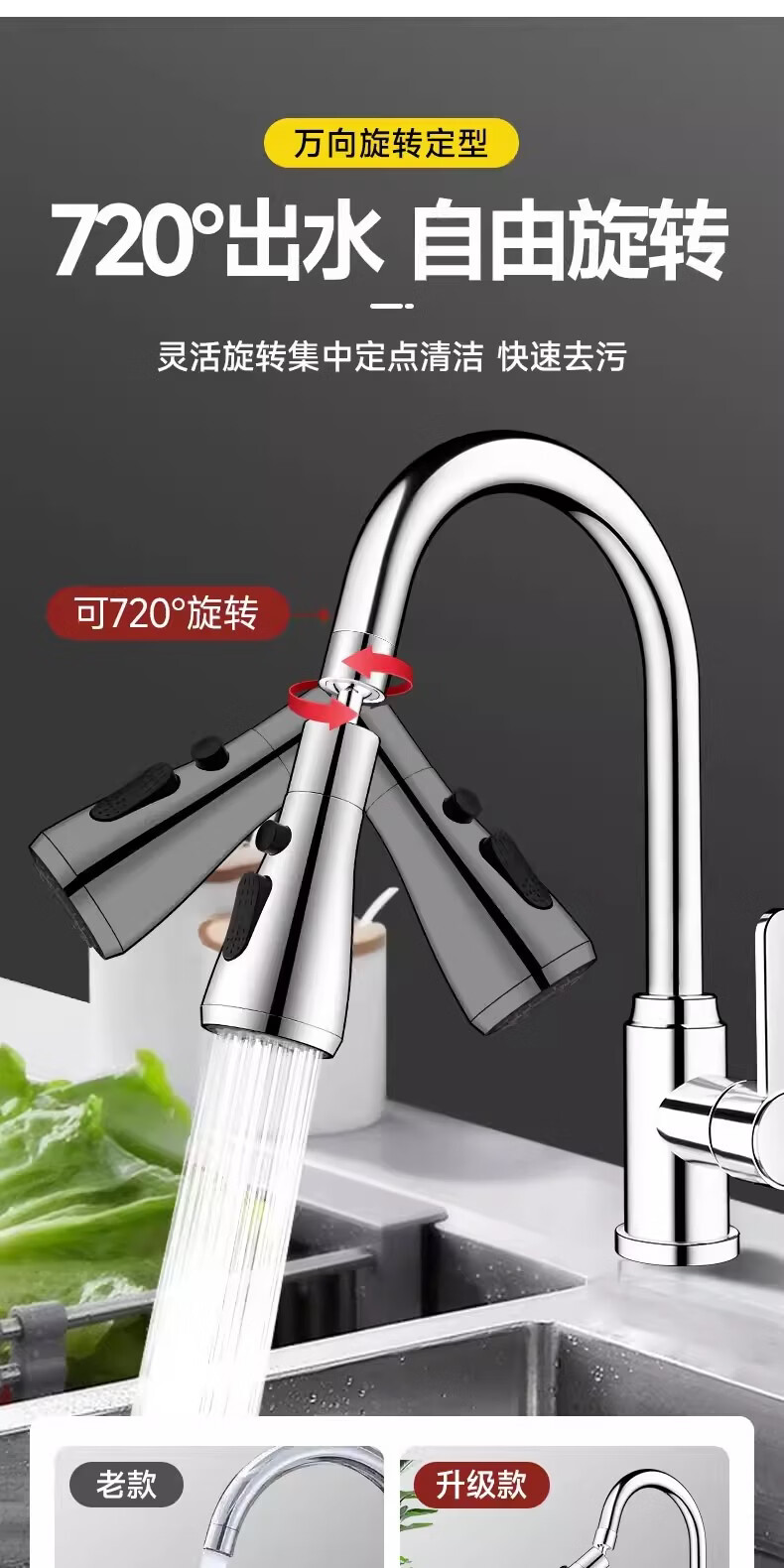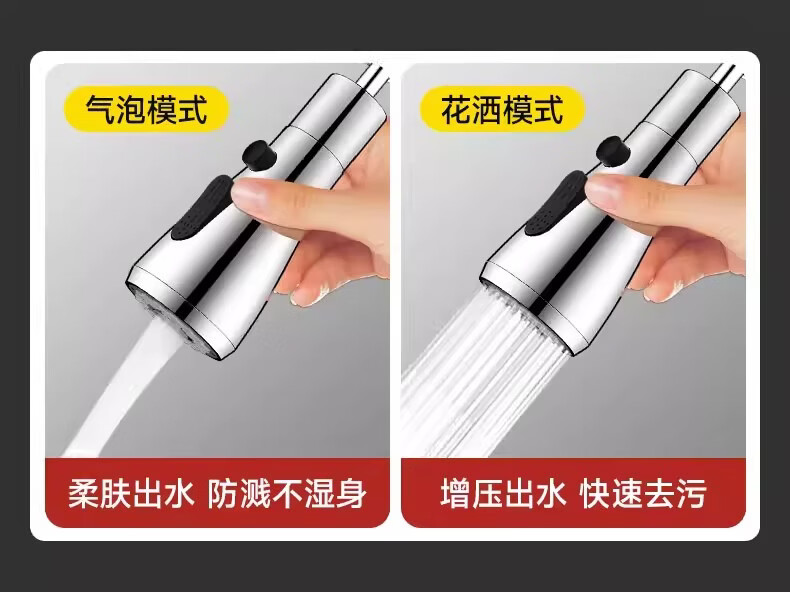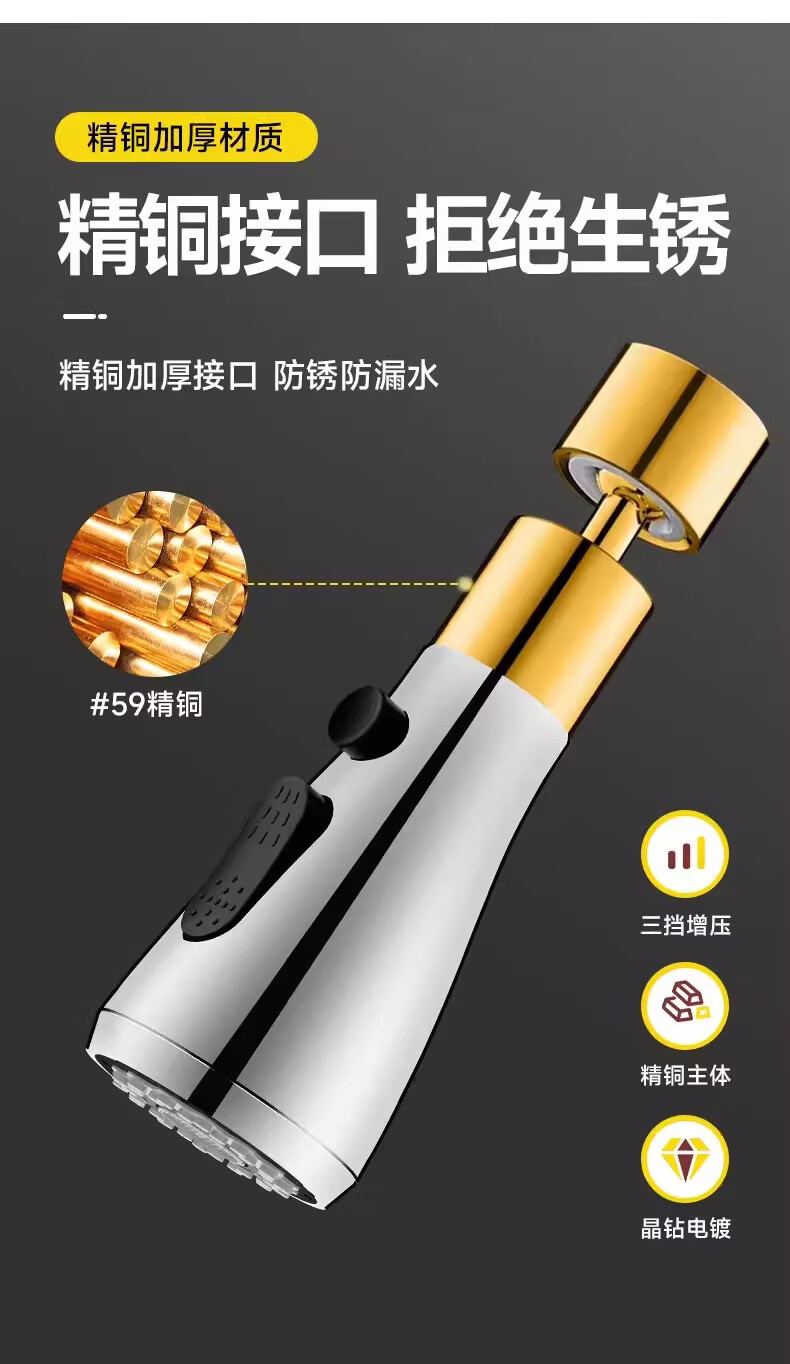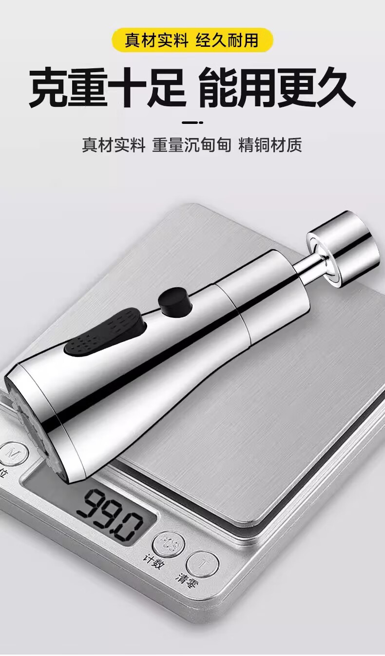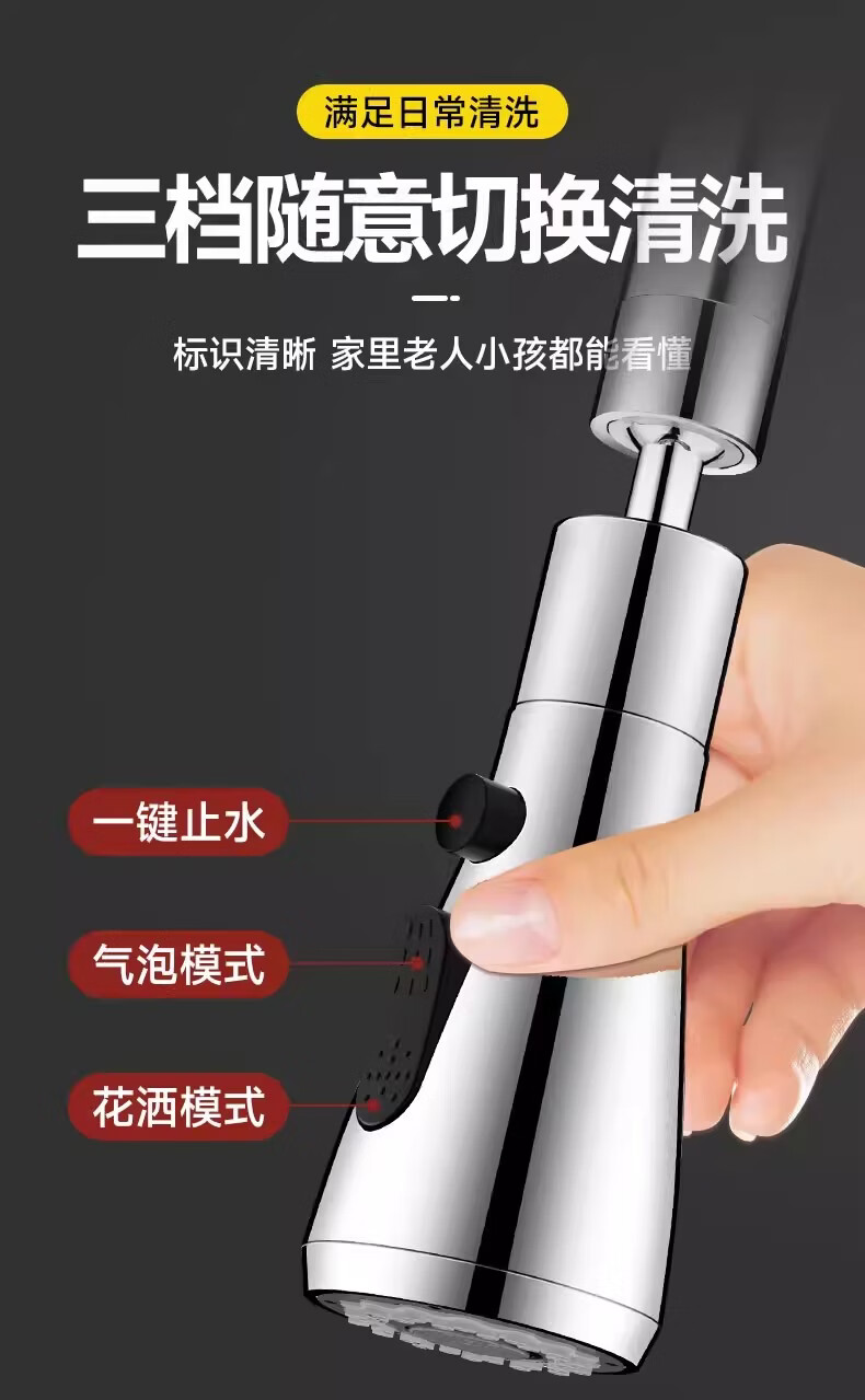睦歌(MUGE)厨房水龙头延伸器防溅水起泡器万能转接头万向水龙头防溅头水嘴 精铜接口【亮银色】三档增压防溅水龙头延伸器