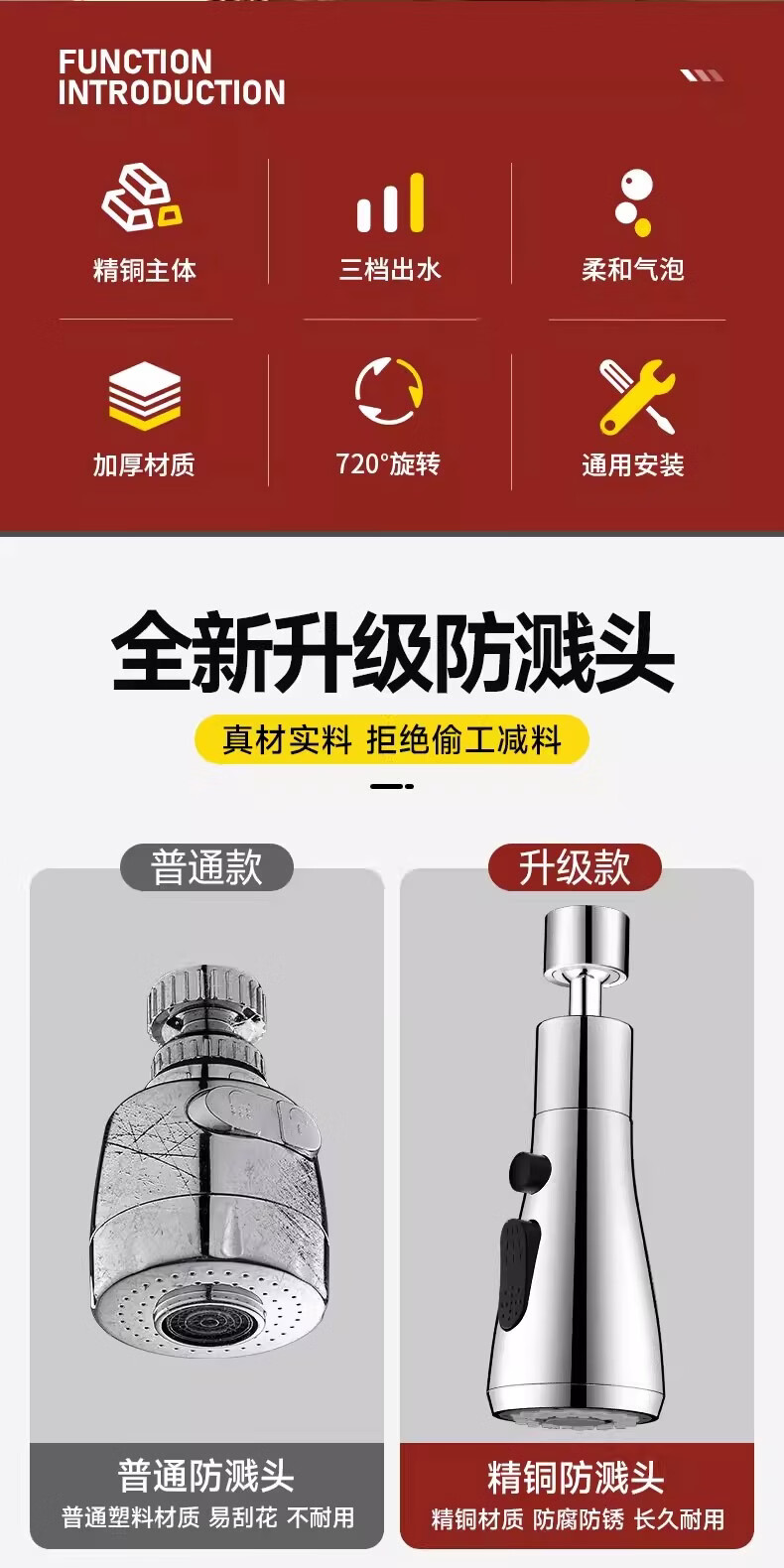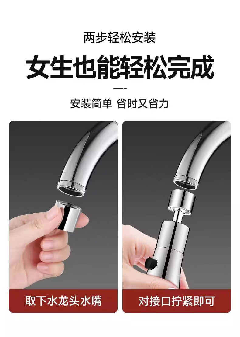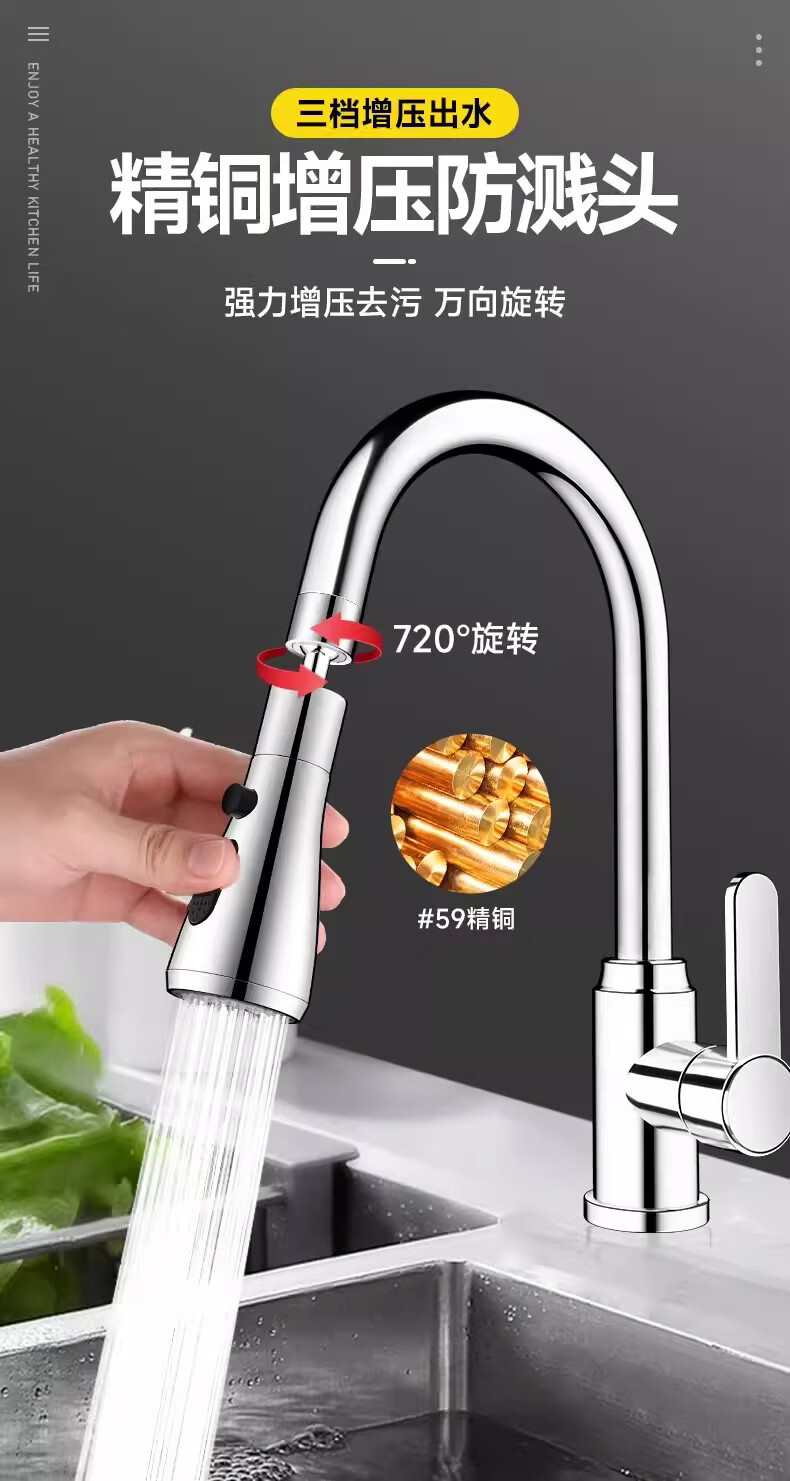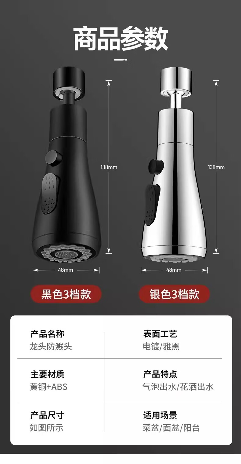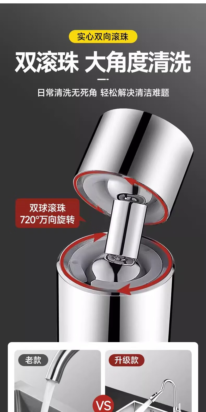 睦歌(MUGE)厨房水龙头延伸器防溅水起泡器万能转接头万向水龙头防溅头水嘴 精铜接口【亮银色】三档增压防溅水龙头延伸器