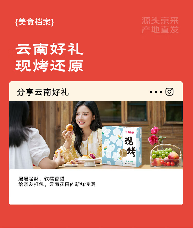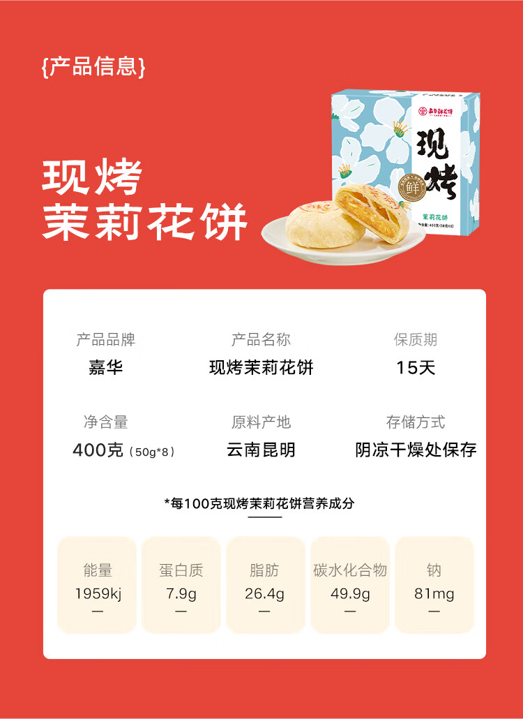 嘉华鲜花饼现烤茉莉花饼50g*8枚 糕点点心下午茶云南特产 源头直发