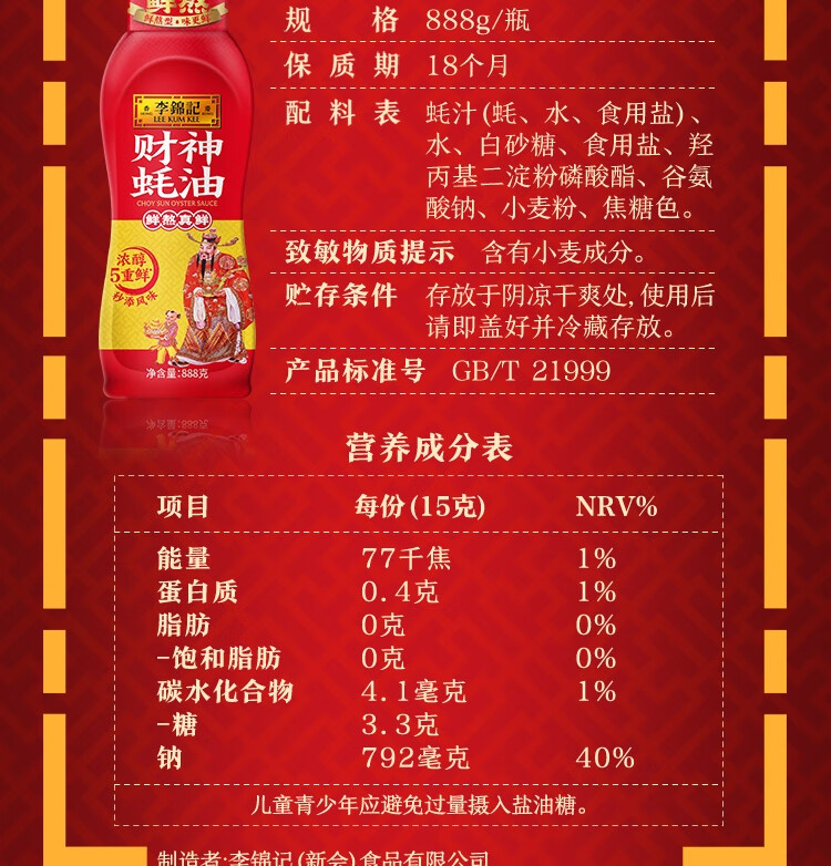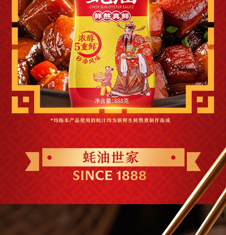 李锦记 财神蚝油888g 自然真蚝鲜 挤挤装 鲜蚝熬制 火锅拌炒上等提鲜