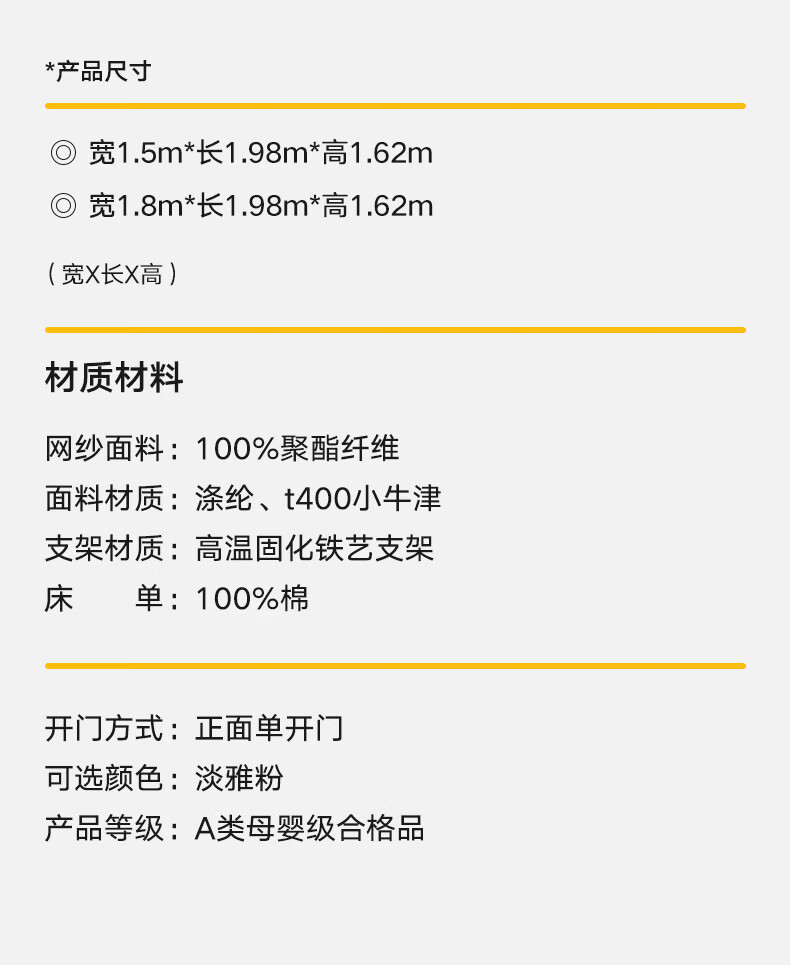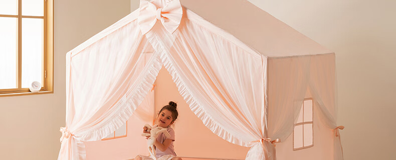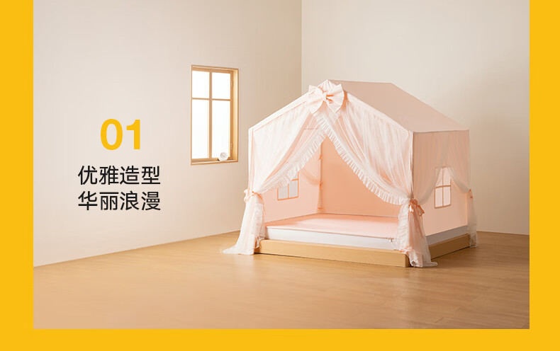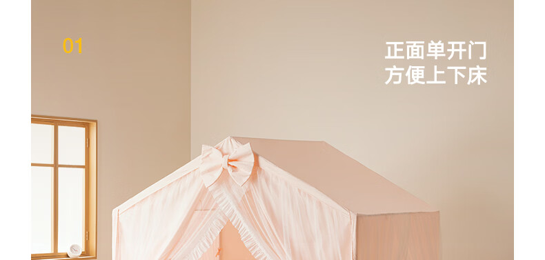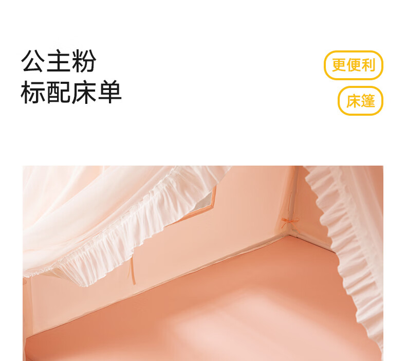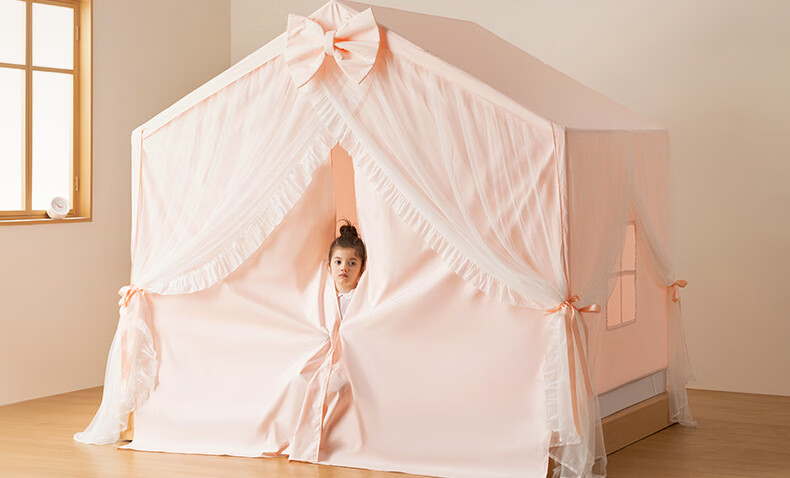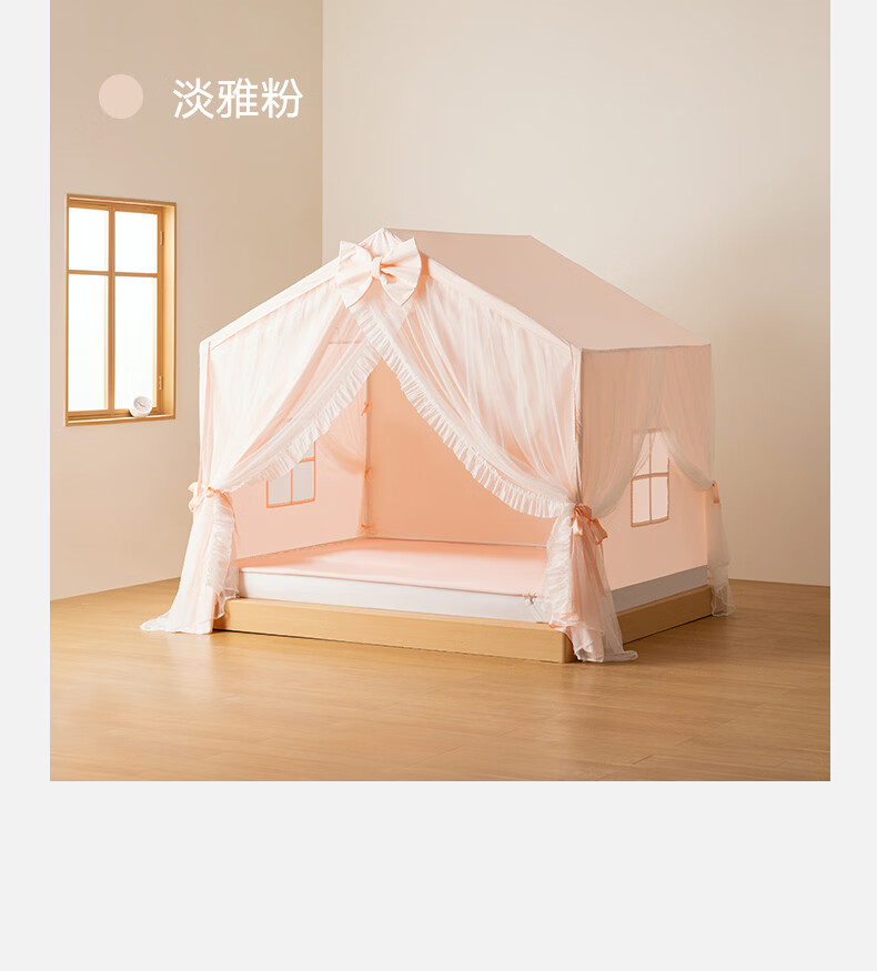 美朵嘉(MEDOGA)26新款床上帐篷A类抑菌防摔蚊帐婴儿家用加粗支架城堡室内单开门 甜心公主 淡雅粉【床篷】高质感 抗皱免熨烫 180*198*162【适用1.8米床】