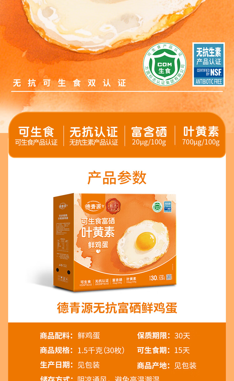 德青源可生食富硒叶黄素鲜鸡蛋30枚1.5kg 无抗生素 家庭年货礼盒