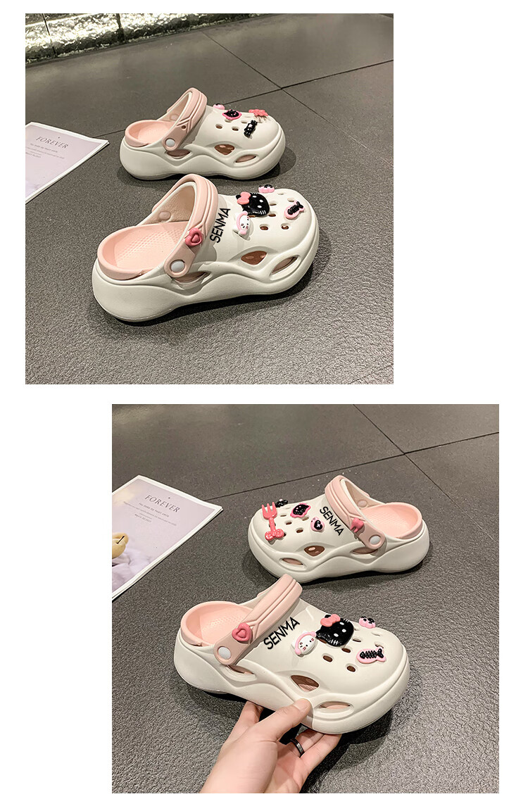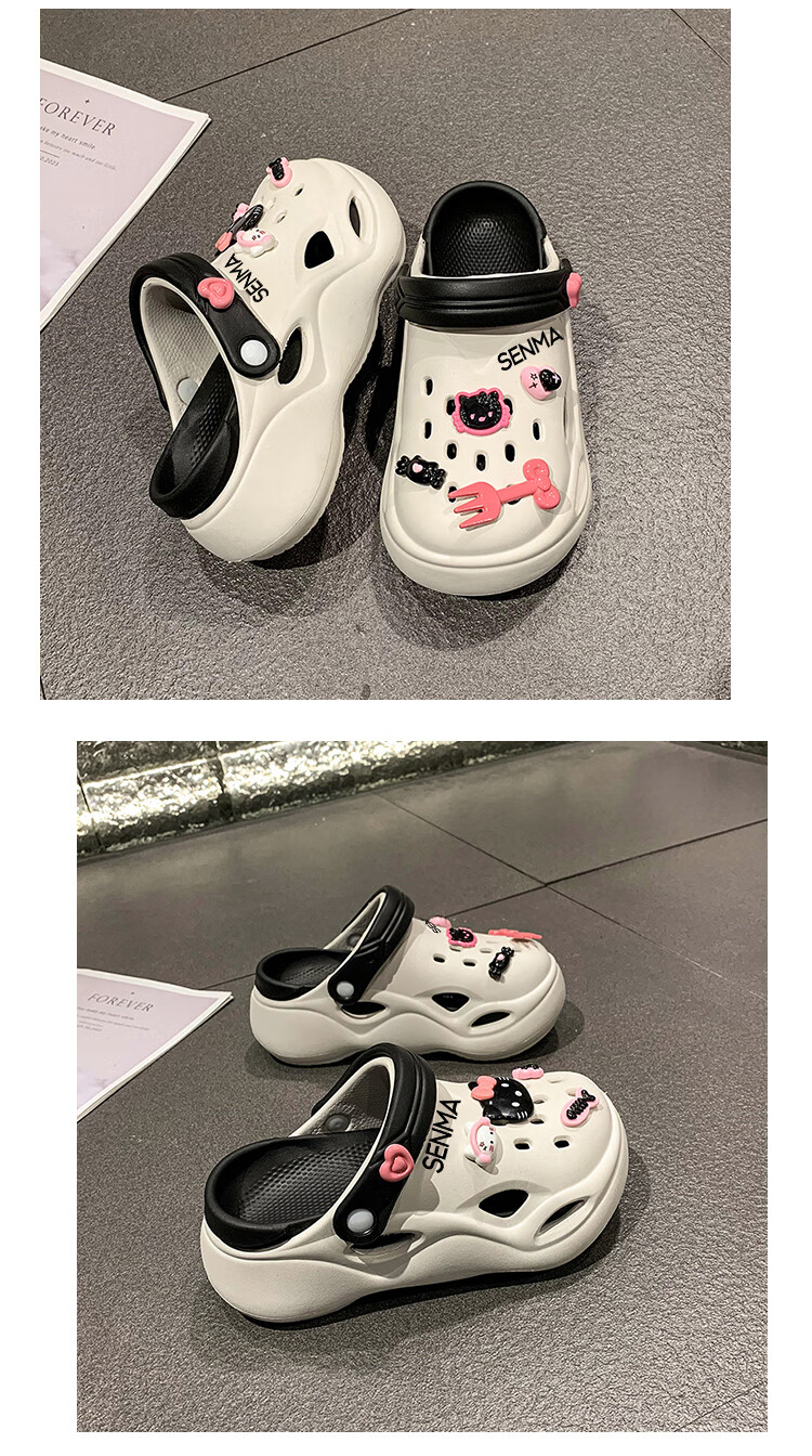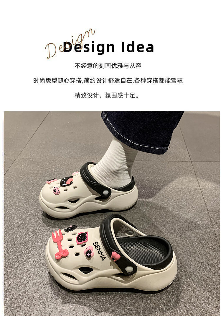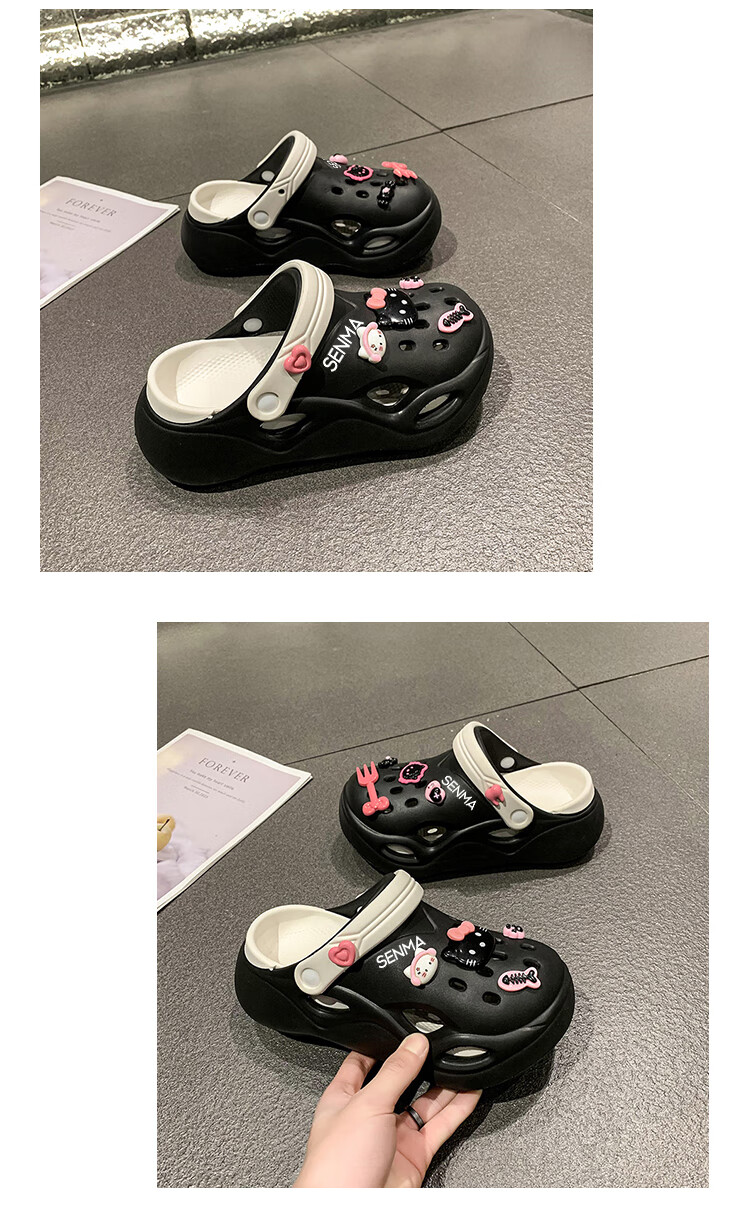 森馬洞洞鞋女款夏季休闲外穿防滑防臭运动踩屎感包头厚底增高沙滩凉拖 白黑【升级款】 35-36 【现货速发】