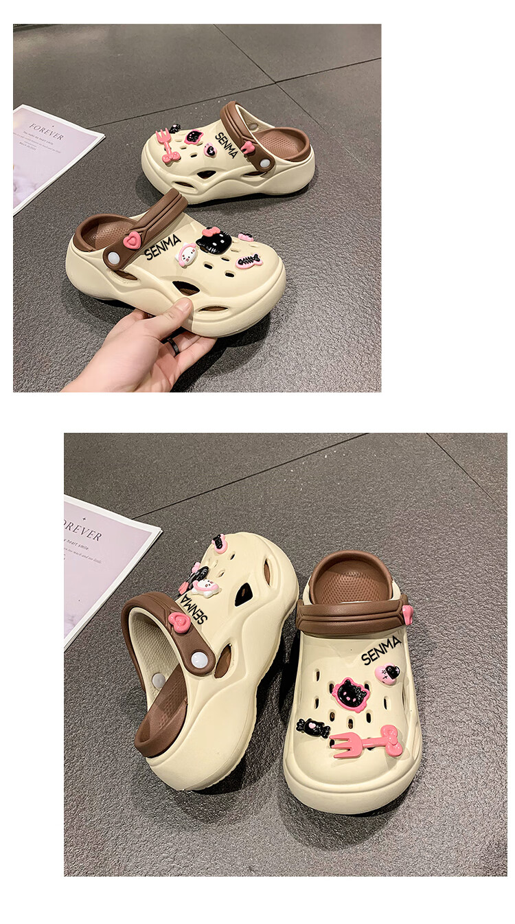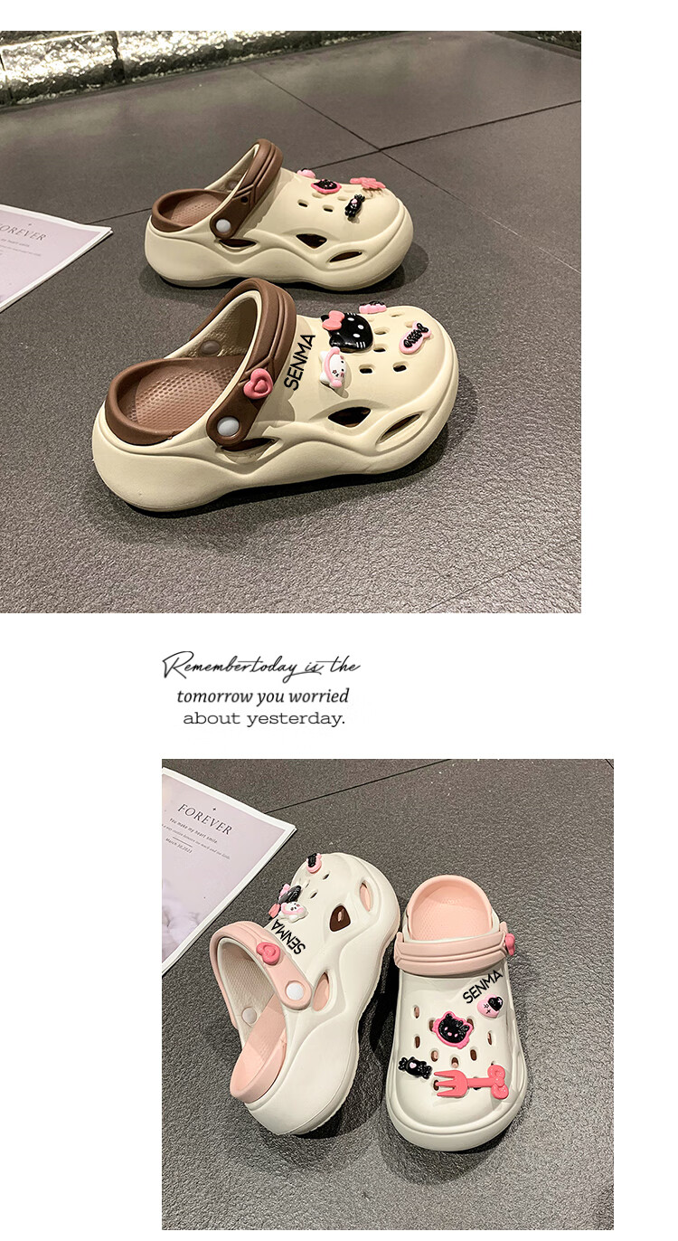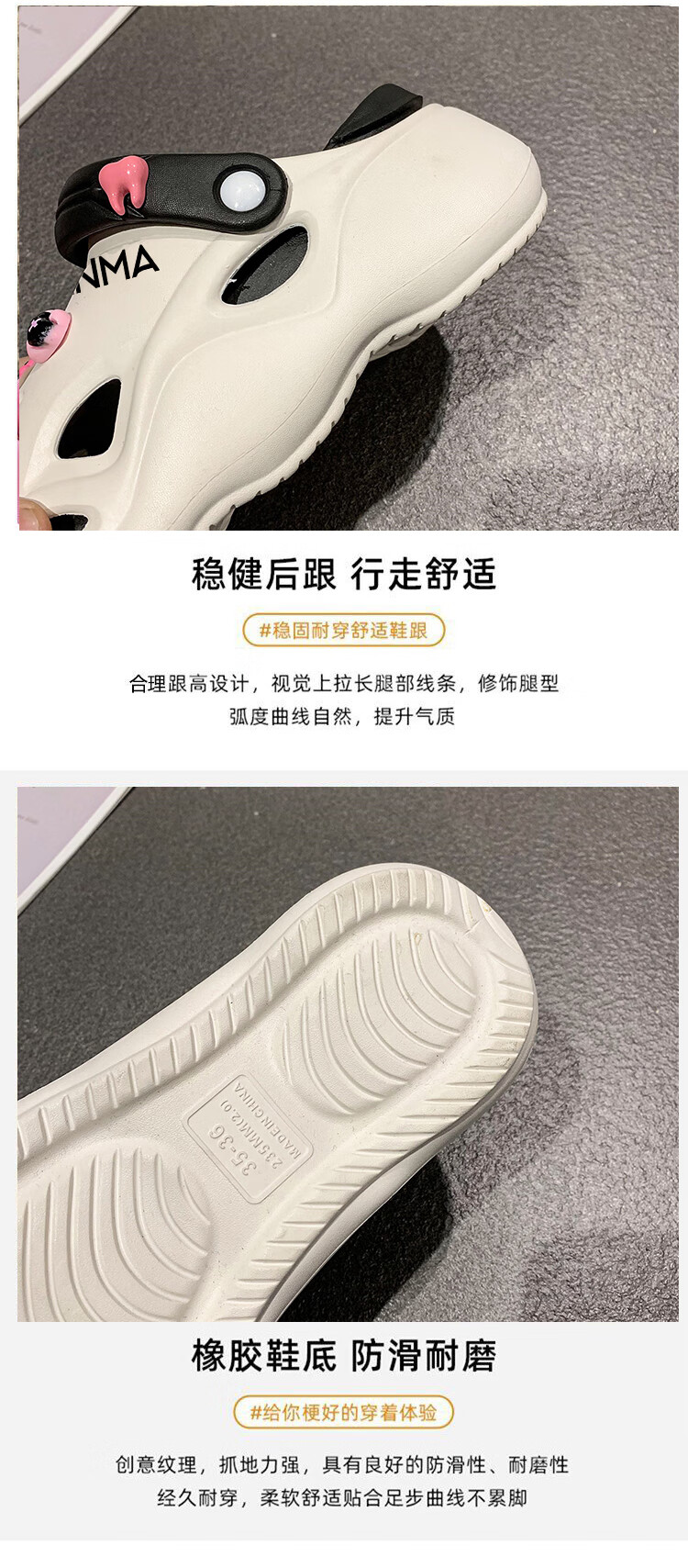 森馬洞洞鞋女款夏季休闲外穿防滑防臭运动踩屎感包头厚底增高沙滩凉拖 白黑【升级款】 35-36 【现货速发】