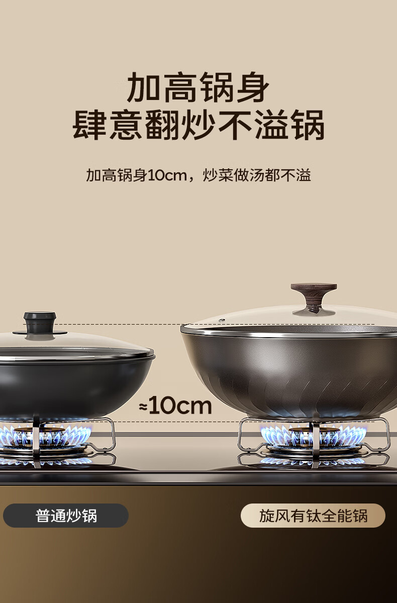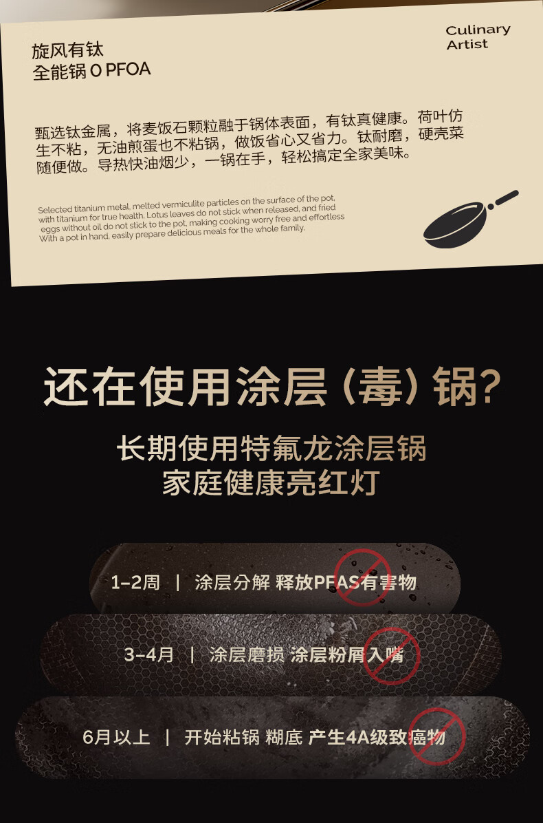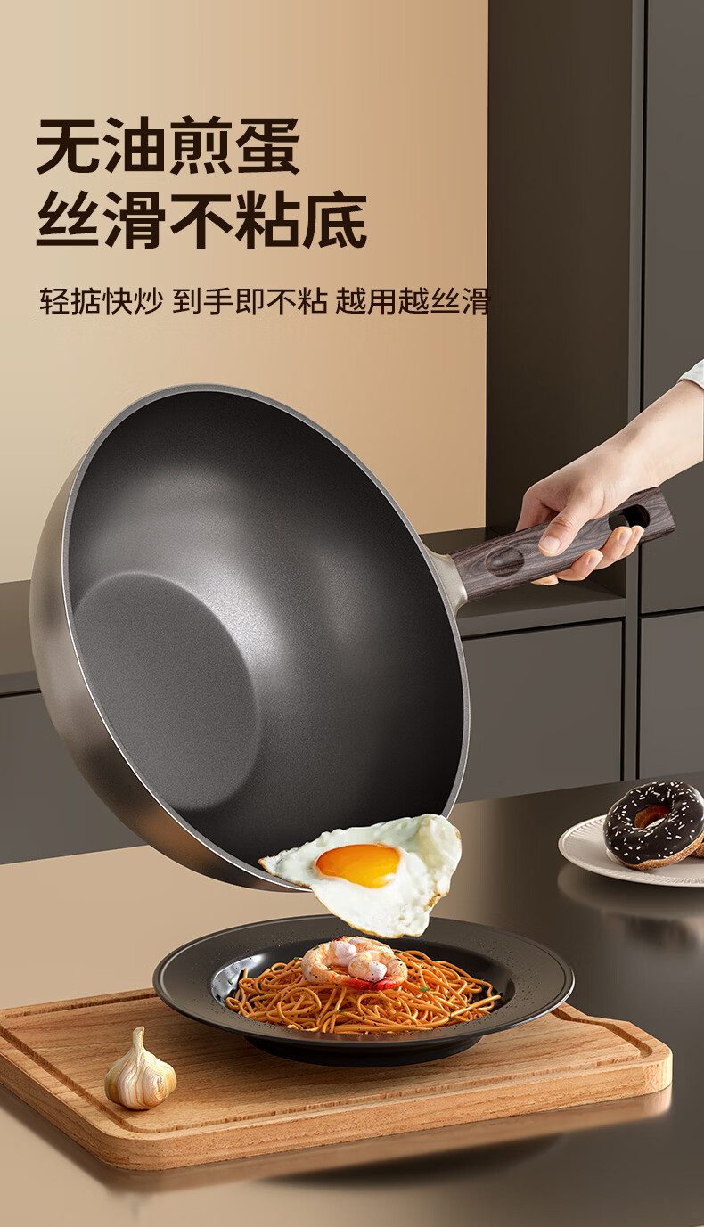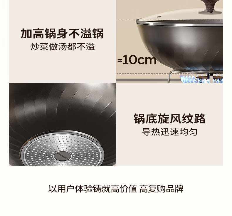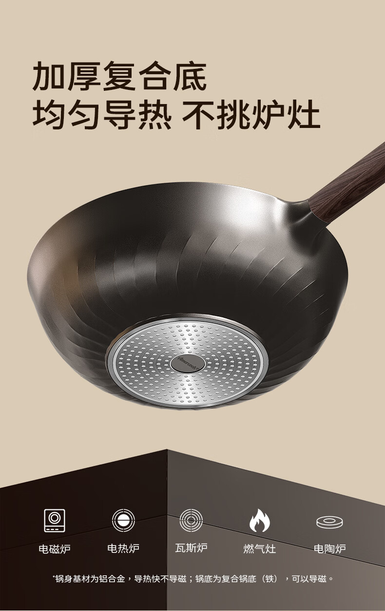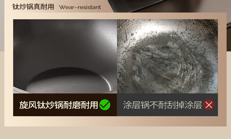 Amercook钛炒锅不粘锅麦饭石炒菜锅平底炒锅家用炒勺电磁炉燃气灶专用