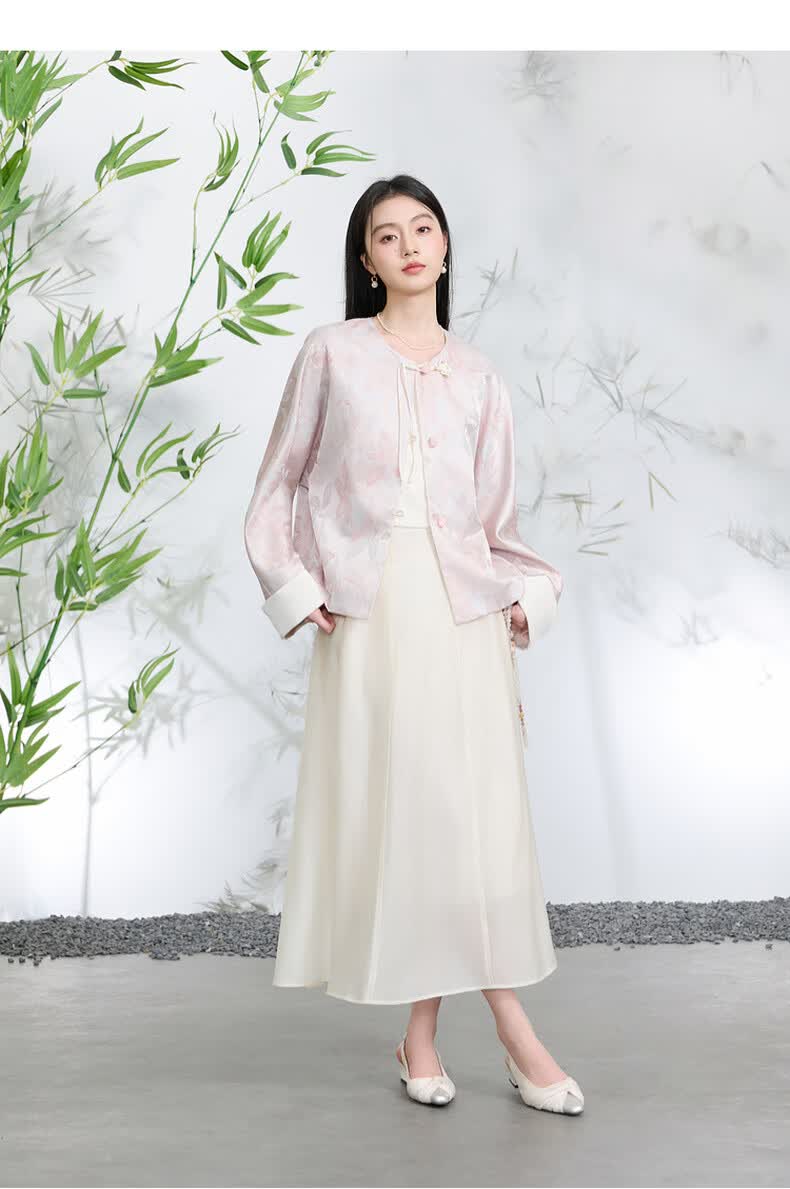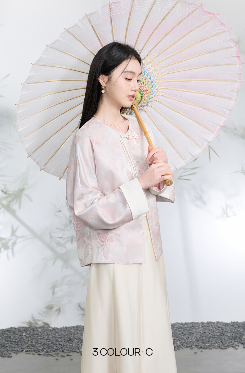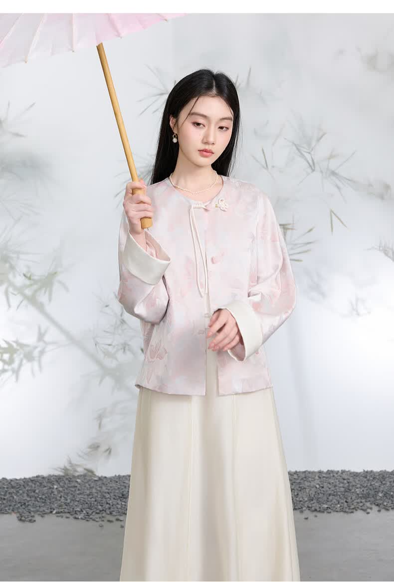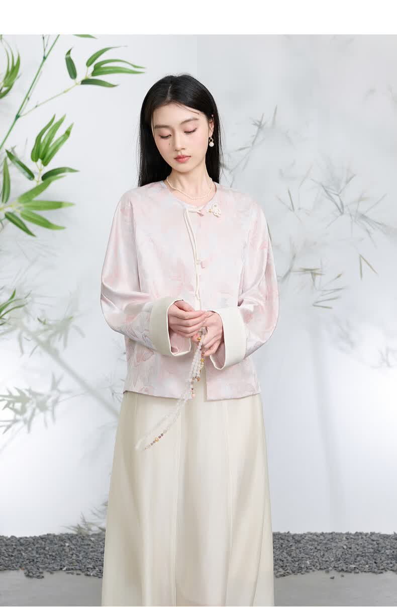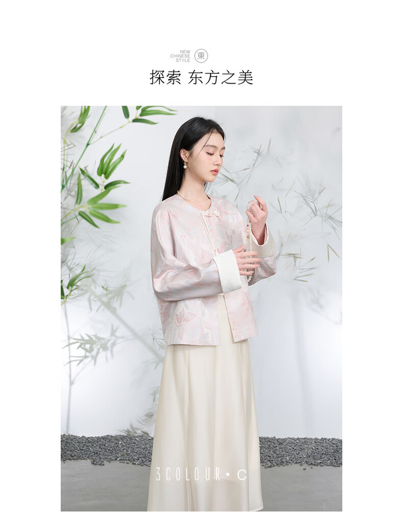 三彩【浮光花影】2026春季新款新中式提花外套盘扣开衫宽松C