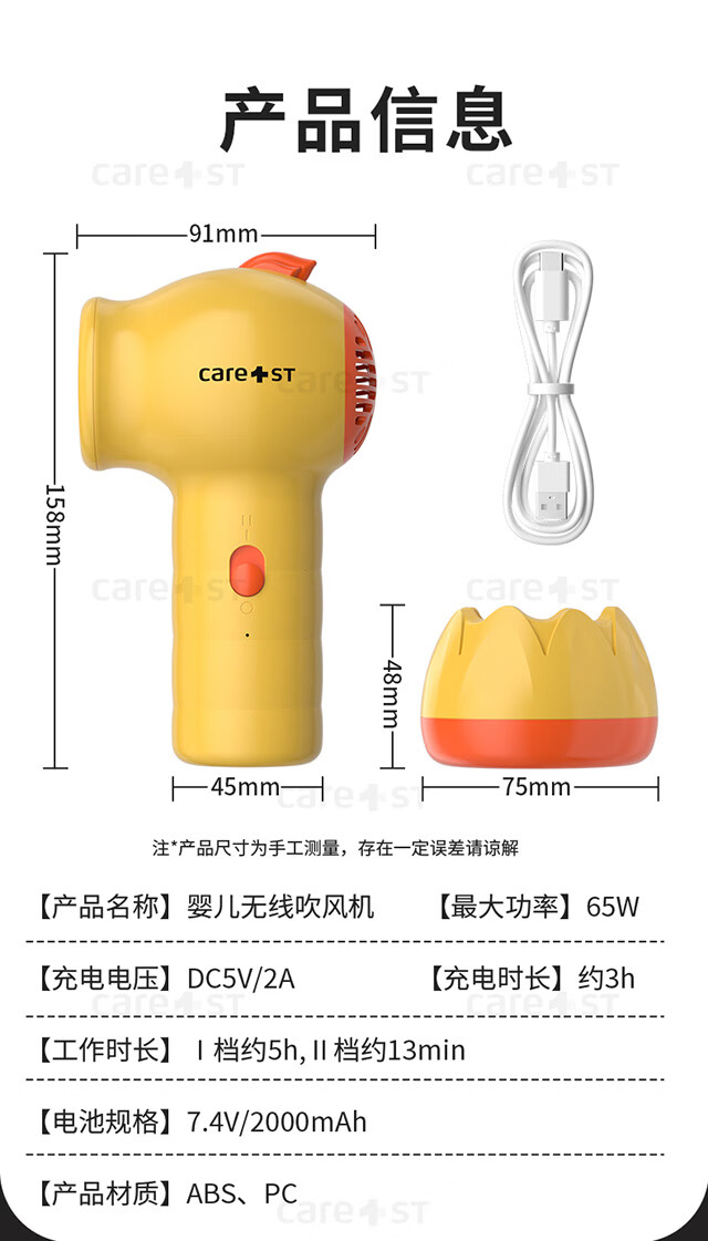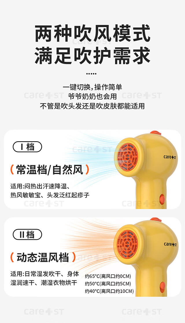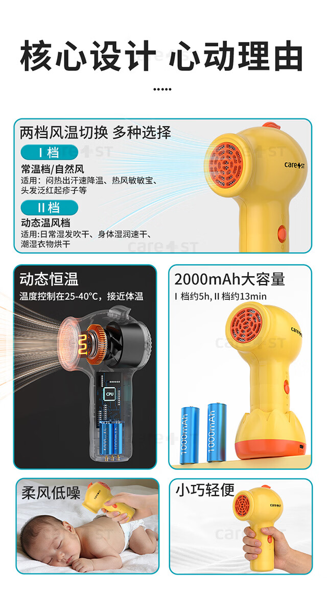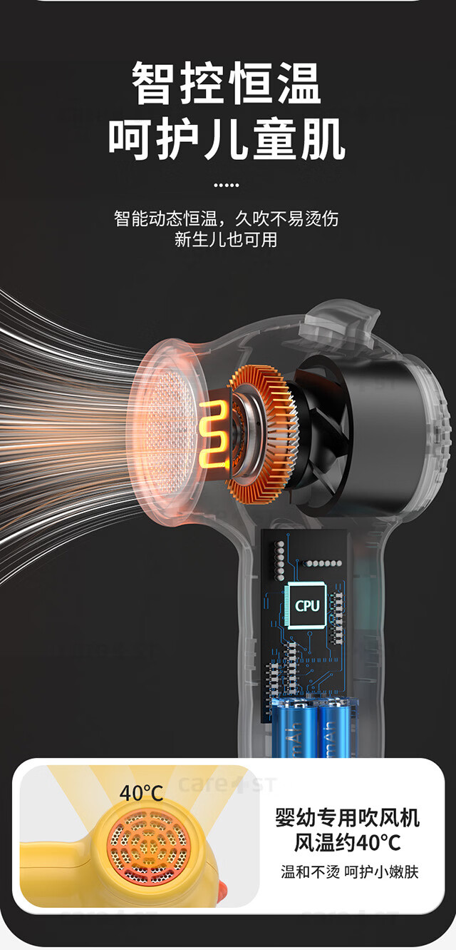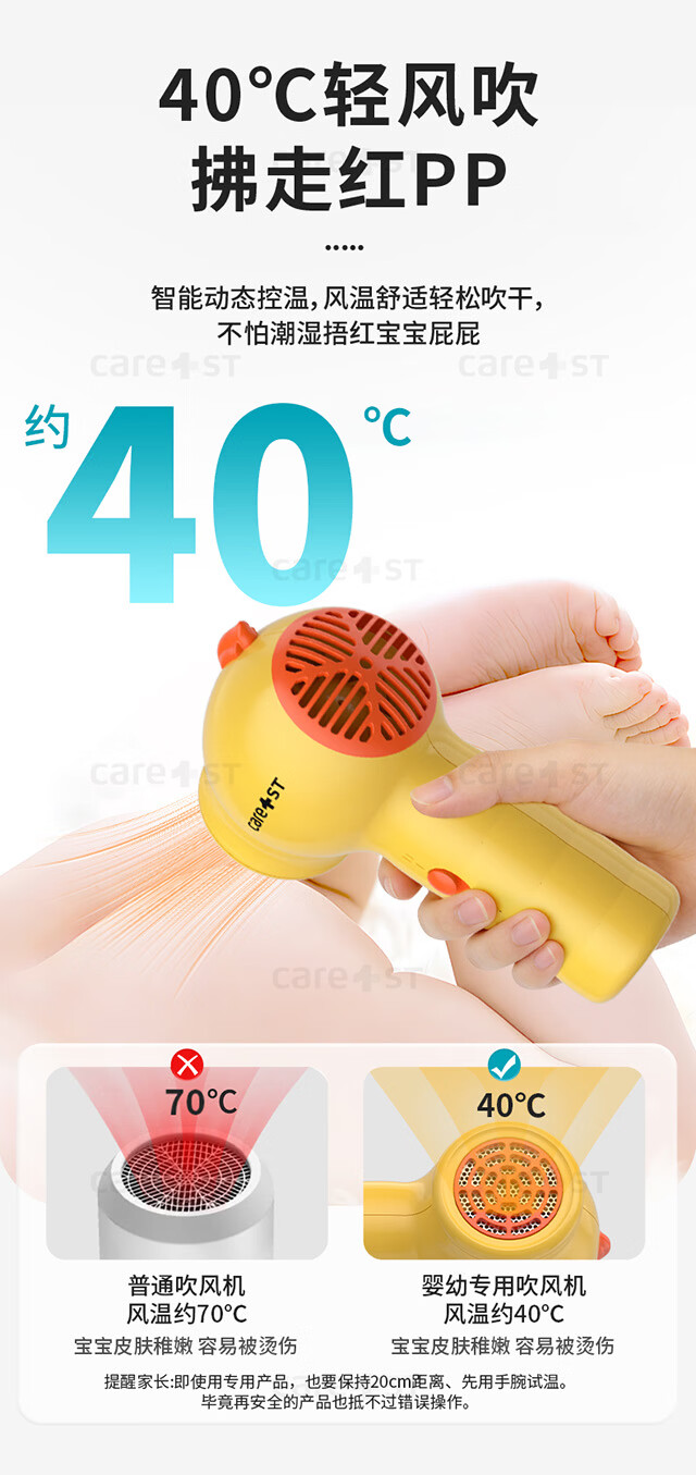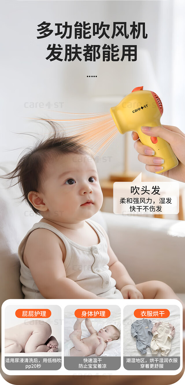 Care1st嘉卫士婴儿吹风机无线吹屁屁儿童宝宝专用电吹风低辐射恒温