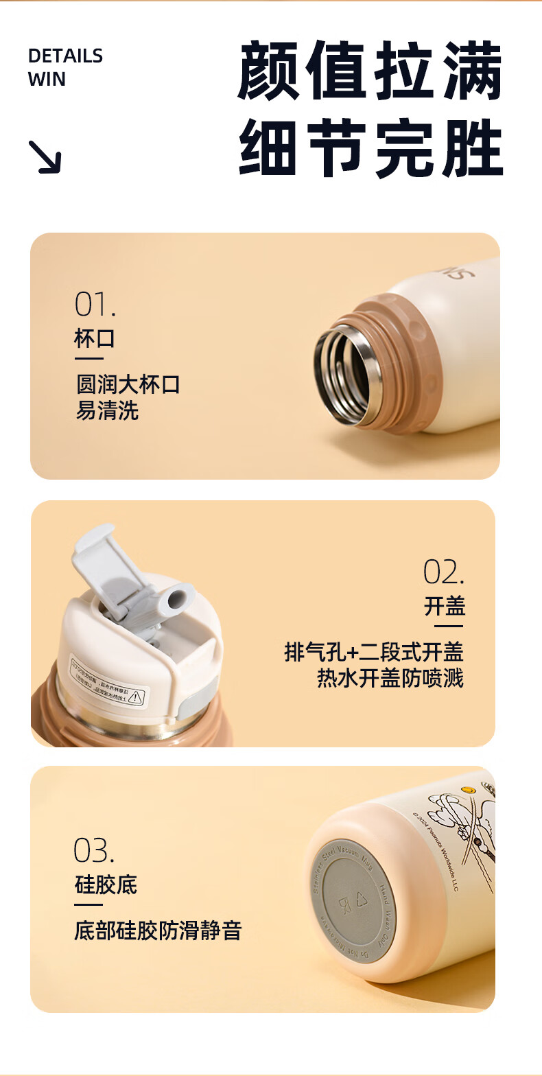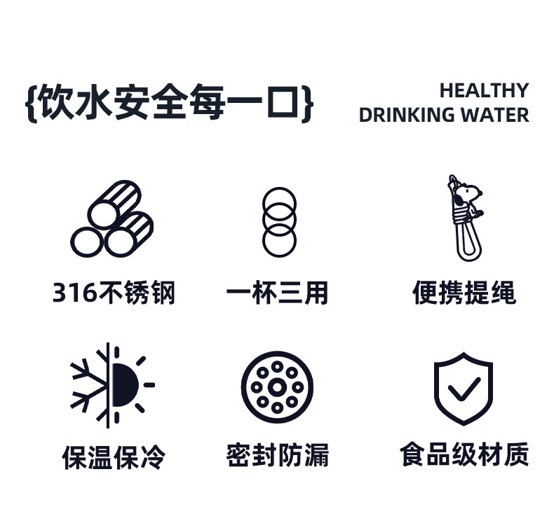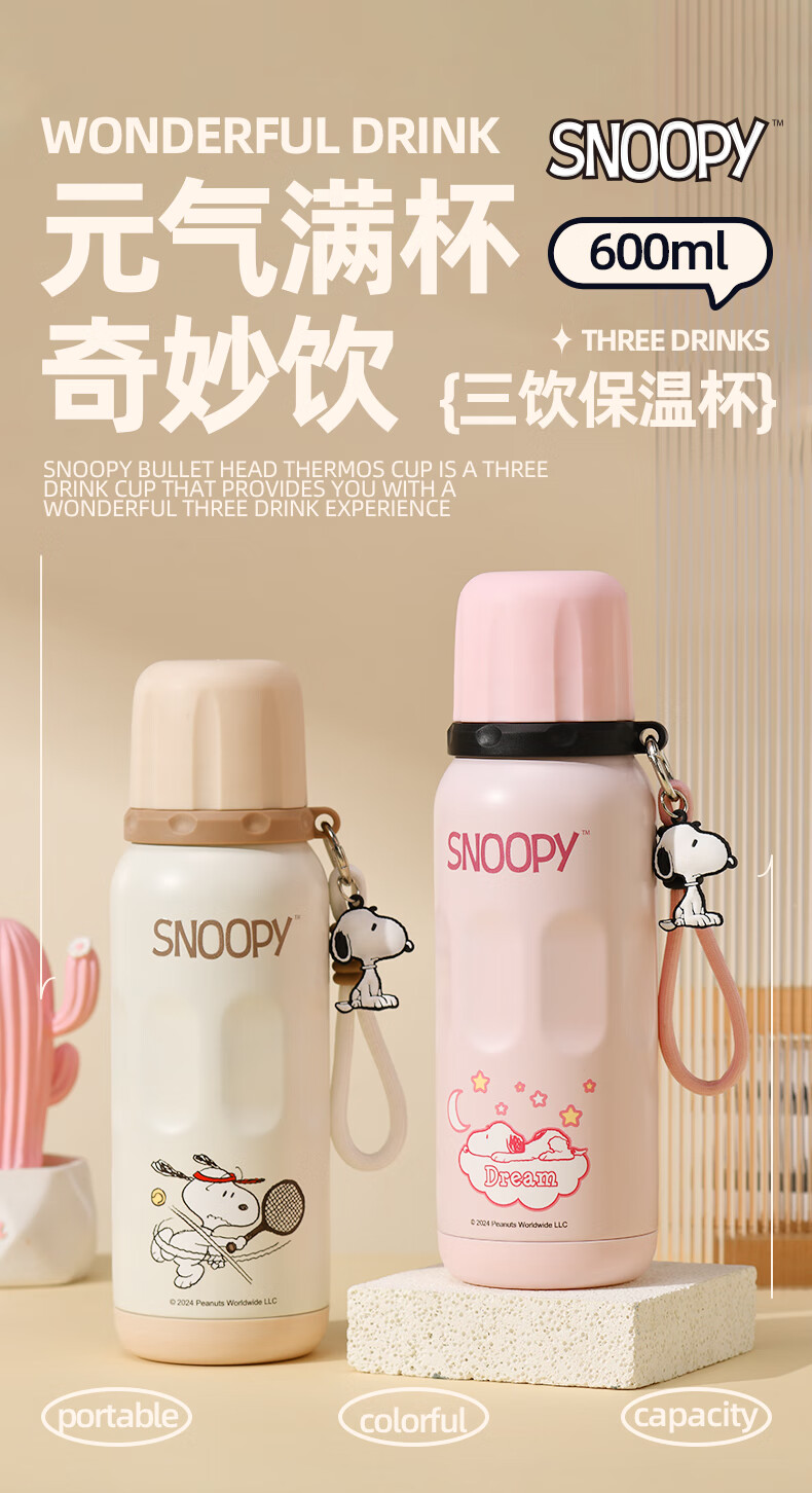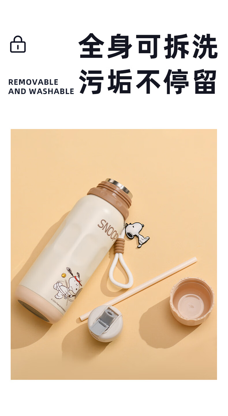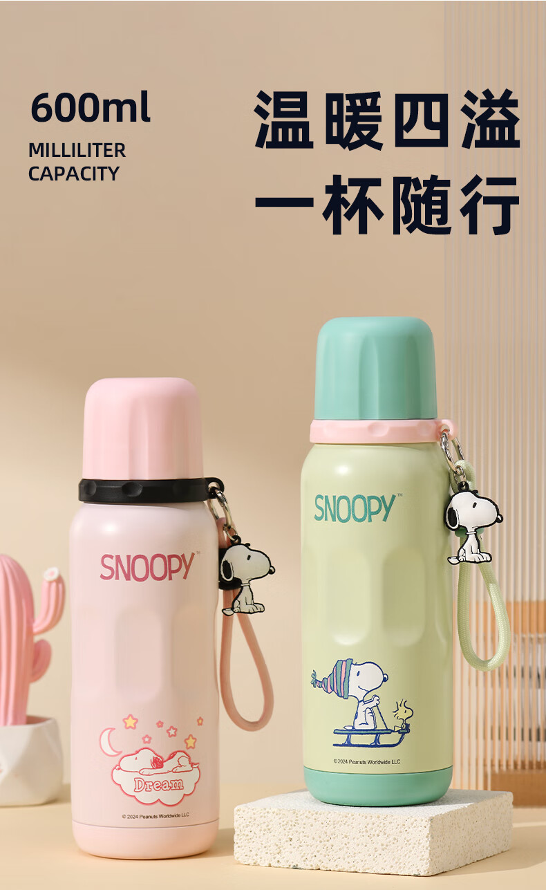 史努比保温杯316不锈钢大容量男女小学生上学专用耐摔便携吸管儿童水杯