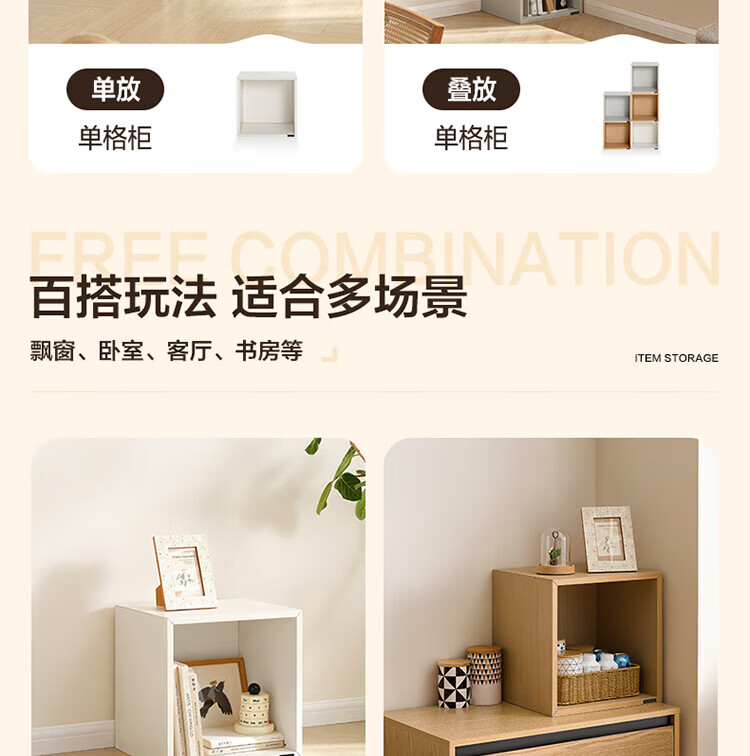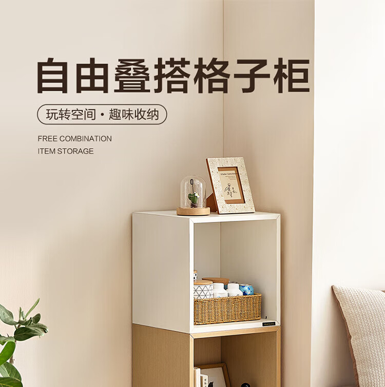 全友家居置物架落地客厅家用角柜卧室零食收纳储物柜子书架家具710KD 象牙白|单格柜
