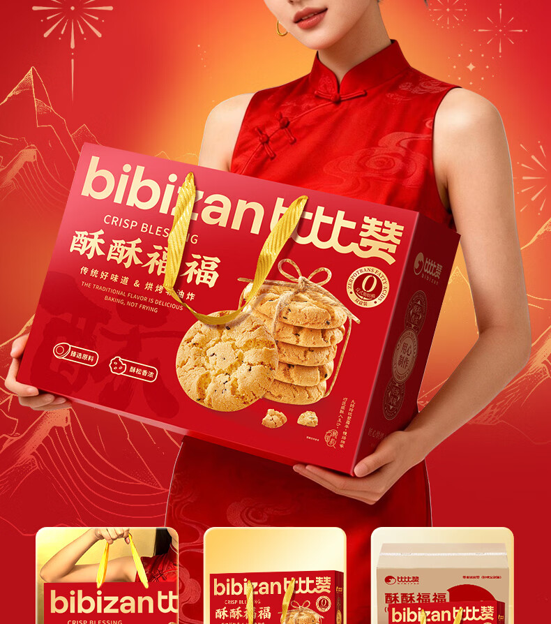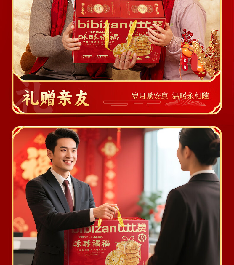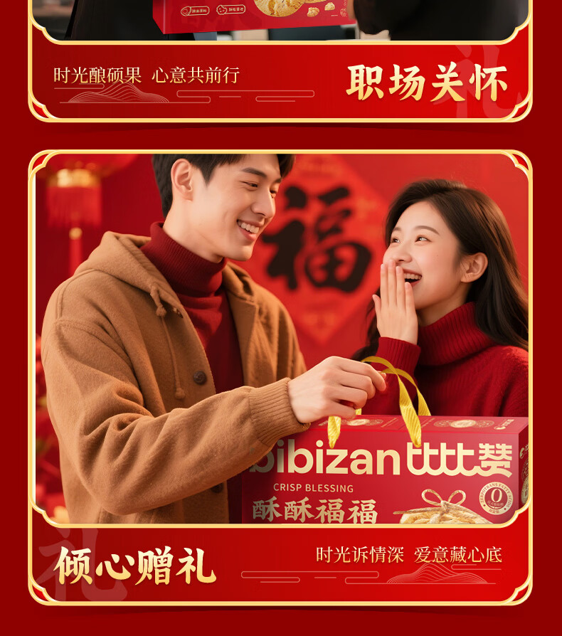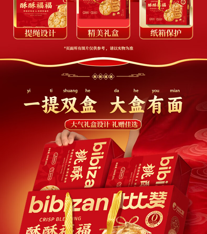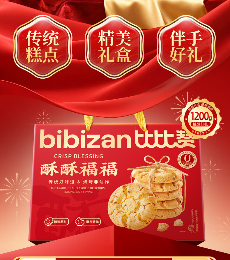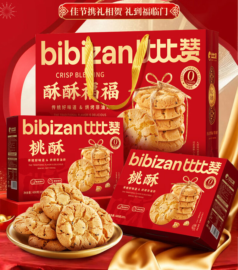 比比赞(BIBIZAN)桃酥年货大礼盒1.2kg新春节日团购送礼面包饼干点心休闲零食品