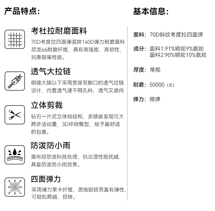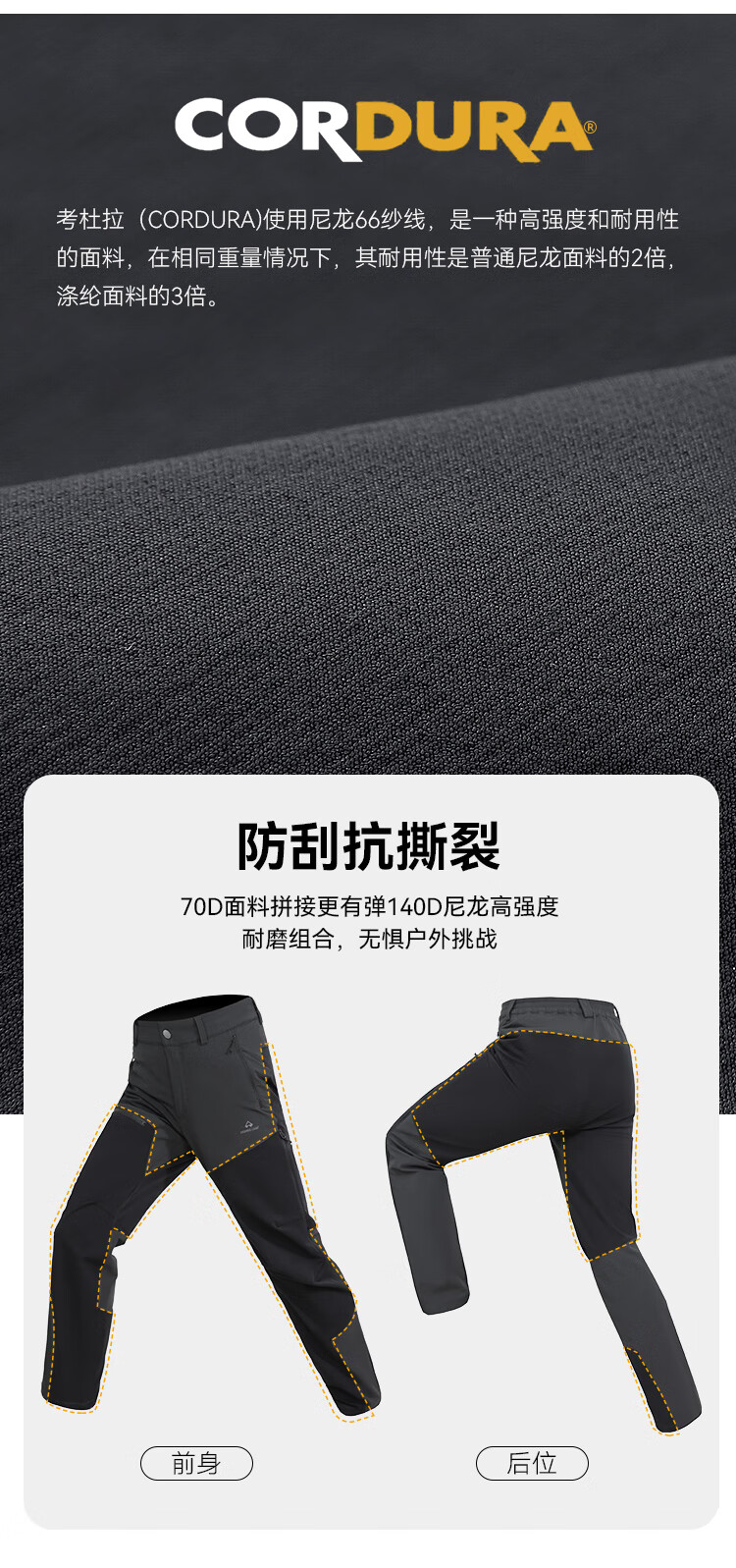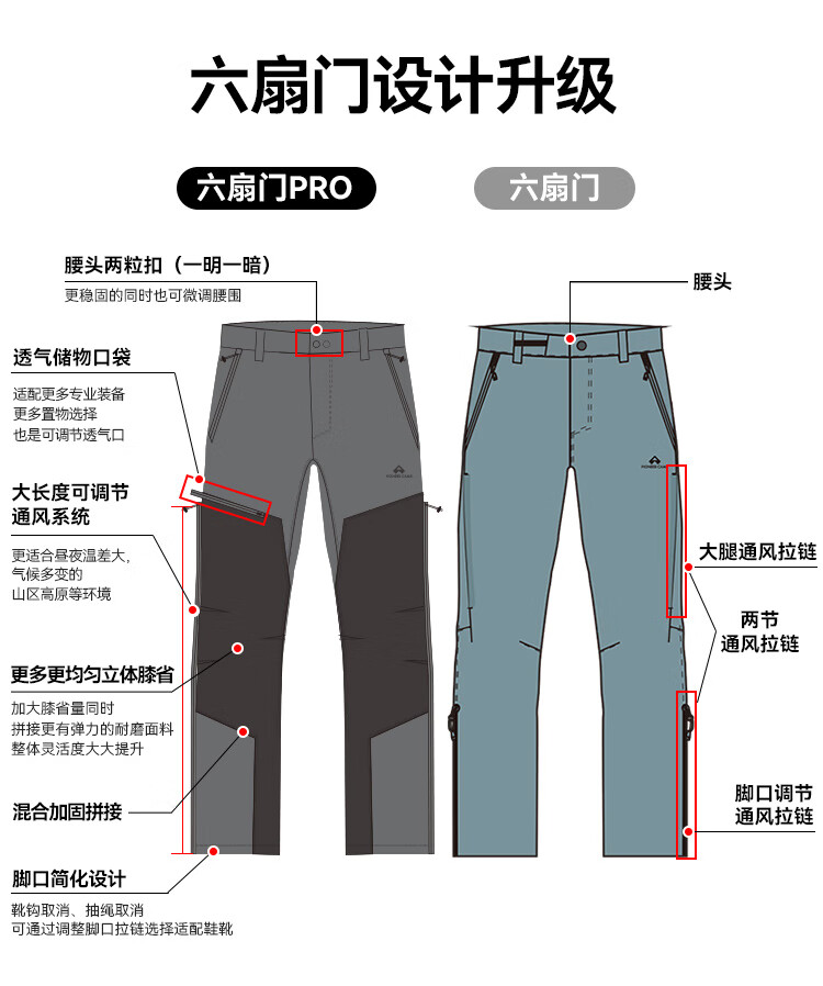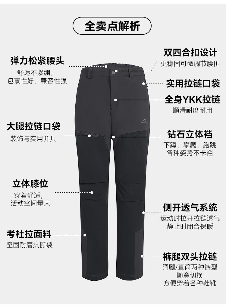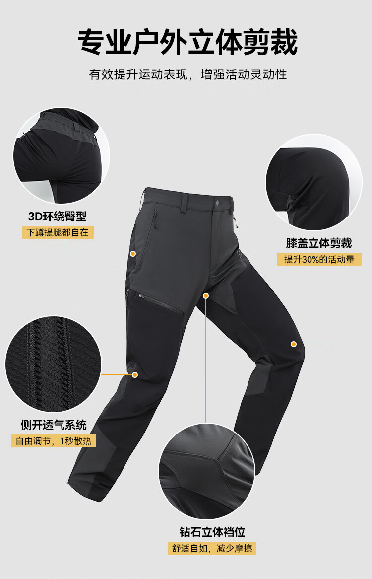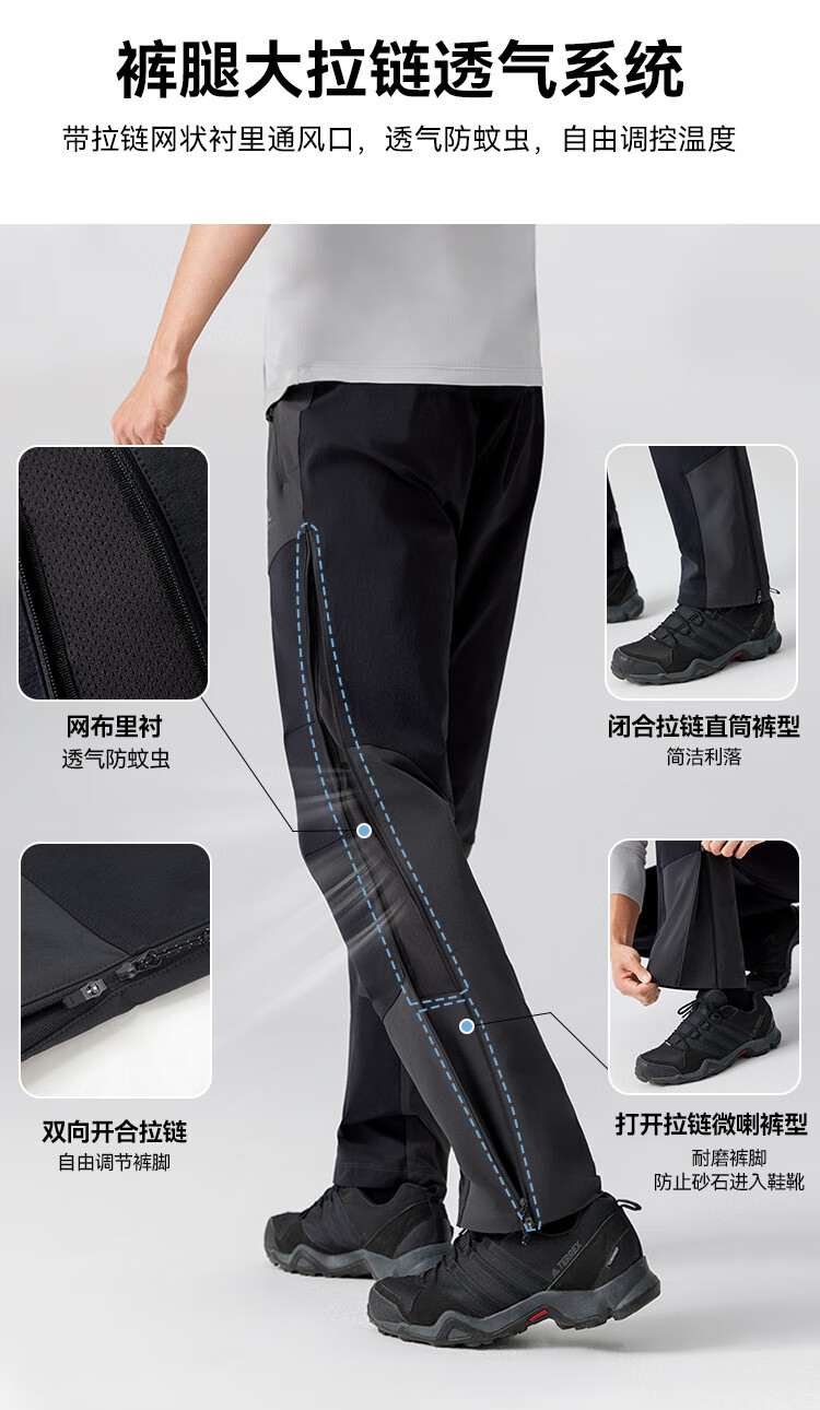拓路者【六扇门PRO】三季款考杜拉直筒休闲长裤男士两侧拉链透气户外裤 黑色 三季款 L
