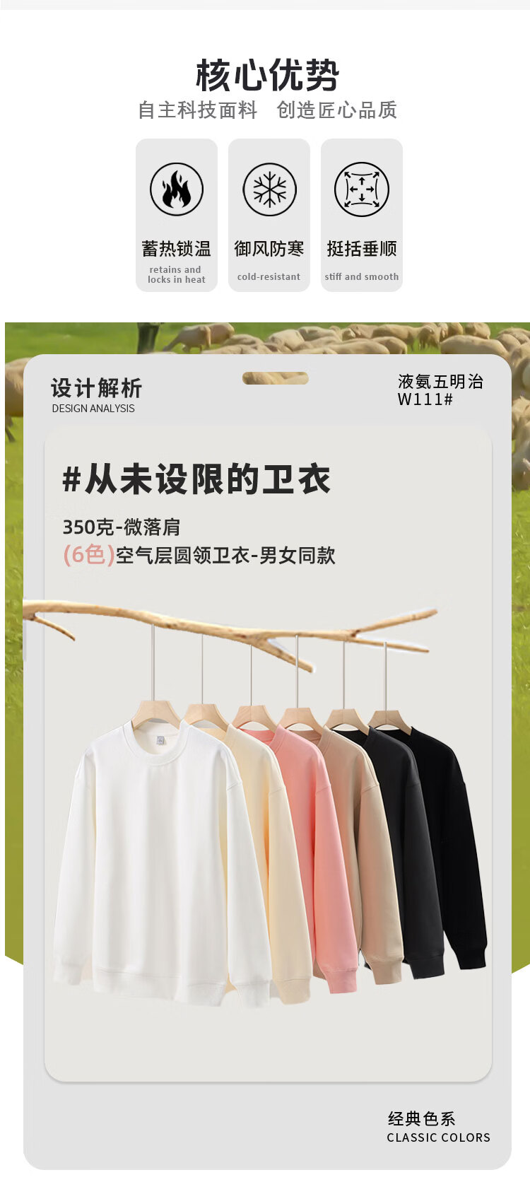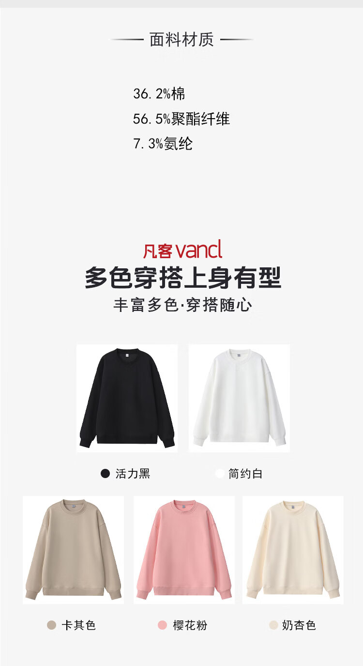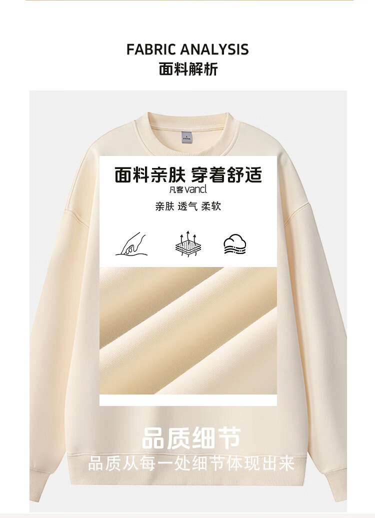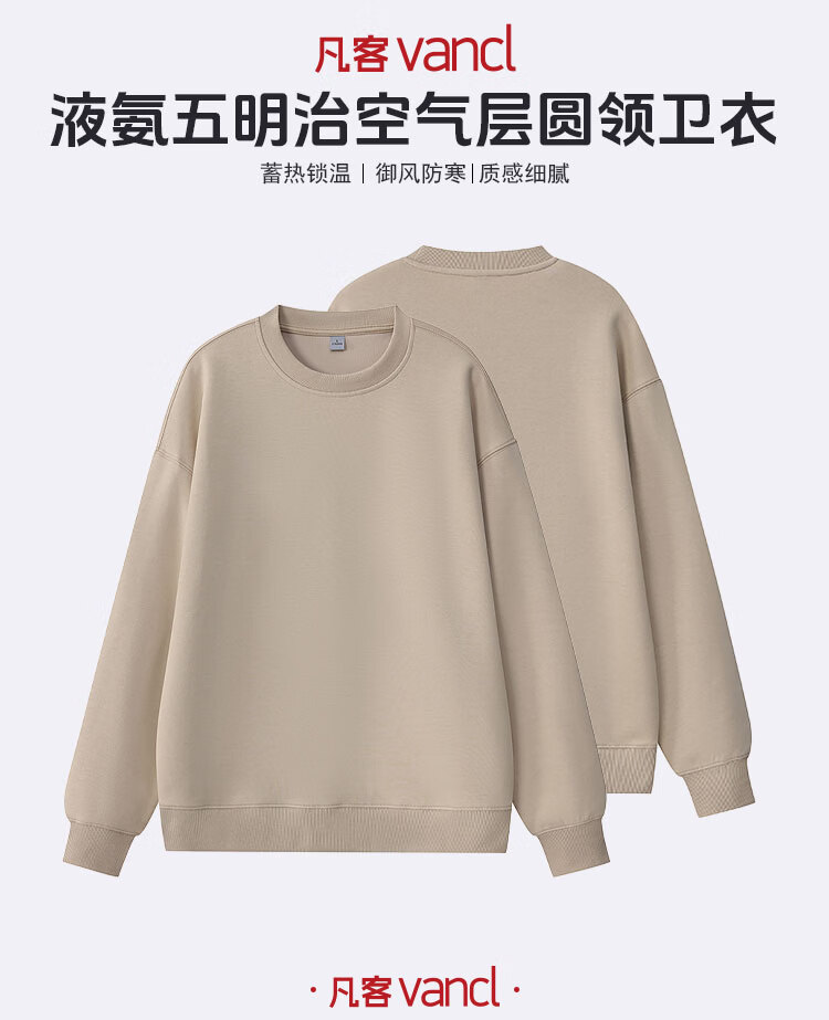 凡客诚品(VANCL)凡客液氨五明治空气层圆领卫衣休闲长袖 简约白 XL