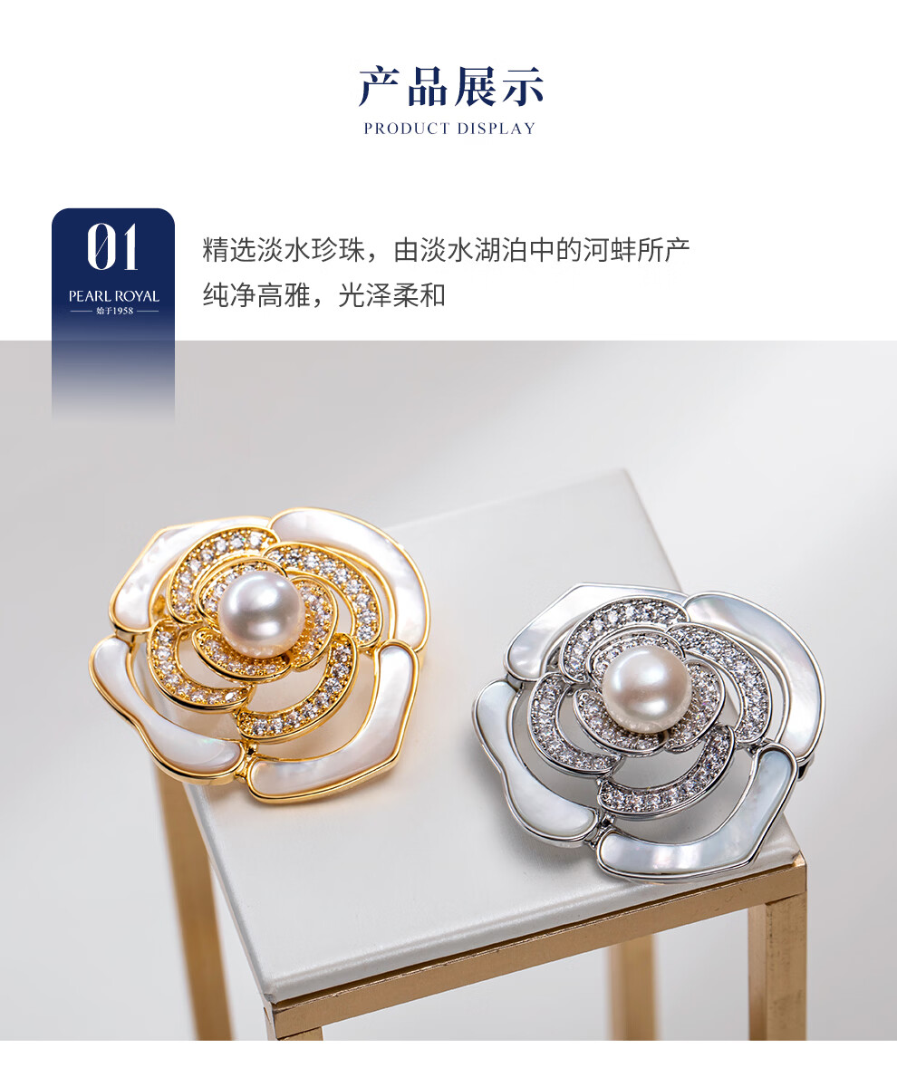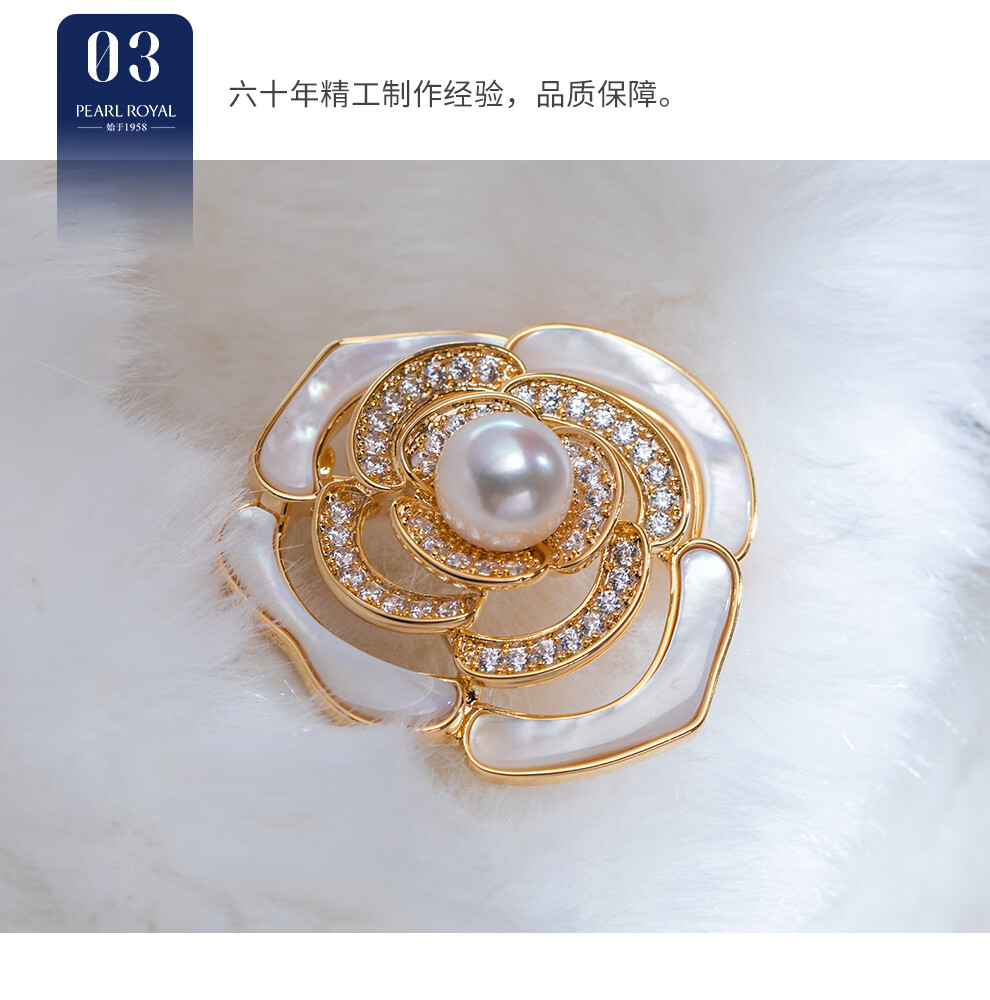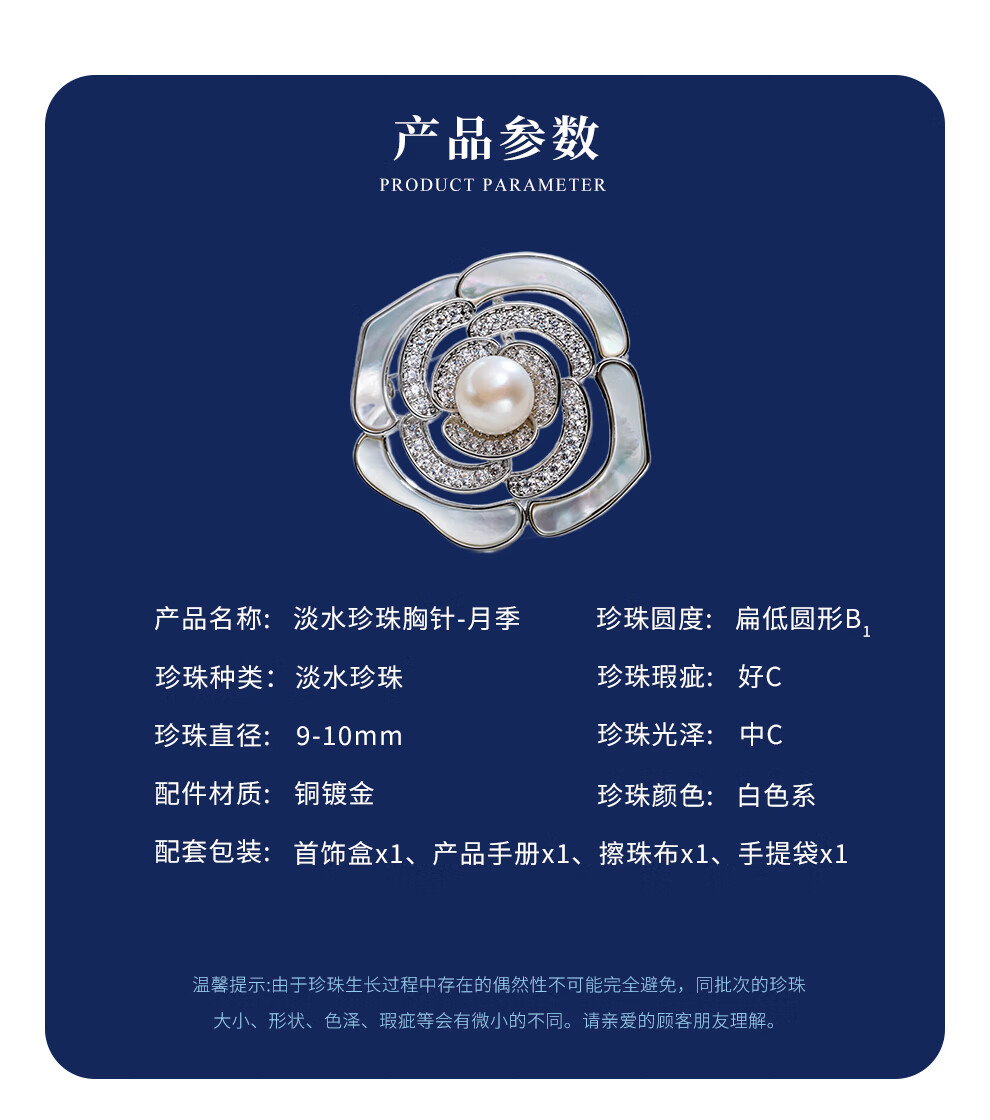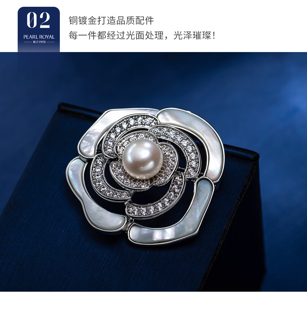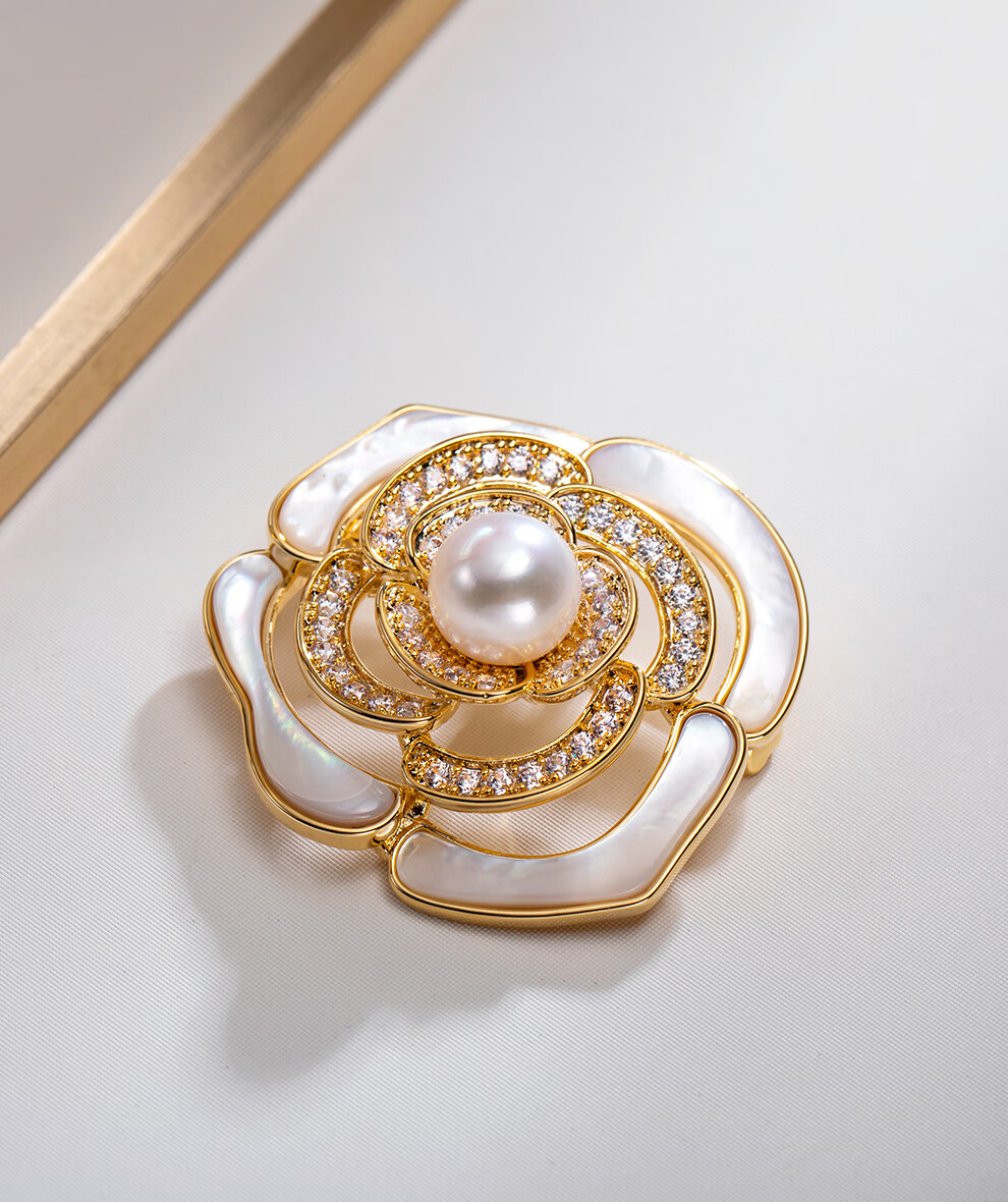 南珠宫淡水珍珠胸针月季胸花简约百搭秋冬款生日礼物女 9.0-10.0mm 银色