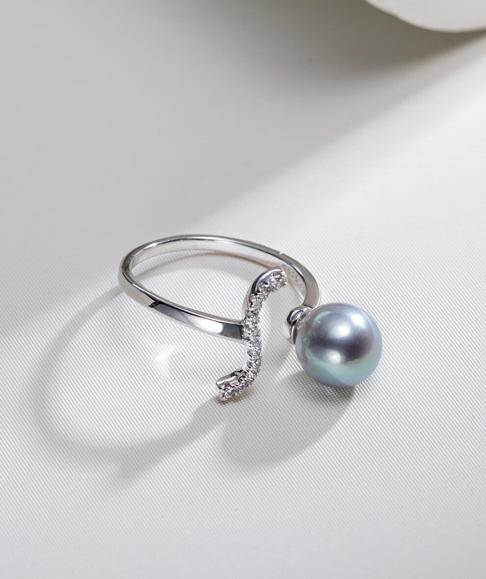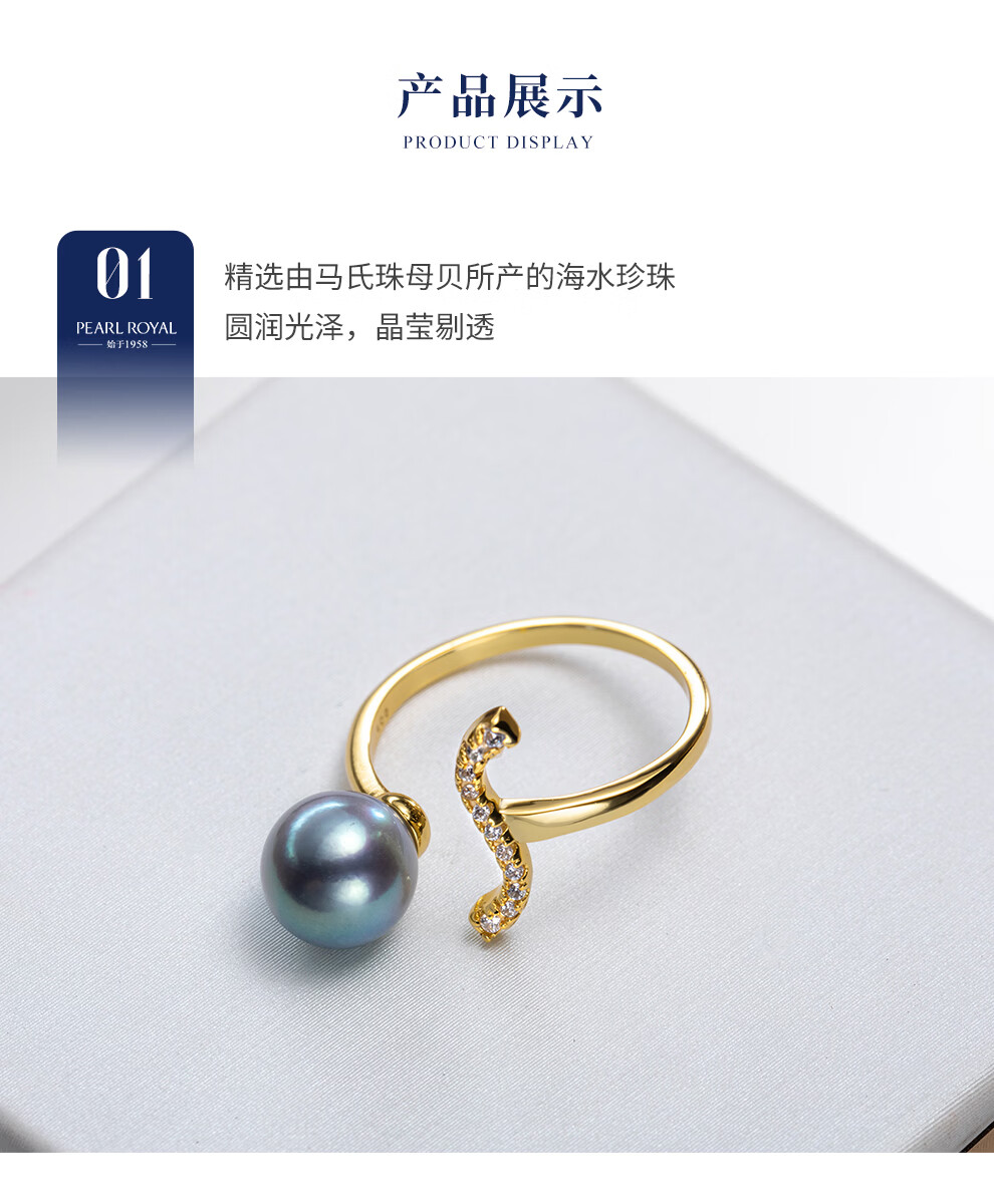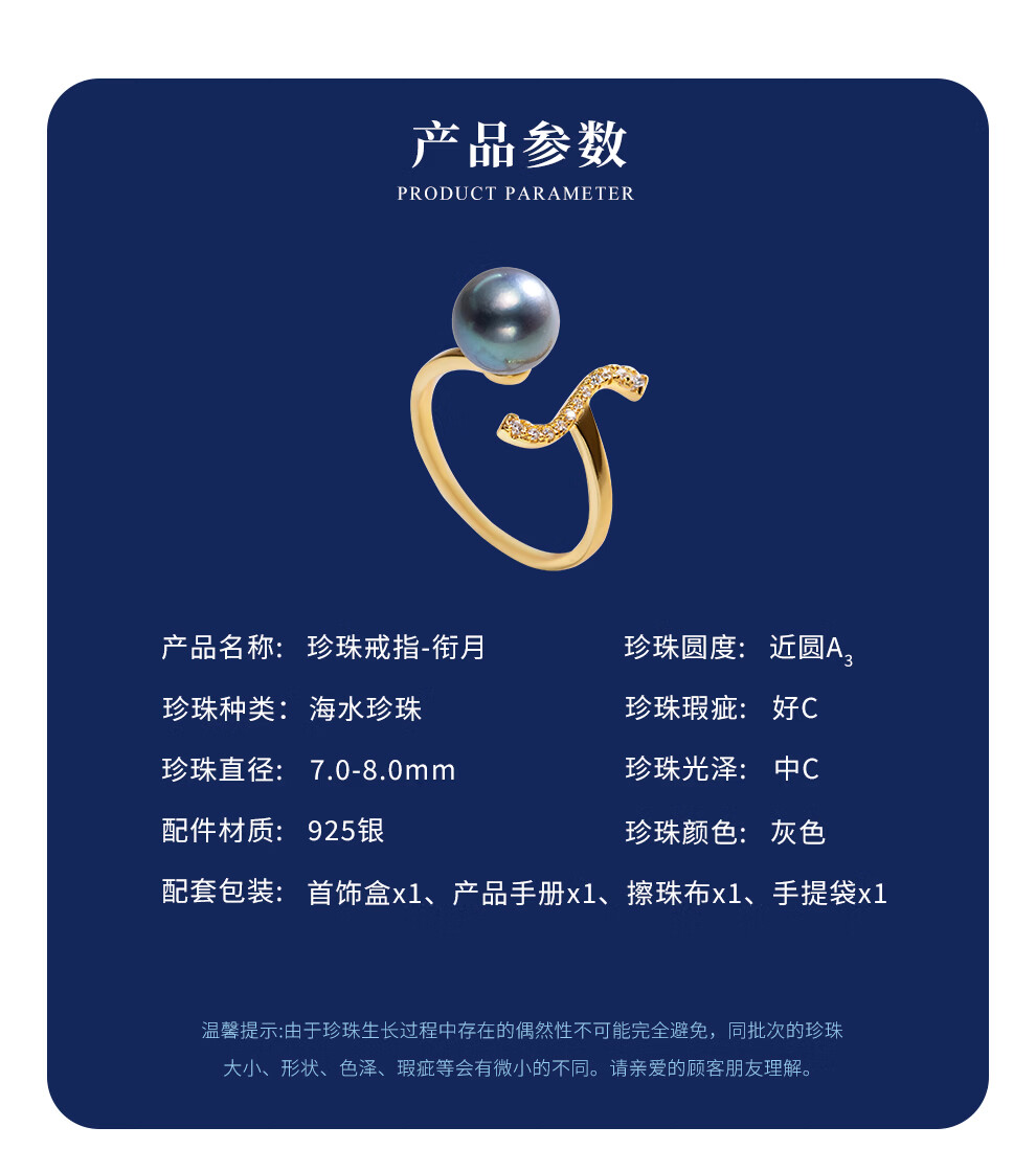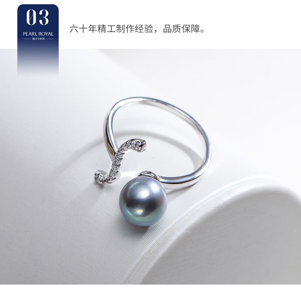 南珠宫衔月925银真多麻海水珍珠戒指精致百搭生日礼物送老婆 银色款 7.0-8.0mm