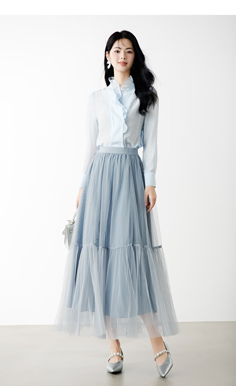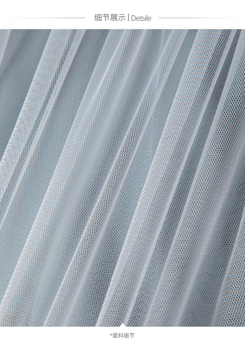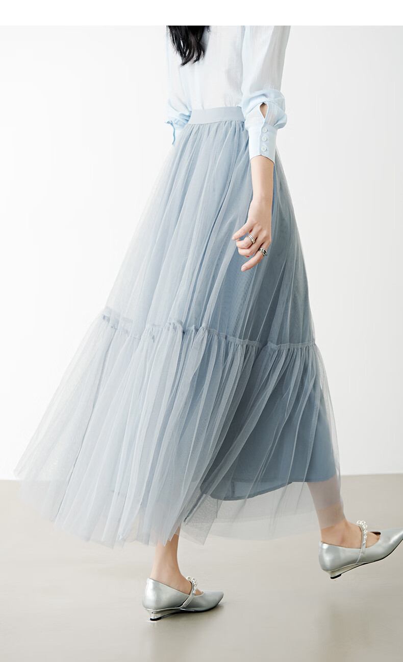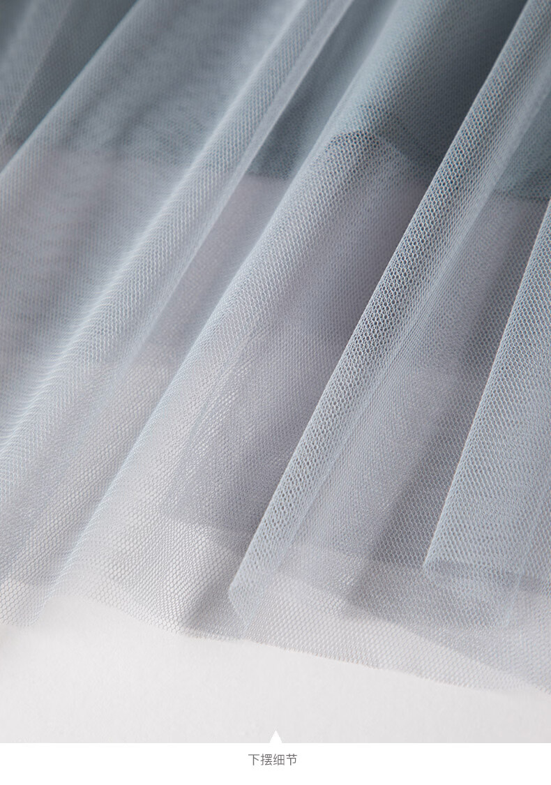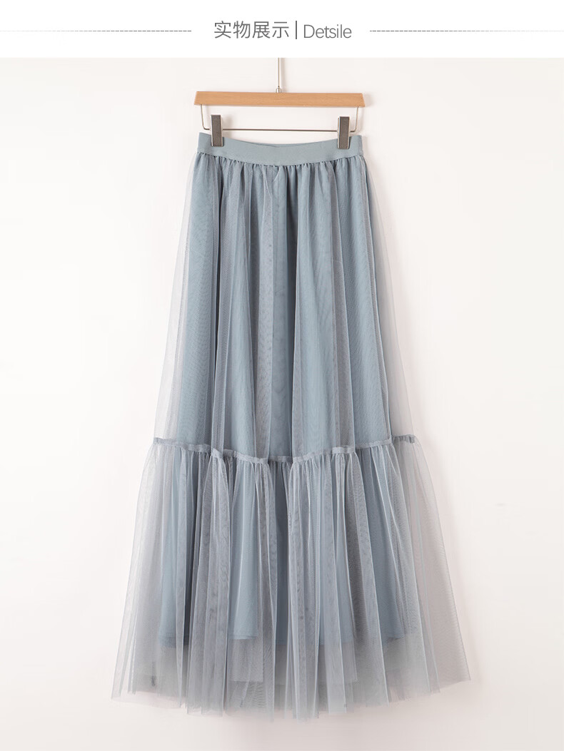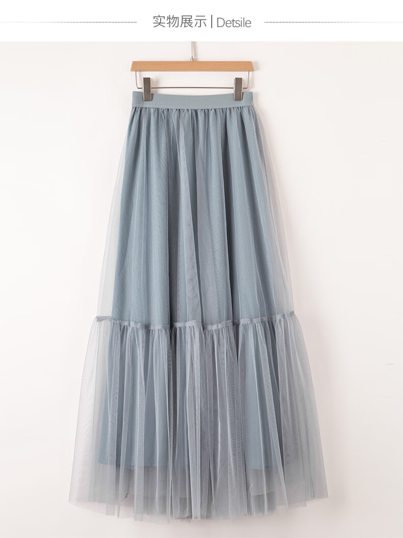 晚白【新品】2026春款时尚纯色半裙气质甜美淑女拼接网纱半身裙 灰蓝色 S