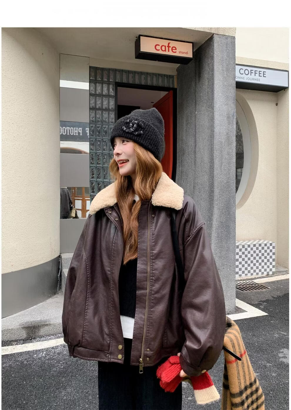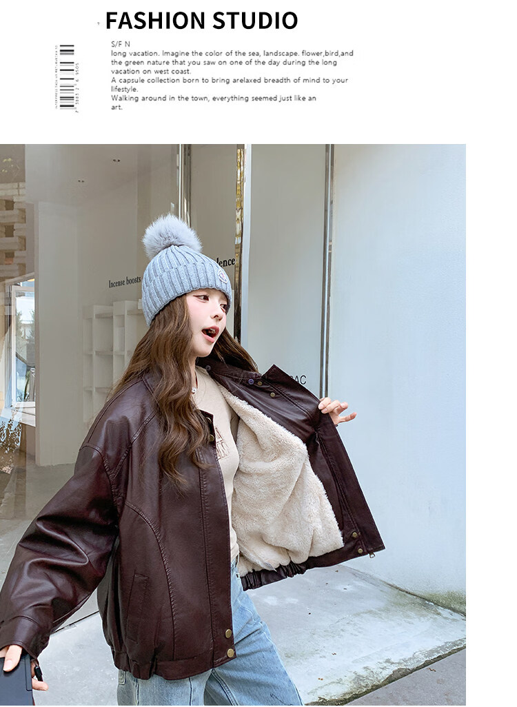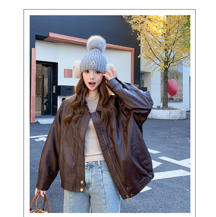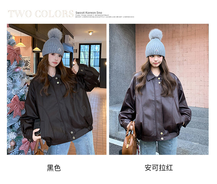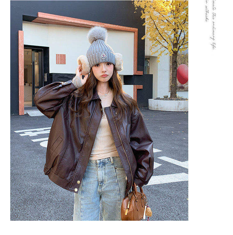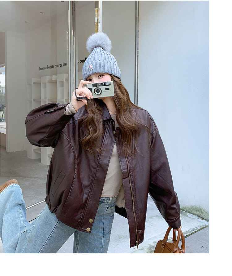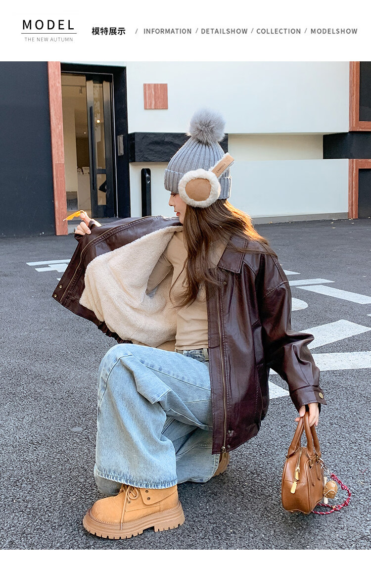 MODX皮衣外套女2026新款秋冬季美式复古今年流行加绒加厚夹克上衣 安可拉红(焕新款) 内里 加绒 S 105斤以下