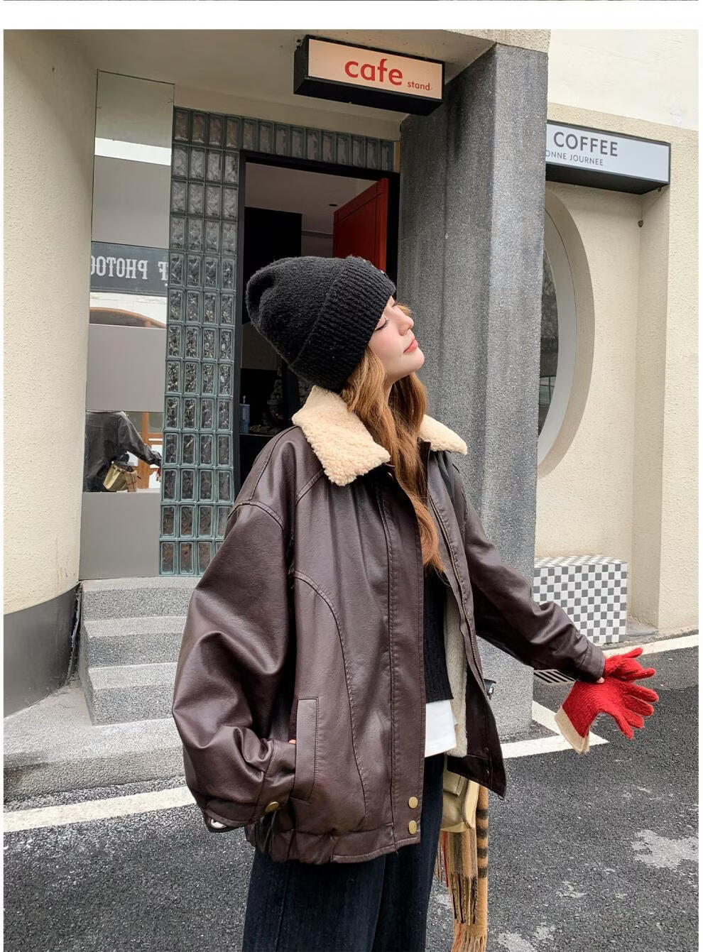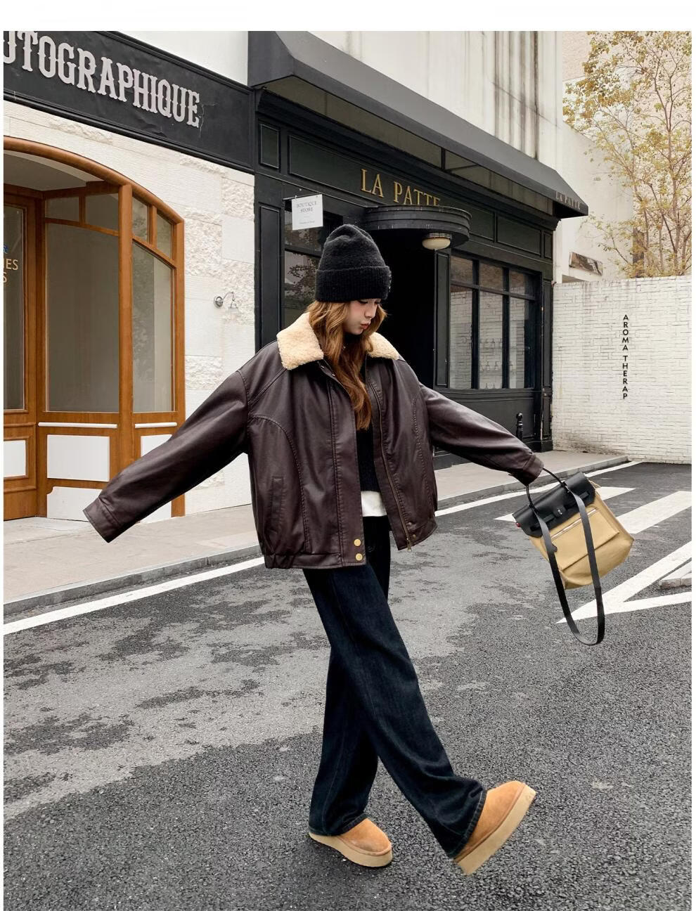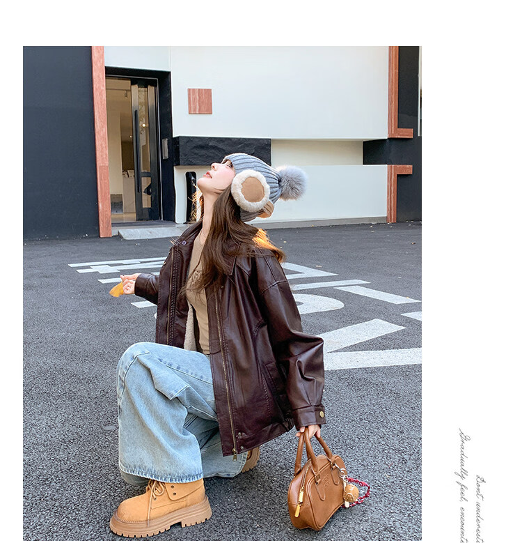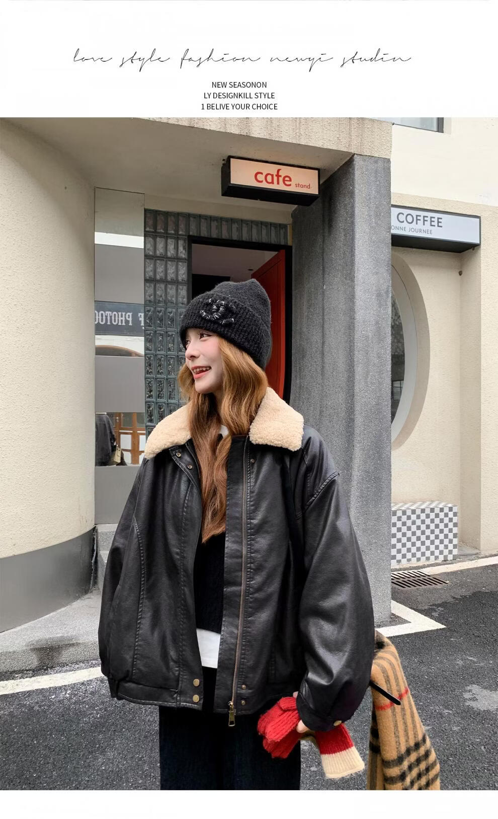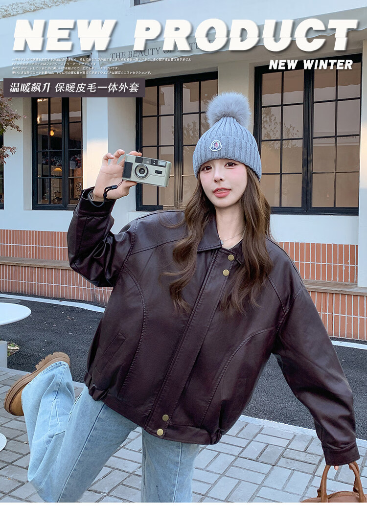 MODX皮衣外套女2026新款秋冬季美式复古今年流行加绒加厚夹克上衣 安可拉红(焕新款) 内里 加绒 S 105斤以下