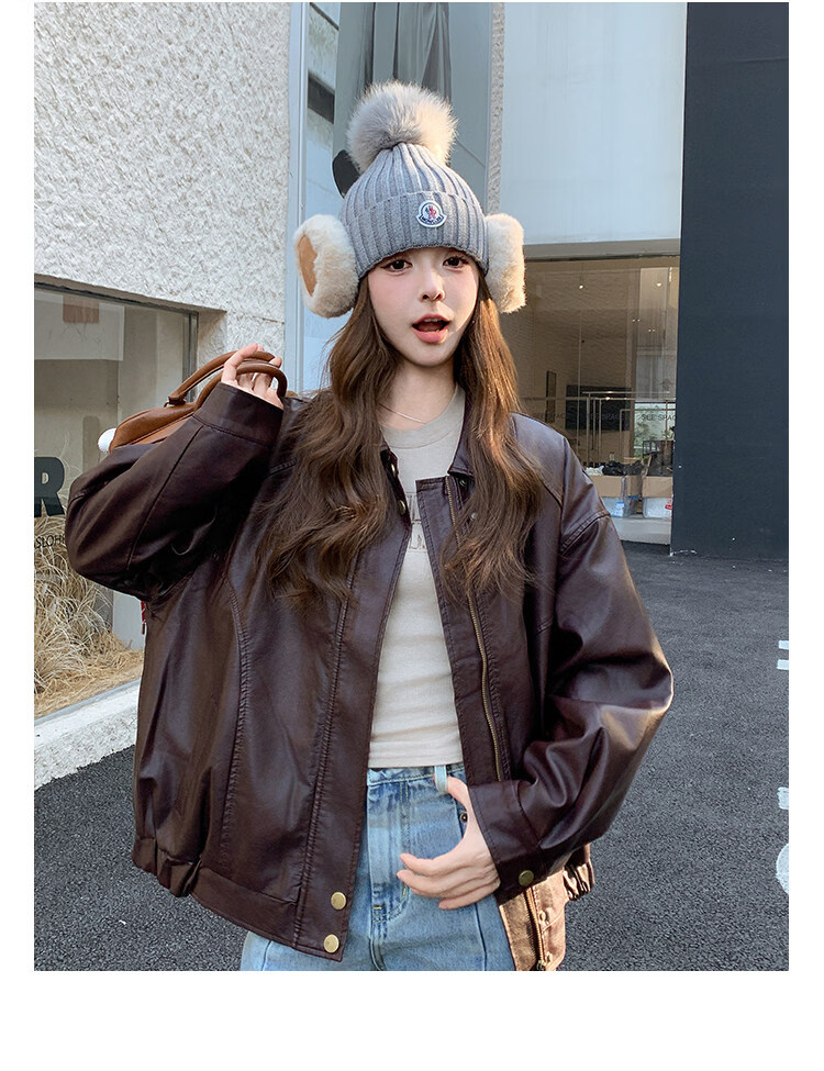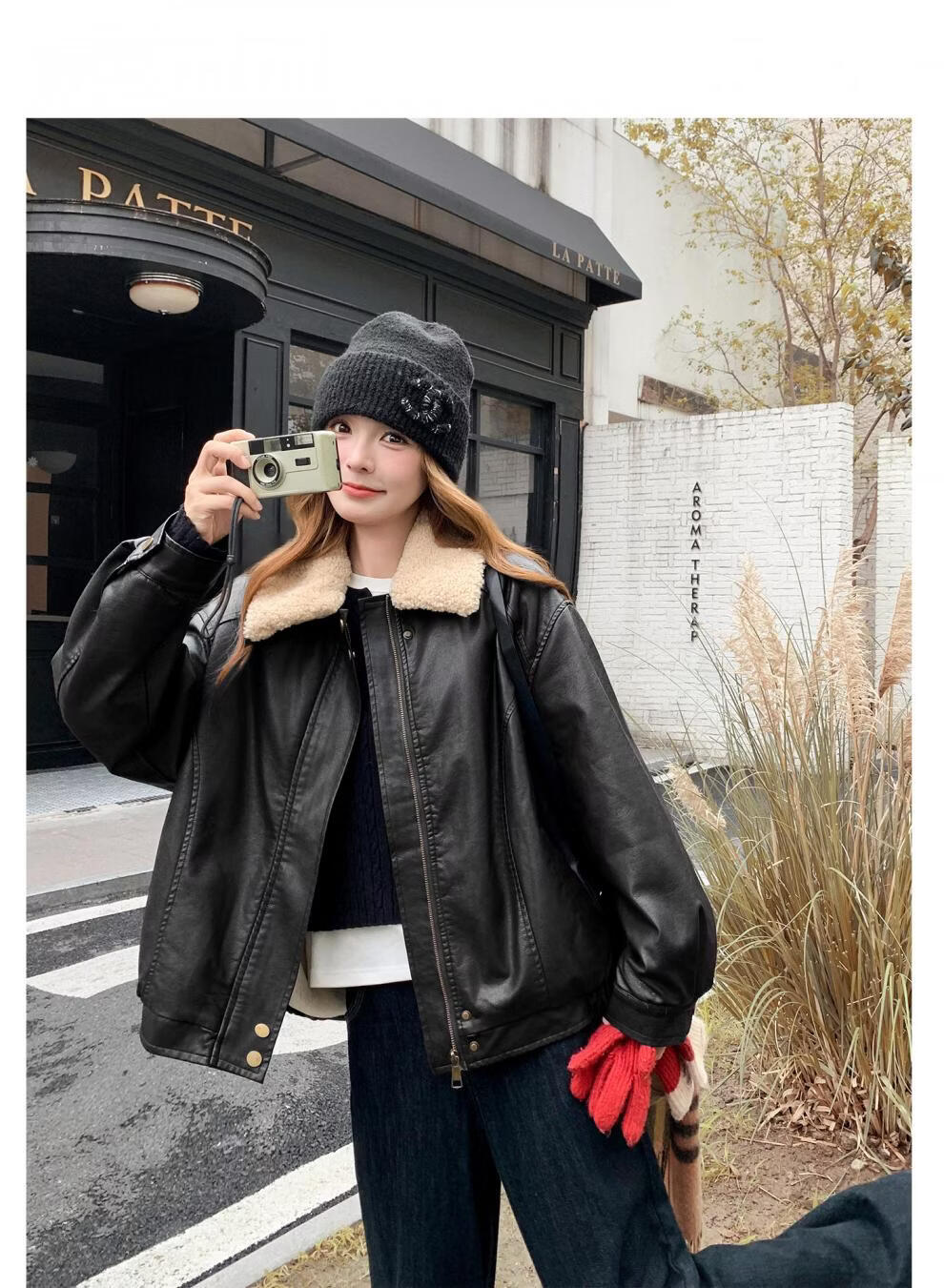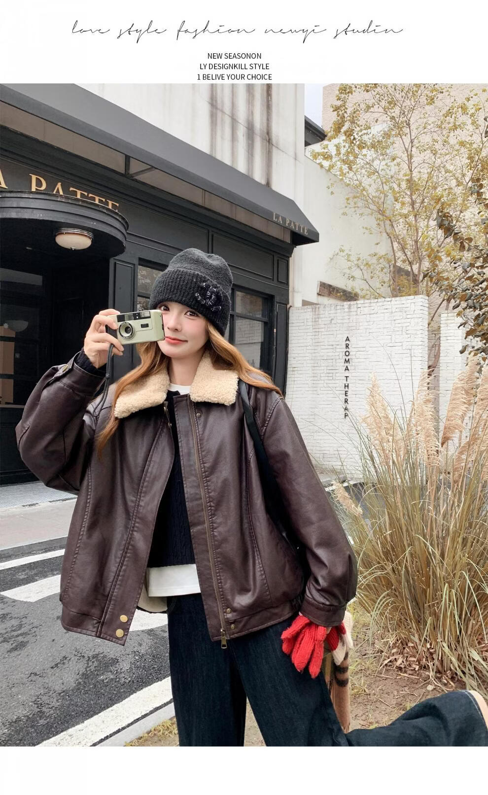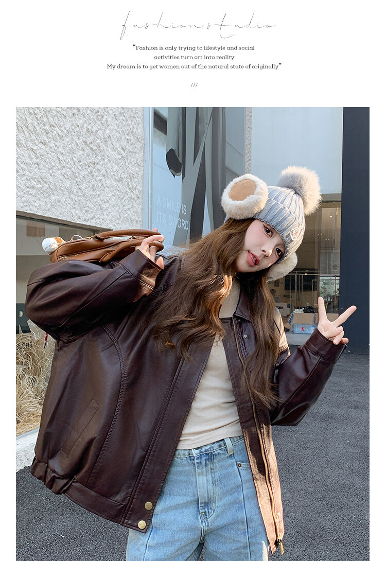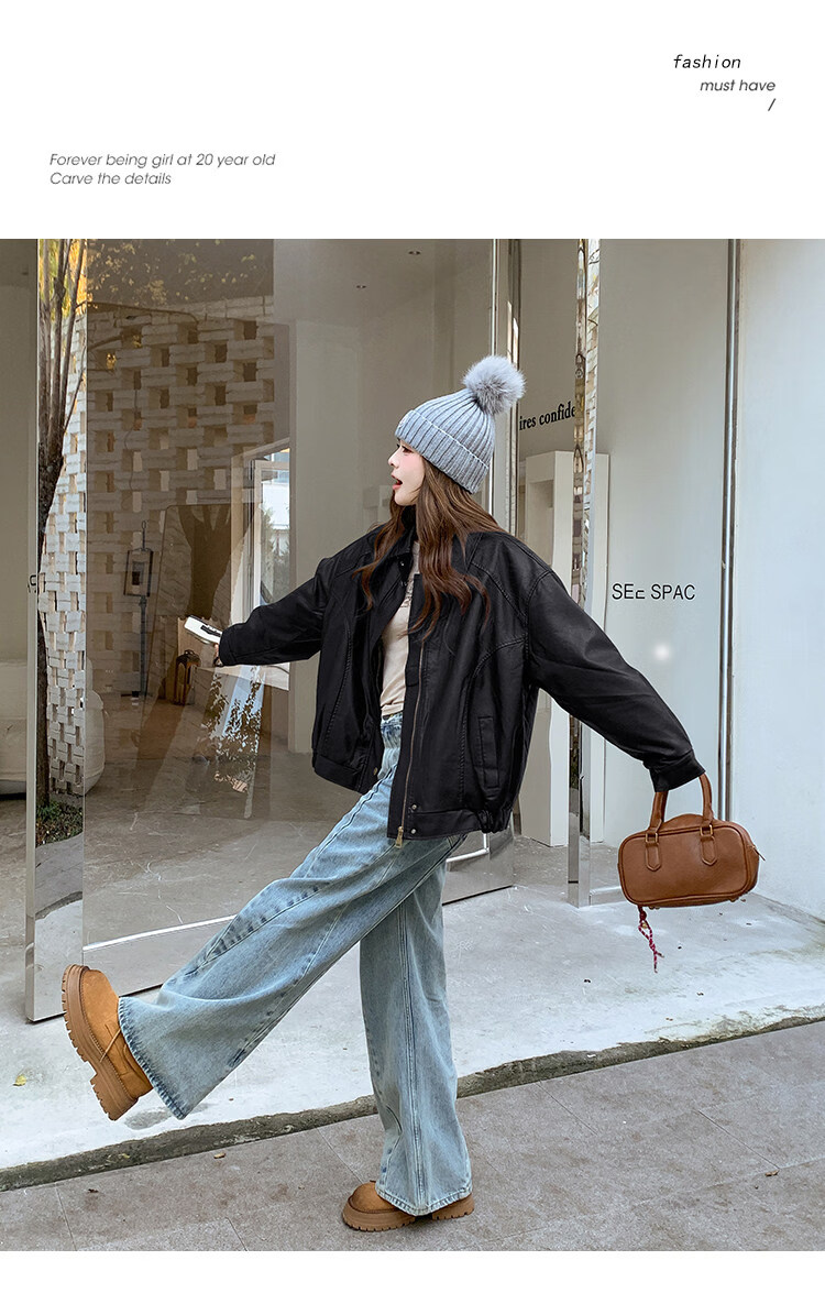 MODX皮衣外套女2026新款秋冬季美式复古今年流行加绒加厚夹克上衣 安可拉红(焕新款) 内里 加绒 S 105斤以下