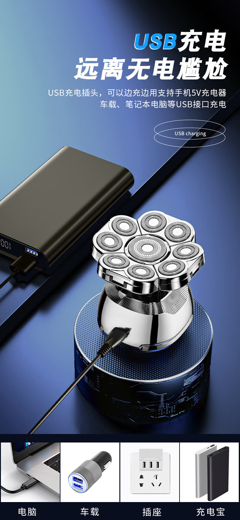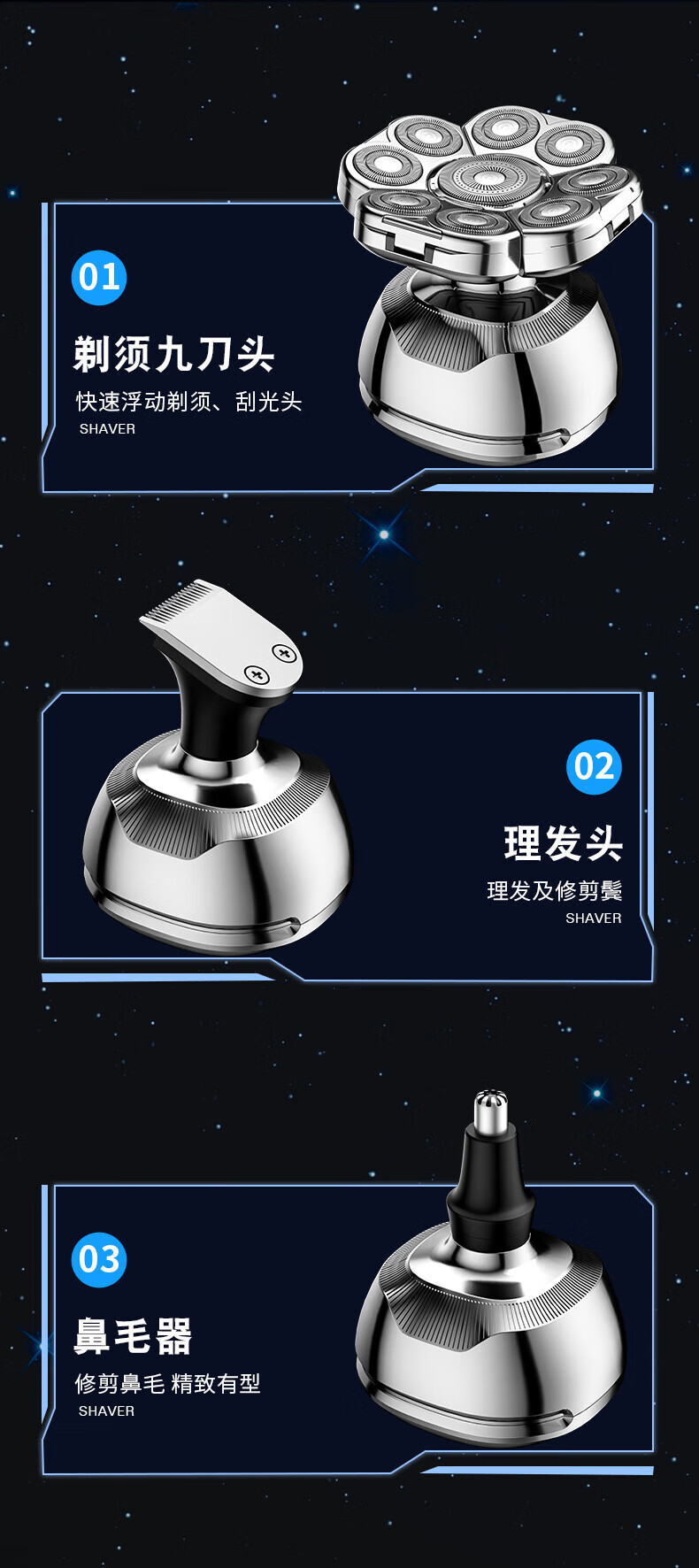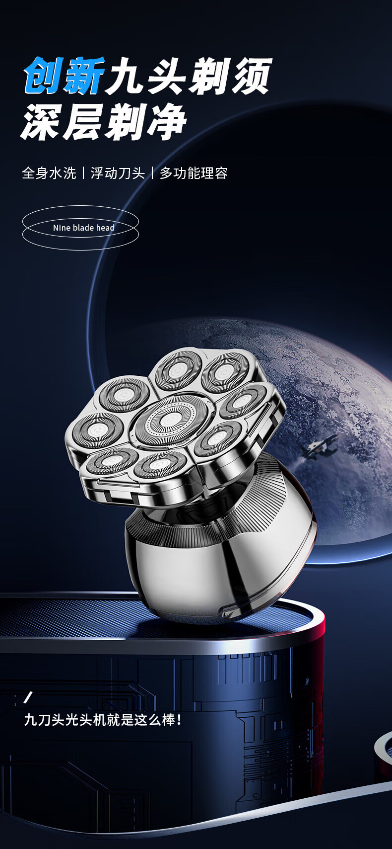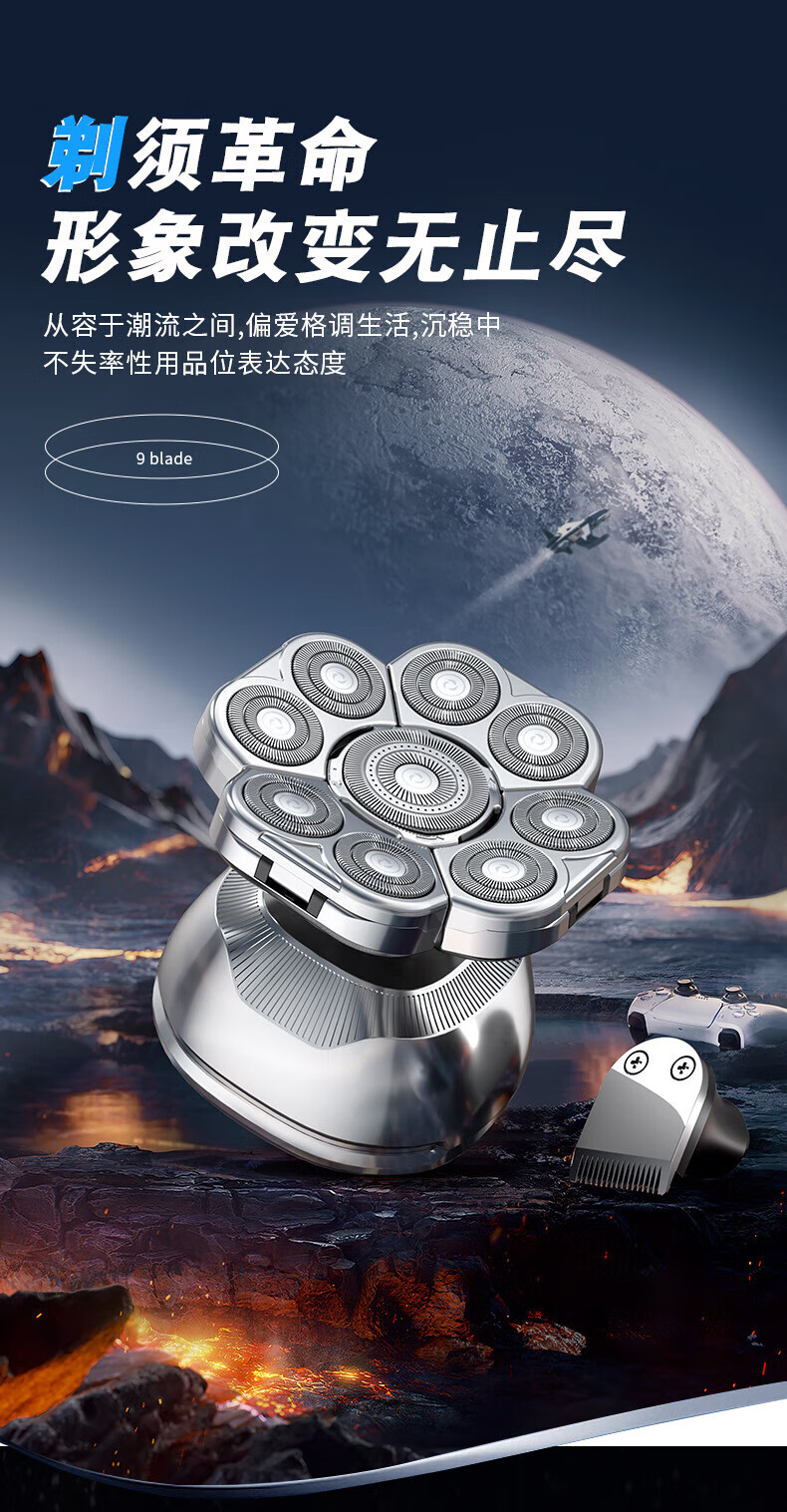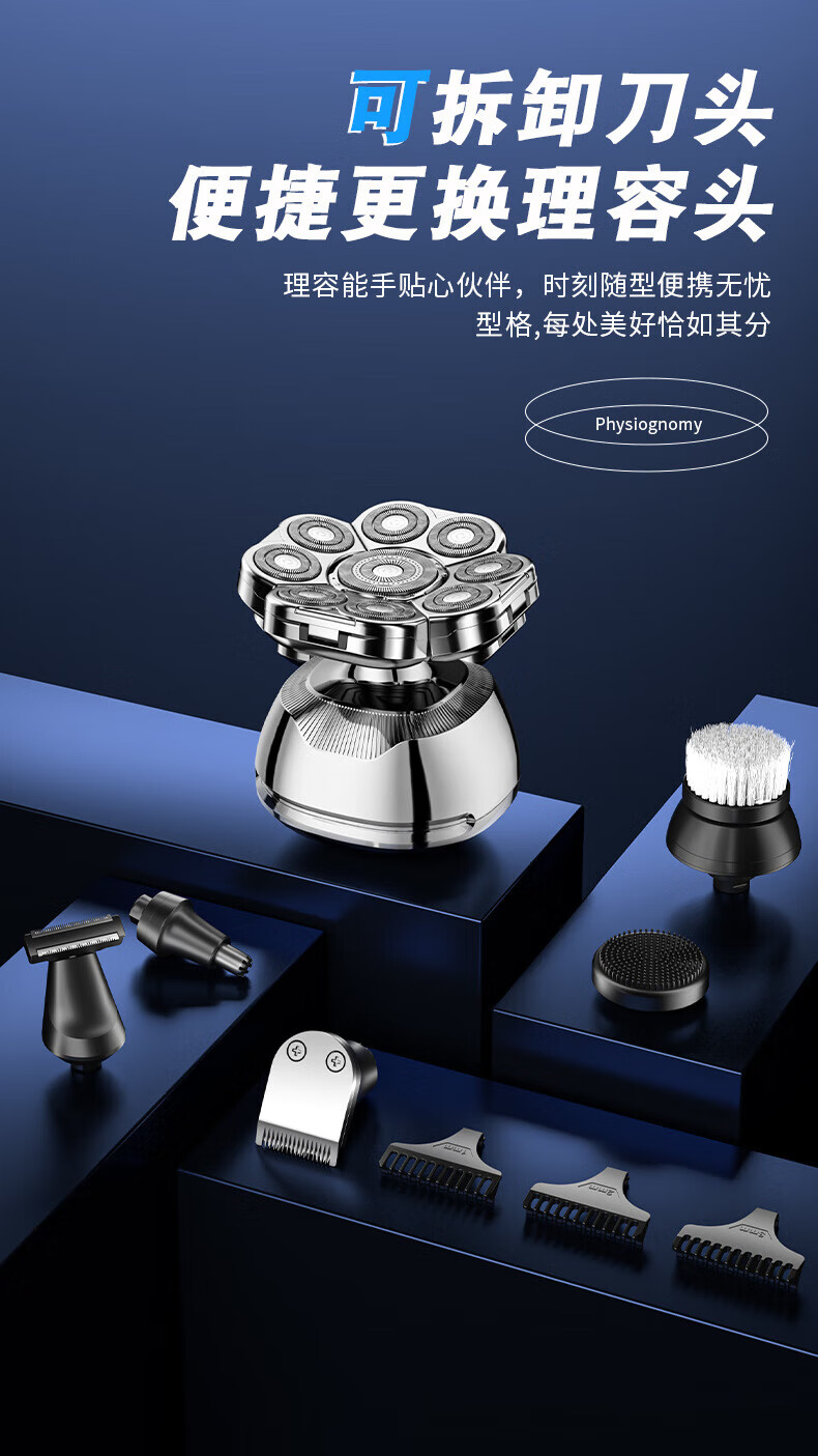 飞利浦(PHILIPS)同款九刀头光头神器剃光头专用大功率剃须刀男士剃光头神器自刮电动剃头刀光头 九头光头神器套装